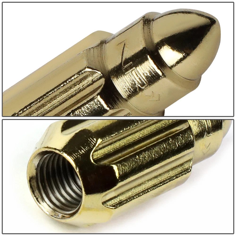 Welcome to Speed Daddy Store Home About Us Feedback Add To Favorites New Arrivals Ending Soon Contact Us 20X NRG GOLD M12X1.25 50MM STEEL BULLET SHAPED END RIM LUG NUTS+WHEEL LOCK KEY Product Description A secure fit for the wheels on your car or truck is one of the most important factors in keeping your family safe on the road. Whatever you're driving, if it has wheels, it needs lug nuts. Lug nuts are essential to mounting and securing a well-balanced wheel for your vehicle. Without the secure fit given by properly installing and tightly fitting the right lug nuts, wheels can gradually move out of alignment and eventually detach from their axles. Specifics and Features : Lug Nuts: High Quality Steel Construction M12 x 1.25 Thread Pitch Fits Lug Nuts with up to 1.25" Thread Depth 21mm Outside Diameter / 50mm Height Anodized Finish Closed End Design Comes as a Set of 20 Lug Nuts & 1 Wheel Lock Key Weighs Approximately 60 Grams Each Lug Nut Fits Conical Seat Wheels Bullet Style Spline Drive Includes : 20 Lug Nuts 1 X Wheel Lock Key Notes : Compatible with: Vehicles with 4 or 5 Lug M12x1.25 Threads 100% Brand New Professional Installation is Highly Recommended Installation Instruction is NOT Included Shipping Payment Returns Terms & Conditions Feedback Contact Us DOMESTIC LOWER 48 US STATES: FREE SALES TAX: CA ONLY VERY IMPORTANT: Double check shipping address. We are not responsible for incorrect or undeliverable addresses. Please use Shipping & Payments tab on top of page for shipping details for your location. Shipping to PR, HI, AK and PO Box addresses will be charged the same as shipping to Canada. GU, VI, SAIPAN will be charged the same as international shipping rate. For Canada shipping please select the lowest price. We do not offer expedited shipping. US Territories such as GU, VI, SAIPAN will be charged the same as CANADA shipping rate. Transaction will be held until a full shipping amount received. Some of the packages cannot be delivered to a PO Box. Customer is responsible to ensure PO Box address given is deliverable by the shipping company. Package will be held until a valid physical address is provided. Customer assumes shipping charges incurred in shipping to undeliverable address. International buyers are responsible for all customs duties, taxes, and other applicable fees incurred by the country's customs/border regulations. Please contact customs for more information. We ship 98% of all orders the same or next business day after payment received/cleared. Please understand that once orders are shipped, we cannot control the transit times thereafter. Most orders will ship via USPS First Class/Priority Mail or FedEx/UPS or the best suitable carrier for the specific size of the product. We are not responsible for any changes to address after item has been shipped. Item will be shipped out within 24 hours after payment cleared, except for weekends and holidays. PayPal e-check takes 3-7 business days to be processed. We will not ship until an e-check has been cleared. 30 Days Free Returns, please notify us within 30 days after you've received your order. Please email us or call us to obtain a RMA (Return Merchandise Authorization) number from us, and have the RMA number written on the return package. Items to be returned must be in resalable condition. All returns are for refund ONLY. No exchange accepted. For emissions related items, please check with your local jurisdiction for emission specific requirements before purchasing. All items do not come with installation instruction unless otherwise specified. If item is questionable, please consult your local professional/mechanic before making purchase. Shipping DOMESTIC LOWER 48 US STATES: FREE SALES TAX: CA ONLY VERY IMPORTANT: Double check shipping address. We are not responsible for incorrect or undeliverable addresses. Please use Shipping & Payments tab on top of page for shipping details for your location. Shipping to PR, HI, AK and PO Box addresses will be charged the same as shipping to Canada. GU, VI, SAIPAN will be charged the same as international shipping rate. For Canada shipping please select the lowest price. We do not offer expedited shipping. US Territories such as GU, VI, SAIPAN will be charged the same as CANADA shipping rate. Transaction will be held until a full shipping amount received. Some of the packages cannot be delivered to a PO Box. Customer is responsible to ensure PO Box address given is deliverable by the shipping company. Package will be held until a valid physical address is provided. Customer assumes shipping charges incurred in shipping to undeliverable address. International buyers are responsible for all customs duties, taxes, and other applicable fees incurred by the country's customs/border regulations. Please contact customs for more information. We ship 98% of all orders the same or next business day after payment received/cleared. Please understand that once orders are shipped, we cannot control the transit times thereafter. Most orders will ship via USPS First Class/Priority Mail or FedEx/UPS or the best suitable carrier for the specific size of the product. We are not responsible for any changes to address after item has been shipped. Payment Item will be shipped out within 24 hours after payment cleared, except for weekends and holidays. PayPal e-check takes 3-7 business days to be processed. We will not ship until an e-check has been cleared. Returns 30 Days money back, please notify us within 30 days after you've received your purchased item. All return requests must be submitted through your eBay account. You have to obtain a RMA (Return Merchandise Authorization) number from us, and have the RMA number written on the return package. Buyers pay for return shipping fee. Items to be returned must be in resalable condition. All returns are for refund ONLY. No exchange accepted. Returns for refund are subject to a 20% restocking fee. Terms & Conditions For emissions related items, pl