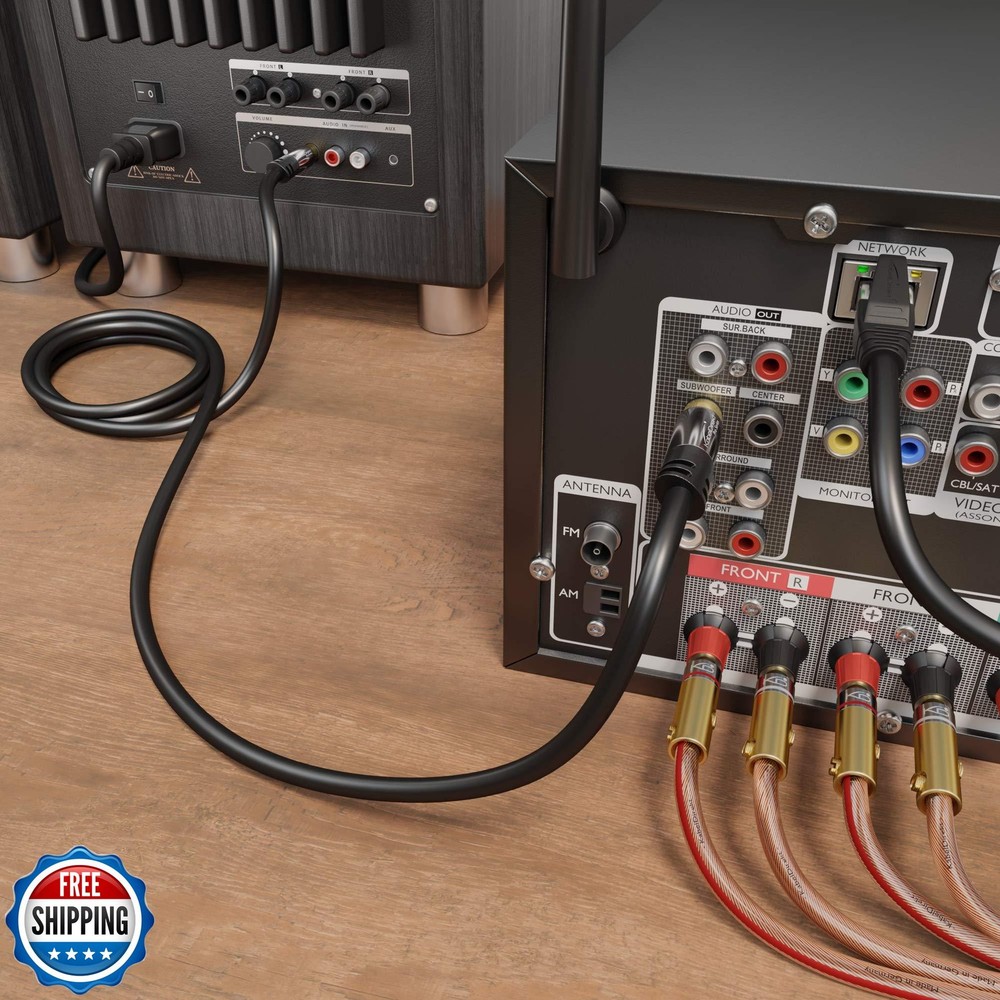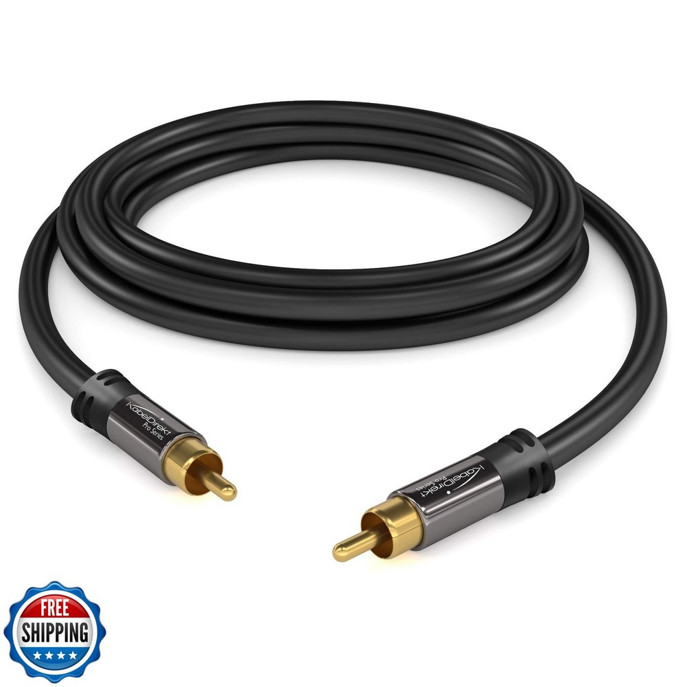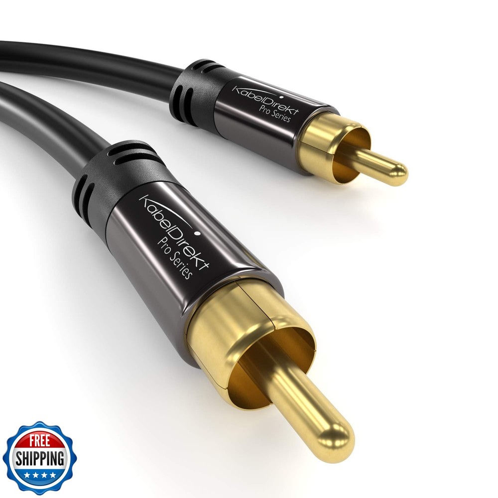 KabelDirekt – 20ft Long – RCA/Phono subwoofer Lead Cable, 1 to 1 RCA/Phono, Audio/Digital/Video (Coax, Male/Male Plugs, for amps/Hi-Fis, Audio Signals/Composite Video, 75 ohm, Black) Features Transmit video & audio in brilliant signal quality with this RCA/phono cable (male to male, 1 to 1) Connect your analog or digital audio kit thanks to the cable’s 75 ohm impedance, making it superior to other coax cables that can only handle analog signals Enjoy durability and maximum shielding from interference thanks to the PVC jacket that protects the high-purity copper conductors and a double screen comprising aluminum-Mylar foil and a tightly woven aluminum braid 36 months manufacturer warranty Shipping Free & Fast Shipping: We offer free shipping to most of the USA with a normal delivery time of 3-7 days. However, due to the current situation, additional delivery time (up to 3 weeks) may be required for some items. Alternative Carriers: We may use alternative carriers (e.g., USPS, FedEx, UPS) to ensure your package arrives safely and on time. Due to the use of multiple carriers, we are unable to provide a tracking number automatically. Handling Time: Orders are processed and shipped within 1-2 business days of receiving cleared payment. Shipping Restrictions: Shipping to Alaska, Hawaii, Puerto Rico, Guam, and other US territories may incur shipping charges or delivery restrictions. Please contact us before ordering, or your order can be refunded/cancelled. State Restrictions: Certain items may not be shipped to California due to state regulations. Contact for Tracking Updates: If you require tracking updates or have any concerns about the delivery of your order, please feel free to contact us, and we will be happy to assist you. Return Policy 30-Day Hassle-Free Returns: If you are not completely satisfied with your purchase, you can return the item for free within 30 days of receiving it for a full refund or exchange. Easy Return Process: Contact us, and we will provide you with a prepaid return shipping label and detailed instructions. No Restocking Fee: There are no restocking fees for returns. However, the buyer is responsible for return shipping costs if the return is not due to a seller"s error. Refund Processing: Refunds will be processed within 1 business day of receiving the returned item in its original condition. Feedback Your feedback is extremely important to us. We strive to provide the best products and customer service possible. If you are satisfied with your purchase, please take a moment to leave us a positive review. If you have any concerns or issues with your order, please contact us before leaving negative feedback. We are committed to resolving any problems and ensuring your satisfaction. Contact Us If you have any questions or concerns, please feel free to reach out to our customer support team. You can contact us through the eBay messaging system. We are available Monday to Friday, 9:00 am to 5:00 pm EST, and we will do our best to respond to your inquiry within 24 hours. Thank you for supporting our small family business!