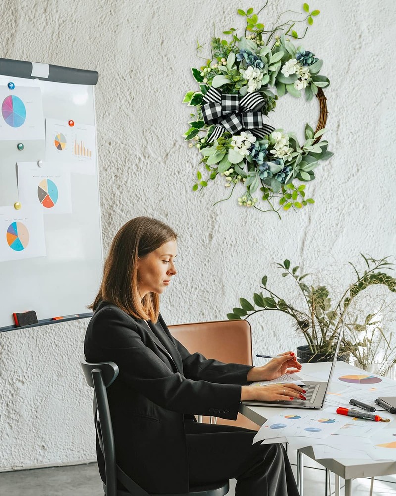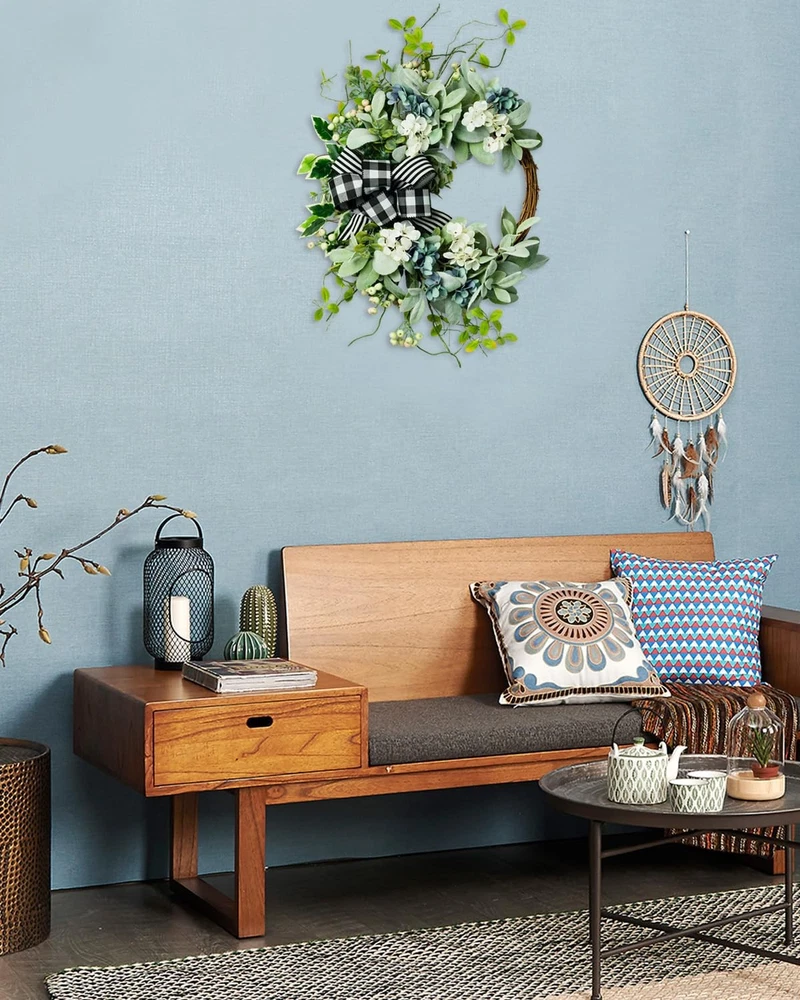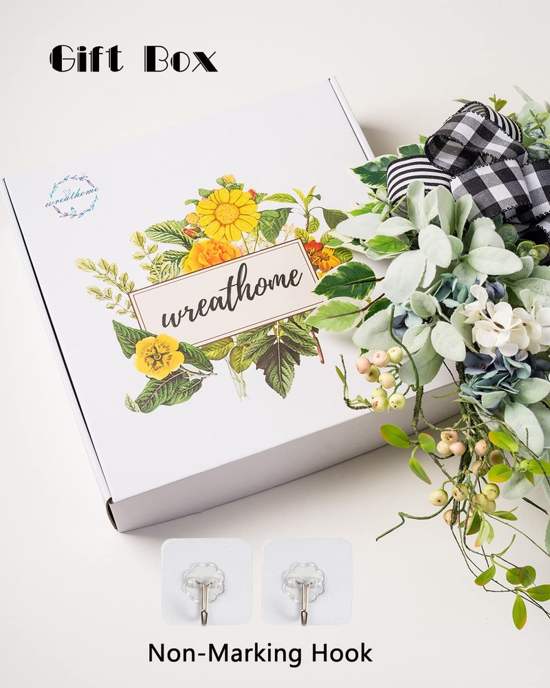 WE WALKED ALL THE WAY JUST TO MEET YOU Our wreaths are designed by professional designers, wreath creates a romantic look that makes for a wonderful style, high-quality floral materials, and are handcrafted The wreath will never wither: in order to use the garland better, please avoid direct sunlight and rain Handmade: Please allow small errors Excellent after-sale service: If you have any problem after receiving the garland, please , we will solve it in time. Your satisfaction is our greatest wish! Wreaths for Front Door: This lamb’s ear wreath is perfect for year-round decor on your front door or in your home. Unique half-covered design, the neutrality of this wreath and the farmhouse-inspired bow make it easy to incorporate into nearly any decor scheme Farmhouse Wreath Year Round: The Green wreath is handmade from almost natural berries, branches, hydrangea and green leaves, and there is a rattan ring on the back for fixing. Perfect interpretation of the beauty of nature Front Door Wreath for All Seasons: The wreath can be used indoors or outdoors. It can be hung on the front door, living room, fireplace, cabinet, wall, window, shelf and other places you like. If used outdoors, keep out of direct sunlight and rain Artificial Wreaths for Outdoor: Our year-round wreaths are handmade by experienced workers and come in a nice gift box, with seamless hooks, which is convenient for dear customers to send gifts and save Front Door Decor: The wreath is about 20-22 inches, to prevent the wreath from being damaged during transportation, it has been tightened, lambs ear leaves can be bent, and you can adjust and expand the wreath by referring to the video