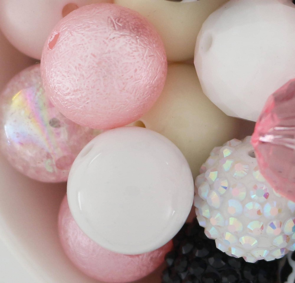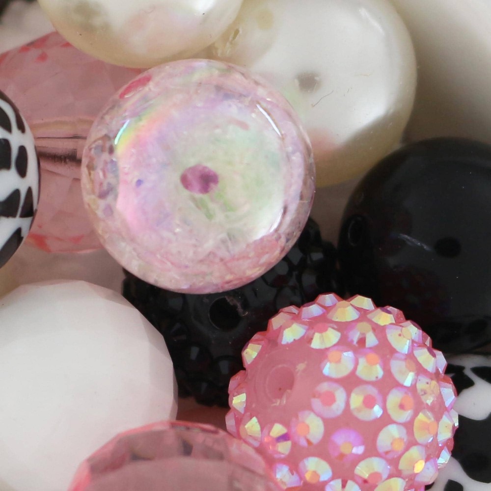 Cute 20mm bubblegum bead mix from resin and acrylic. Spotted white, black and pink bead mix. Small set: 10 beads Medium set: 25 beads Large set: 50 beads You will receive a representative variety of the beads shown. It is a random mix, so any of the beads in the photo may be in your mix. These beads are perfect for beadable items, chunky necklaces, bracelets, and other fun crafts! Mixes are made on color theme only and are not bead-specific. We do not guarantee you'll receive any one specific bead in the photo. These beads are not paired. Each lot will vary. Bead lots may/may not include rhinestones or special beads shown. Image represents the color scheme you will receive. NOTES: - Drill holes can vary from bead to bead and batch to batch. We highly recommend you have a bead reamer tool on hand that can increase the hole size if needed. - Beads fit our beadable pens, but drill holes will need to be enlarged to fit our wine stoppers, bottle openers and cork screws. - Colors may vary slightly between batches. - We have made every effort to accurately represent our product in photos. However, we cannot control color rendering on each device. Actual colors may vary due to differences in computer monitor and mobile device settings. If you should have a question about a particular color or bead, please contact us prior to your purchase. WARNING: CHOKING HAZARD – Small Parts: Beads can pose choking hazards! Never leave infants or children unattended with loose beads. Spellbound Beadworks products are not toys and are not intended for use by children under 3 years of age. Any use of Spellbound Beadworks products should be with adult supervision only and children should never be left unattended with any of our products. By purchasing from Spellbound Beadworks LLC, you assume all responsibility and agree to all terms set forth. Spellbound Beadworks LLC assumes no liability for injury, medical issues, or death resulting from product use or misuse. Not for children under 3 yrs. Use with adult supervision only.
