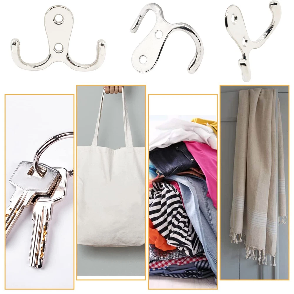 Modern coat hooks are compact and decorative for screwing on installation in the bathroom, bedroom and office. Double hooks for hanging caps, hats, towels, clothes, keys, bags and etc. Wall hooks for hanging heavy duty are easy to install by screwing on the wall, closet, wooden board directly. Specifications: Size: 1.6" x 2.1"/41mm x 54mm(L*W) Mounting Hole Spacing: 0.7"/18mm Wall Mounted Width: 0.7"/18mm Screws Included: M4*16mm Style: Double Pronged, 2 Mounting Holes Material: Zinc Alloy Color: Brushed Nickel Quantity: 20 Pieces Note: Due to manual measurement, please allow a deviation of 1 - 2mm. Please check our product size carefully and read the product size descriptions before purchasing to avoid possible unpleasant shopping experience. Package Included: 20 x Brushed Nickel Coat Hooks, with M4*16mm mounting screws. Size: 1.6" x 2.1"/41mm x 54mm(L*W), Mounting Hole Spacing: 0.7"/18mm. Heavy Duty Coat Hooks: Made of solid zinc alloy, the wall mounted coat hooks are rustproof, corrosion resistant and durable, with strong bearing capacity up to 35lbs. Double Wall Hook: Designed with double pronged hooks for hanging, the wall mounted hooks for hanging are perfect for storage in bedroom, bathroom, living room, kitchen and closet. Easy to Install: Screw in coat hooks for wood are easy to install with wall mounting screws. Directly screwing the wall hooks on the closet, door for hanging coat, towel, clothing and etc. Satisfaction Oriented: If you don't absolutely love them let us know and we will strive to improve your shopping experience! We are so confident you will love our products.