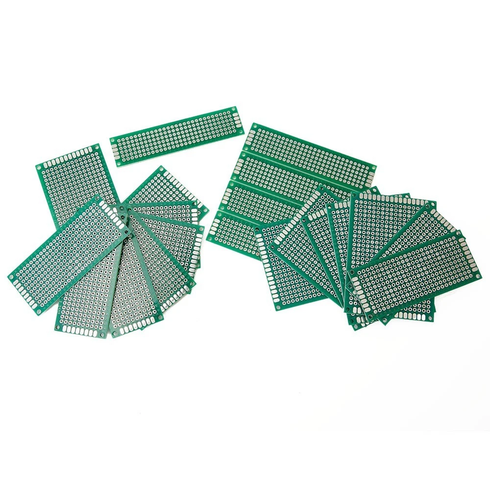 20pcs Double Sided Protoboard Printed Circuits Board PCB Stripboards Assortment DESCRIPTION Item Details: * brand new and high quality *Made of high quality material, and practical to use *20pcs PCB Prototyping Board Circuit Protoboard Strip Prototype Veroboard 2X8 3X7 4X6 5X7 5Pcs Each Mixed Double *Hole diameter: 2.54mm(Approx.) *PCB board size: 2X8CM / 3X7CM / 4X6CM / 5X7CM(Approx.) *Item No.: 5 2 * 8 CM + 5 3 * 7 CM + 5 4 * 6CM + 5 5 * 7CM double-sided PCB *Quantity: 20 * Color: As pictures show Package Contents: 5pcs 2 * 8 cm Double-Sided PCB Boards 5pcs 3 * 7 cm Double-Sided PCB Boards 5pcs 4 * 6 cm Double-Sided PCB Boards 5pcs 5 * 7 cm Double-Sided PCB Boards Note: .The real color of the item may be slightly different from the pictures shown on website caused by many factors such as brightness of your monitor and light brightness. 2.Please allow slight manual measurement deviation for the data. POLICES Shipping Payment WARRANTY We only ship to confirmed ebay Order addresses. Please comfirm that your Order address is in line with your shipping address. Please kindly note that the c ombined shipping is not provided because the shipping fee is calculated by weight. Also, the each additional item means exactly the the same color and size. It takes about 7 -15 working days to US; about 10-30 working days to other countries. Transit time may be a little delayed because of the bad weather and customs inspection . If you do not receive your item within 30 working days since payment finished, please contact us immediately for further assistance. Payment must be completed within 5 days. If you have any problems about payment, please contact us via ebay message. We strive for 100% customer satisfaction! Positive Feedback is very important to us. If you have any questions, p lease feel free to contact us via "Ask seller a question" . We will reply your email within 24 working hours.