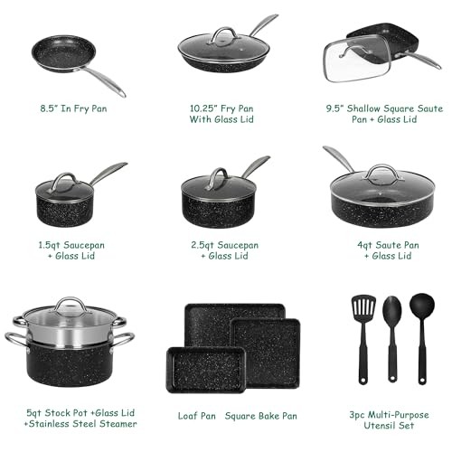 Return Policy Fast Delivery Trusted seller 20pcs Pots and Pans Set Non Stick, Kitchen Induction Cookware Nonstick, Saucepans, Utensil, Skillet with Maifan Stone Coated For Cooking(PFOS, PFOA Free), Dishwasher & Oven Safe, Black Product Description Effortless & Healthy Cooking: This Non stick pots and pan set are triple-coated for high heat resistance, allowing food to slide off easily and enabling healthier cooking with minimal oil. Our pot set safe for acidic foods like tomato sauce, that doesn’t alter food flavor. This kitchen cookware sets is easy to clean up All You Need: The 20-Piece Pot sets for cooking nonstick Includes: 8.5" Fry Pan, 10.25" Fry Pan nonstick with Lid, 9.5" Square Sauté Pan with Lid, 1.5qt Saucepan with Lid, 2.5qt Saucepan with Lid, 4qt Sauté Pan with Lid, 5qt Stock Pot with Lid and Steamer, Loaf Pan, Square Bake Pan, and Utensil Set Enhanced Cooking Experience: This Kitchen pots and pans set with comfortable handles offer a firm grip, and vented glass lids for visibility while retaining heat and moisture. Cooking set is perfect for everyday cooking or trying new recipes, meeting all cooking and baking needs Fast & Even Heating: The pans set nonstick featuring an aluminum core and die-cast aluminium heavy-gauge base, heats up quickly and evenly. This cookware compatible with gas, electric, and induction stovetops, it’s also dishwasher & oven safe up to 400°F Durable by Design: This nonstick cookware set is free of PFOA, PFOS, featuring the white-speckled maifan stone coating that releases trace elements beneficial to health. The reinforced cast aluminum body and scratch-resistant coating ensure durability, so withstands frequent use without compromising performance Shipping Returns Payment Shipping Shipping is FREE to all addresses other than APO/PO boxes in the lower 48 states. All our stock ships from US-based warehouses. Shipped via USPS or UPS (depending on location and package weight) Unless stated otherwise, all orders will ship within 24-72 hours of your payment being processed. Check our feedback to see the great reviews of FAST shipping we offer. Returns Seller does not accept returns Payment We currently accept payment via eBay managed payments only. Once payment is cleared, we will dispatch your shipment within 1-3 business days. Please refer to the "Shipping" tab for more information regarding shipping speed to your destination.