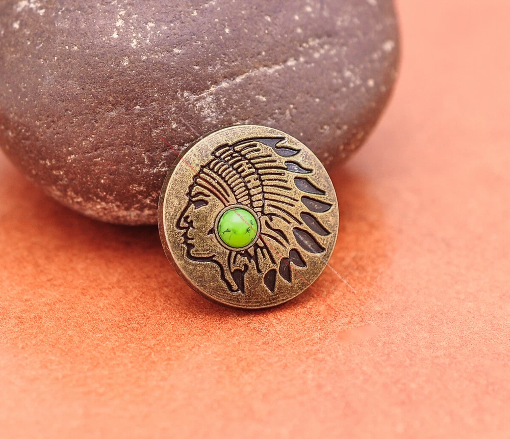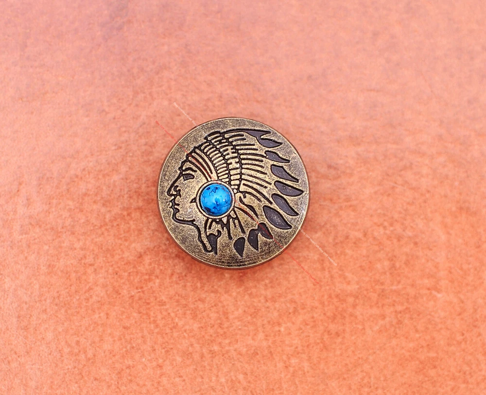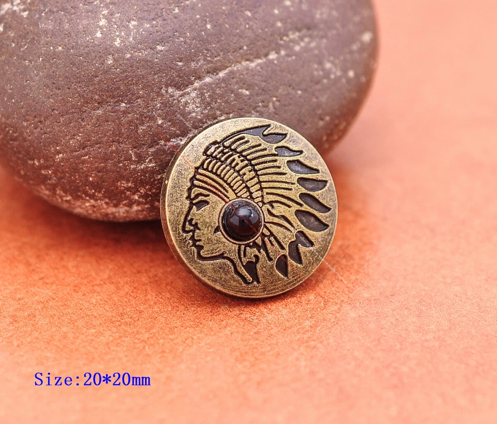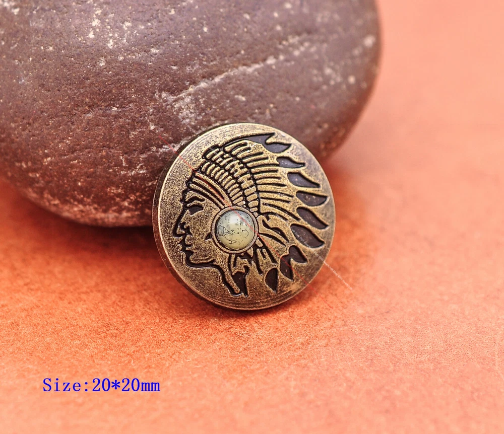 20x Brass Indian Head Leathercraft Turquoise Snap Button Closures Connector 20x Brass Indian Head Leathercraft Turquoise Snap Button Closures Connector Suitable For: Belts, Handbags, Hats, Jackets, Knife Shealths, Pouches, Saddles, Shoes, leather craft, clothes, craft,etc.. We have lots of conchos in my shop .Pls visit my store。pls add my store to your favorite shop.Thank you very much. Product: HORSE SADDLE LEATHERCRAFT CONCHOS Material: Metal alloy Color: Please refer to pictures Size: 20*20mm approx. Component: 20pcs/ set. *Under different light conditions, color may looks different. WARNING: The picture of the product all have copyright .All rights reserved, pirates must investigate. 盗图一经发现,一律追究法律责任,绝不和解 。 Payment Delivery details Contact us Terms of sale About us Payment *Please complete payment via PayPal. *If you buy more than one item, please wait for combined invoice to get shipping discount. *Please make sure your shipping address in eBay is correct before payment. Delivery details Country Shipping Methods Average Delivery Time USA Speedpak China(with tracking#) 7~15 working Days Others Int’l airmail from Hong Kong 15~35 Days *We ship from Hong Kong /China, it usually takes 10~30 days for delivery for most countries. *If the parcel does not arrive within estimated delivery time, please contact for help by eBay message. *We will make full refund or resend for free if parcel lost. Contact us We left positive feedback for you after receiving payment. Your feedback is very important for us, positive feedback and 5 Score DSR is highly appreciated. Please let us know before leaving any negative feedback or 1 point, 2 point low DSR or open any disputes on Paypal and Ebay, please give us the opportunity to resolve any problems and we will try our best to satisfy your needs. If any question, please feel free to contact us via "Ask seller a question" ,We try our best to reply to your emails as soon as possible, due to high volume of daily incoming emails and time zone difference, we may not be able to reply your emails immediately. Please allw 1-2 business days for us to response. We have producing factory, and teams for QC and Marketing, we are strict with quality control and provide with good online and after-sale service. Mixed lots wholesale order are welcome. Please feel free to contact if any questions. Terms of sale *Defective item will be replaced free and without returning. *If it is not defective item or wrong item/ color sent, buyer need to pay for the return postage. *Please be sure to contact before you send back the item. About us We are a kind and honest seller,We are factory ,we can offer factory price.Welcome to wholesale. your full satisfaction is always our best wishes. If you have any problems with our items, please kindly contact us.