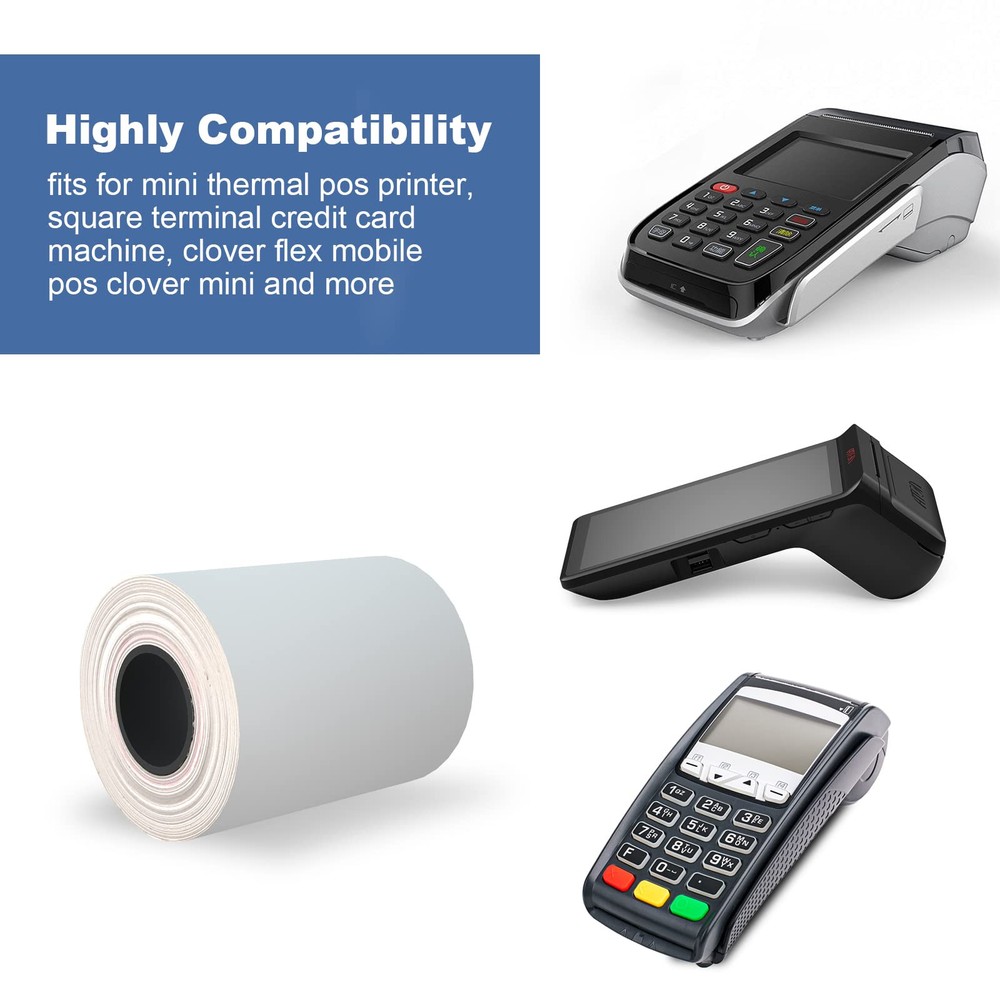 【Thermal Receipt Paper Size】2 1/4 Inches x 50 Feet, Totall 50 rolls, 50 rolls for your business receipt printing needs. 【Reliable Quality】 Top quality POS thermal receipt paper is designed for crisp, clear, durable print images.The thermal paper doesn’t contain any carcinogens like BPA, BPS. 【Easy to Use 】This product is designed for ease of use by printing cleanly and helping prevent paper jams by feeding paper smoothly. Ideal for business and receipt printing. 【End of Label Warning Signal】Each paper roll has an end of warning signal . 【Warm Tips】 Please note that thermal paper should be stored in a dry, cold environment, avoiding extrusion and high temperatures.
