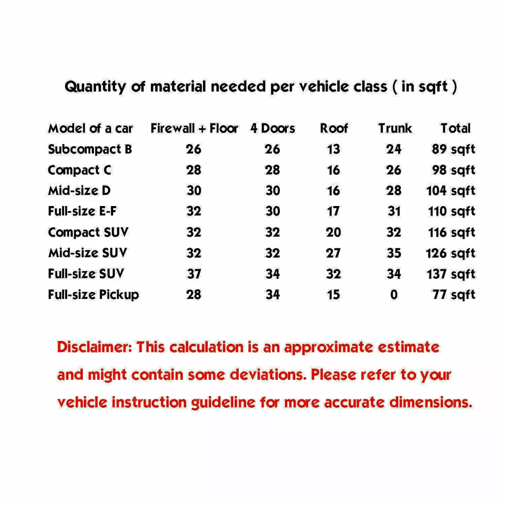 Description: ✎. Laminate thermal acoustic insulation is ideal for hoods/bonnets, engine bays/engine compartments, firewall/outer dash, van load space interiors, side panel insulation & many other interior and exterior applications. ✎. This specially designed acoustic and thermal insulator will dramatically improve the overall vehicle refinement, sound quality and vehicle acoustics. ✎. It will improve your ride quality by reducing mid and high frequency noises, including engine noise, exhaust noise, tyre whine, road noise. Package included: 1Pcs 2Mx1M 5mm Heat Sound Deadener Insulation Mat Sudabubble Best choice of motor parts 21.5sqft Car Engine Hood DOOR Fireproof Sound Deadener Heat Insulation Mat 5mm Description: ✎. Laminate thermal acoustic insulation is ideal for hoods/bonnets, engine bays/engine compartments, firewall/outer dash, van load space interiors, side panel insulation & many other interior and exterior applications. ✎. This specially designed acoustic and thermal insulator will dramatically improve the overall vehicle refinement, sound quality and vehicle acoustics. ✎. It will improve your ride quality by reducing mid and high frequency noises, including engine noise, exhaust noise, tyre whine, road noise. Package included: 1Pcs 2Mx1M 5mm Heat Sound Deadener Insulation Mat $ Purchase 2 items and enjoy a 15% discount!!! $ $ Purchase 3 items and enjoy a 20% discount!!! $ Specifications: ➥Outer Material: 99.4% pure polished aluminum reinforced facing ➥Temperature Rating: 200 Degrees nominal ➥Material: Aluminum & Foam & Aluminum ➥Features: Car&Home heat/sound insulation ➥Reinforced / Crush Resistant: Yes ➥Thickness: 5mm=197mil=3/16" ➥Length: 2 meters= 79inch ➥Width: 1 meter= 39inch ➥Function: Car sound insulation ➥Mildew & Mold Resistant: Yes ➥Without Adhesive backing ➥Water resistant: Yes ➥Folding shipment ➥Non-toxic: Yes Features: ✦ High temperature resistance. ✦ Non-flammable, flame retardant. ✦ High thermal & acoustic properties. ✦ Extremely Light-weight & Flexible Material. ✦ High noise reduction & thermal insulation properties. ✦ Durable outer cover material for tough environments. ✦ Keeps your interior cooler in the summer and warmer in the winter. ✦ Can make the heat of the engine evenly distributed to avoid overheating the lid. ✦ Reducing energy consumption with strong performance of heat insulation. ✦ Making sound more centralized and harmony by changing the way of sound transmission. Installation: There is no adhesive on this car insulation but you have many options when it comes to installing it including spray adhesive, foil tape, or even hook and loop fasteners. Car insulation can be double layered in areas if needed. It is very easy to install and easily molds to contours. Spray adhesive & foil tape in combination with each other has worked best for us for our installations. Before installation make sure your surface is clean. Cut your piece to match the area you want to install it on and then spray the area with spray adhesive and lay your piece down and press lightly with your hands or use a roller across the entire piece. Continue doing this until you have the entire area you want covered. We recommend using a good spray adhesive when installing this insulation. Foil tape is optional to use with spray adhesive but it helps you achieve the best thermal barrier results. Note: ➤. The real coior of+he iftem may he sichtiy c'fferent frm the nitures shown on website caused oy many tactors such as oriantness oiyour monitor and light brightness. ➤. Please allow slight deviation for the measurement data. ➤. Please allow 1-3cm error due to the hand measurement. Size recommendation: If you have any auestions, please contact us. Wish you have a happy shopping time! Item Specifics Brand MODIGT Type Carpet Mat, Heat Sound Deadener Insulation Mat Material Aluminum &Foam Placement on Vehicle Cargo/Trunk, Bonnet, Under Seat, Front Door, Rear Door, Rear Side Color Silver Features Easy to cut and install size 39''x79'' =100cm x 200cm =21.5sqft Thick 5mm=197mil Fitment Type Direct Replacement Item Width 1M Item Length 2M Universal Fitment Yes Manufacturer Warranty 2 Years Manufacturer Part Number Heat Sound Deadener Insulation Mat OE/OEM Part Number Heat Sound Deadener Insulation Mat Application 1 Turbo,Front Fender,Rear Fender Application 2 Hood,Firewall,Doors,Floor,Roof Application 3 Trunk Lid,Trunk Room,Engines,Tailgate Application 4 Ceiling,underneath bonnets,Underfelt Application 5 Underlay,Boot,Panel,Chasis Application 6 Automotive,Motorhome,Camper,Restorer Application 7 Classic Car,Race Car,Stock Car,Old Vintage Car,Pickup,SUV,Caravan Application 8 Van,Truck,limousine,Camper,Boat,Motor Homes,School Bus,Low Rider Application 9 Muscle car/Hot rods/Corvettes/Imports/Tuners/Street rods/Rat rods Function 1 Protects Paint from Blistering Function 2 Reduce the road/ Engine/ Wind noise Function 3 Dustproof, Waterproof, Anti-moisture Features 1 Noise Reduction, Easy to Cut Features 2 Easy Installation, Waterproofing, Fireproofing Packaging method Folding packaging Payment ✎ 1. It will be much appreciated that you finish your payment asap or it will make UPI (unpaid item case) on your account leading to be suspended or restricted by eBay when those UPI cases carry over to certain amount. ✎ 2. Any problems please contact us for more details. Shipping ✌ 1. All items will be shipped to buyer's ebay address. ✌ 2. All items will be shipped within 24-48 working hours upon receipt of payment, and multiple items will be combined shipping. ✌ 3. In most cases, delivery takes around 3-5 business days, it's highly depended on the efficiency of the shpping carrier. If your item doesn't arrive on time, please contact us immediately for further assistance. Please note there is no local pickup service available. Returns ✎ If you are not 100% satisfied with your purchase, you can return the product and get a full refund o