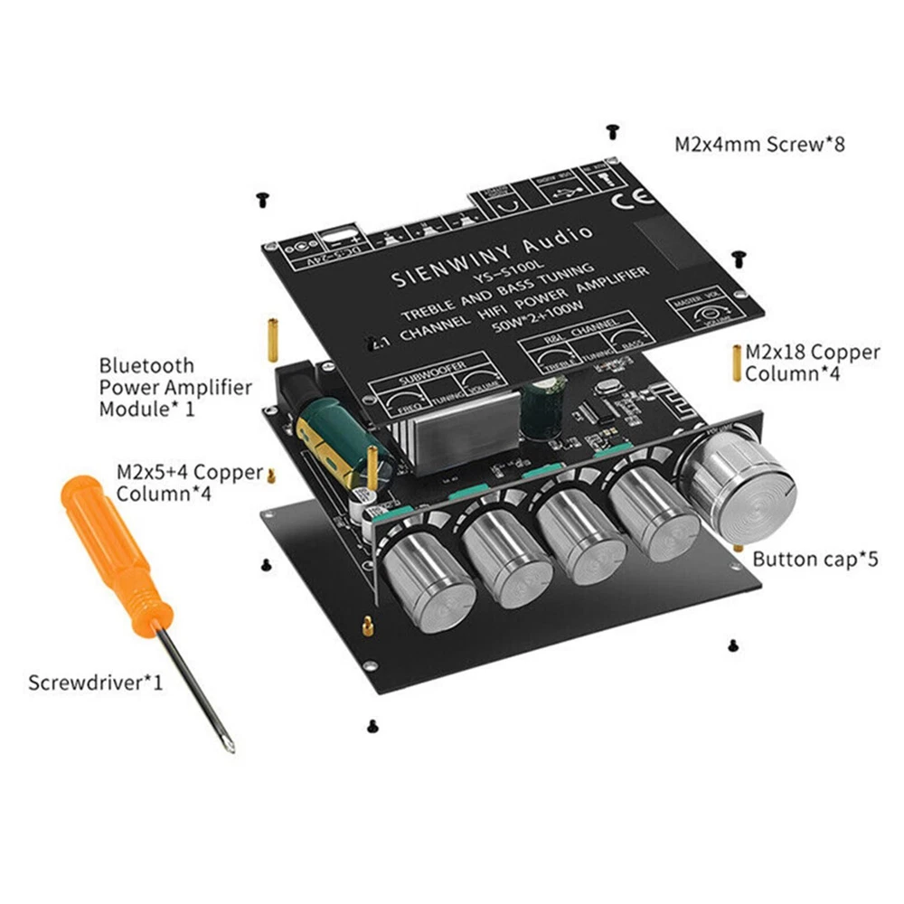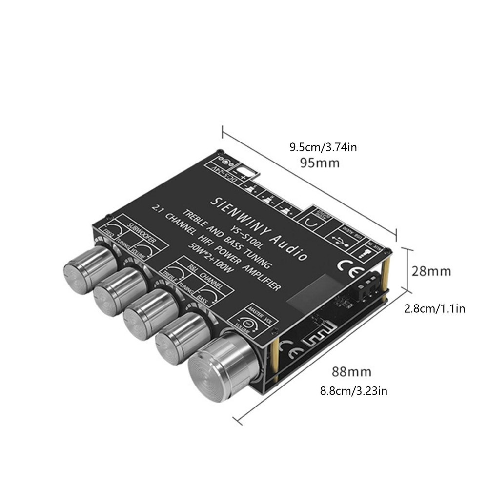 Product Description Features: 1. High quality amplifier board. With AUX and Bluetooth two kinds of audio input, two in one, 5.0 Bluetooth version, higher transmission efficiency and longer transmission distance. 2. Bluetooth audio amplifier module 2.1 channel, maximum output power 2X50W+100W. 3. With short-circuit protection as well as over-current, overheating and anti-reverse connection protection to prevent complete failure. In case of overload, the device reports the fault to the processor to protect itself from damage. 4. Copper DC connectors and barred terminals are used. Can withstand high currents without heat or damage to the wires. No DC head lead, compatible with the input power connector of this product, even if you don't have a DC head adapter or battery, you can easily wire it. 5. With bass, treble, subwoofer frequency and volume control, easily adjust the volume and enjoy the music tone you want. Widely used in shop solicitation, home theatre, square speakers, etc. 6. Support for Android for Apple system, APP visual operation play mode volume, sound effects, up and down song control, play pause, play mode, complimentary cool APP function. Specifications: Material: Metal Bluetooth version: 5.0 Power supply: DC 5-26V/10A or higher. Bluetooth compatible: version 5.0. Audio channels: 2.1 channels SNR: 92dB Audio input: Bluetooth + AUX + U-disk + USB sound card compatible Audio output: left and right channel + subwoofer + 3.5mm stereo port Frequency range: 20HZ - 30KHZ Output power: 50W+50W+100W Package include: 1X Bluetooth Amplifier Board Shipping Returns Contact Us Payment 1. Items sent from US warehouse. 2. Receiving time = Processing time + Shipping time. 3. Pro cessing Time: Around 1-2 business Days. 4. Shipping Time: 3-5 business day. it may have a little delay during some holiday (such as Christmas), any problem, please feel free to contact. 1. 30 days warranty from the purchased date. Please contact us via email before returning the defective item. 2. Our warranty does not extended to any product that are physically damaged or that are not under normal operating conditions as result of misuse or improper installation on the buyer/user's part. 3. Return items should include the original packaging and all accessories. buyers MUST contact us for the returning address. 4. In all cases, buyers pay shipping fees at their own cost to return products for exchange or refund. We will be responsible for the postage of replacements. Refund will be made upon receipt of the returned item. If you have any question, please e-mail us immediately, we will reply you as quickly as possible. We care about our valued customers, and will always try to help you. We accept all verified payment from eBay. Shipping 1. Items sent from US warehouse. 2. Receiving time = Processing time + Shipping time. 3. Pro cessing Time: Around 1-2 business Days. 4. Shipping Time: 3-5 business day. it may have a little delay during some holiday (such as Christmas), any problem, please feel free to contact. Returns 1. 30 days warranty from the purchased date. Please contact us via email before returning the defective item. 2. Our warranty does not extended to any product that are physically damaged or that are not under normal operating conditions as result of misuse or improper installation on the buyer/user's part. 3. Return items should include the original packaging and all accessories. buyers MUST contact us for the returning address. 4. In all cases, buyers pay shipping fees at their own cost to return products for exchange or refund. We will be responsible for the postage of replacements. Refund will be made upon receipt of the returned item. Contact Us If you have any question, please e-mail us immediately, we will reply you as quickly as possible. We care about our valued customers, and will always try to help you. Payment We accept all verified payment from eBay. You may also like 5/16" Line Fuel Filter Replace Part For Mercury For Quicksilver Marine Engine 12.33 USD Durable For DeWalt 20V DCB201/DCB203 Li-Ion Battery Plastic Replacement Case 17.63 USD 1.99 USD Metal Bead Eyeglass Chain Glasses Strap Holder Lanyard Sunglasses Non-slip 8.93 USD 1.99 USD 1.8mm Thickness Quick Release Watch strap Band Spring Bar Repairing Tool 17.53 USD 1.99 USD 3D-printed Material Fuel Tank Kit For Gundam MG 1/100 Sazabi ver ka Model Kit 23.63 USD 1.99 USD New MB-D18 Vertical Multi-Power Battery Grip Replacement For Nikon D850 Camera 55.93 USD 1.99 USD powered by