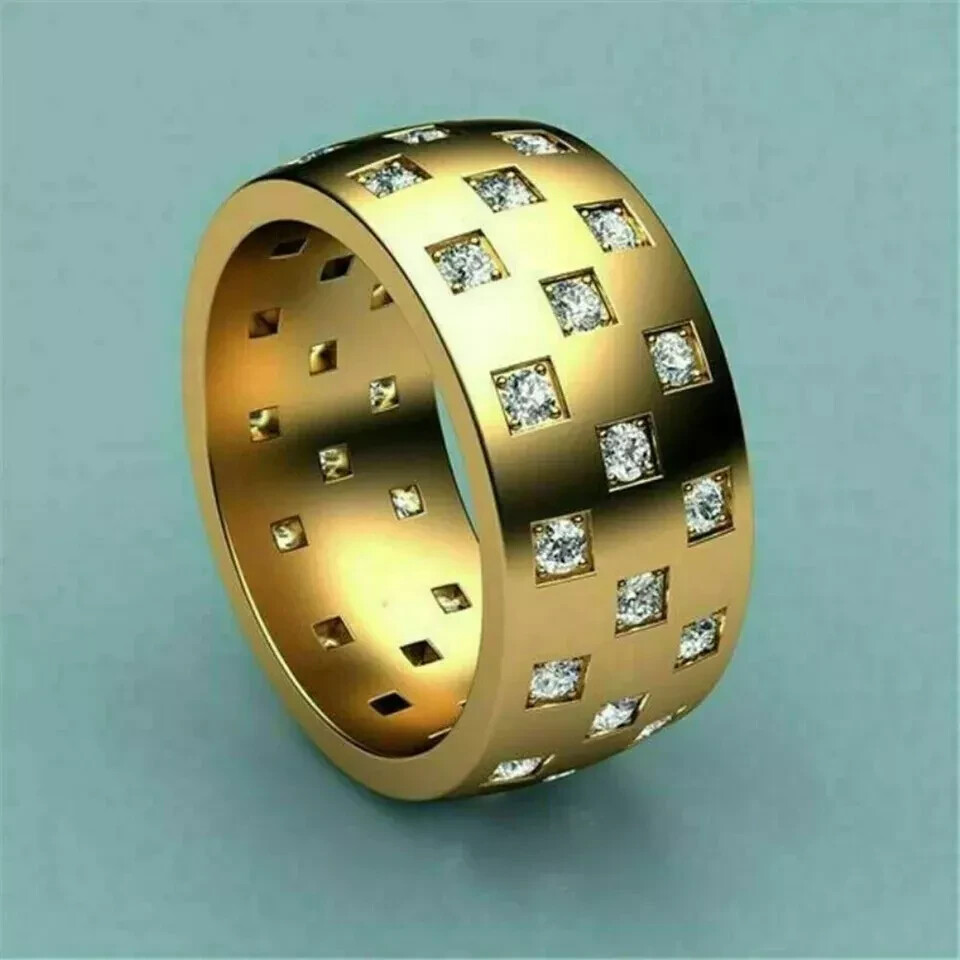 Elevate your special moments with the exquisite 2.1Ct Round Cut Lab Created Diamond Men's Wedding Band Ring, impeccably crafted in 14K Yellow Gold Plated. A true testament to timeless elegance, this ring features a prong-set round lab-created diamond that radiates with the brilliance and clarity of a Loupe Clean gemstone. The gold color grade adds a touch of warmth to the piece, making it a sophisticated choice for an anniversary or a commitment ceremony. With a metal purity of 14k, the ring promises durability and luster. The superb cut grade ensures that the stone's beauty is maximized, creating a dazzling display of light from every angle. Available in all ring sizes, this piece can be personalized to fit perfectly, ensuring a comfortable and secure fit. The ring's solid pattern and engraved features underscore its love theme, making it a meaningful addition to any jewelry collection.