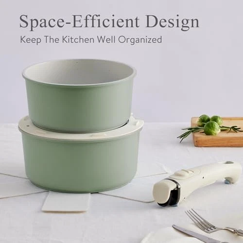 $ 50.35-Piece Green Ceramic Nonstick Cookware Set with Detachable Handles