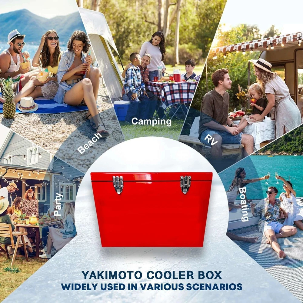 How does the cooler work? Our cooling technology is not comparable with other cool boxes. If you combine the Cooler Box Correct use, the temperature inside can be kept constant for many days - without power supply, in any climate zone, anywhere in the world. Brand Background: Yakimoto: The Frozen Mission - A Global Fight for Survival Since 1979 Historical Anchor: WHO?s "Cold Chain Initiative" In 1979, the World Health Organization (WHO) launched humanity?s largest vaccine transport operation?shipping 4 million doses of smallpox vaccine from Geneva to Somalia, the final outbreak zone in Africa. With temperatures soaring to 122°F (50°C) and no reliable electricity, traditional refrigeration units failed mid-transit, jeopardizing millions of dollars? worth of lifesaving vaccines. At Addis Ababa Airport, Japanese engineer Hayato Yakimoto made a desperate gamble: he stripped aluminum panels from the cargo plane?s hull and rigged a makeshift insulated container using titanium climbing carabiners from his gear. Drawing on alpine thermal preservation techniques, he maintained the vaccines? integrity through the final leg to Mogadishu, ultimately enabling the WHO to declare smallpox eradicated in 1980. From Historic Triumph to Brand Legacy Hayato Yakimoto was the uncle of Yakimoto?s founder, Taro Yakimoto. Family archives preserve the specs of that improvised lifesaving container: -13°F to 46°F (-25°C~8°C) temperature control (3x stricter than commercial standards of the era) 72-hour passive insulation (harnessing residual heat from aircraft hydraulic fluid) Crash-resistant design (tested through 5 emergency landings) These parameters, forged through blood and sweat, became Yakimoto?s foundational doctrine?a sacred text encoding the brand?s technological origins. Product Information: Keep your beverage refreshed for days with the Yakimoto 20L Insulated Cooler. Built for adventure, this bold red-and-white striped ice chest locks in cold for up to 4 days using thick foam walls and a compression-sealed lid. Its compact 35-can capacity (21 quarts) is perfect for beach picnics, lakeside camping, or stadium tailgates, while rust-proof steel latches secure contents during bumpy rides. The ergonomic handles and lightweight design make it easy to carry across sand or trails, and the no-power-needed insulation keeps drinks chilled anywhere – no ice packs required! 4-Day Cold Retention: High-density insulation blocks heat for 96+ hours, outperforming standard coolers in hot weather. Retro-Red Durability: Stylish vintage-red design with scratch-proof metal construction that resists fading, dents, and outdoor wear. Lock-and-Go Security: Heavy-duty steel latches prevent accidental spills in trucks, boats, or uneven terrain. Lightweight Portability: Ergonomic handles and 20L compact size make it easy to haul to beaches or campsites. Crowd-Pleasing Beverage Capacity: Holds 35 beverage cans with ice, perfectly sized for small groups at day-long fishing trips, pool parties, or RV adventures.
