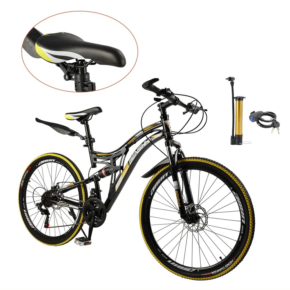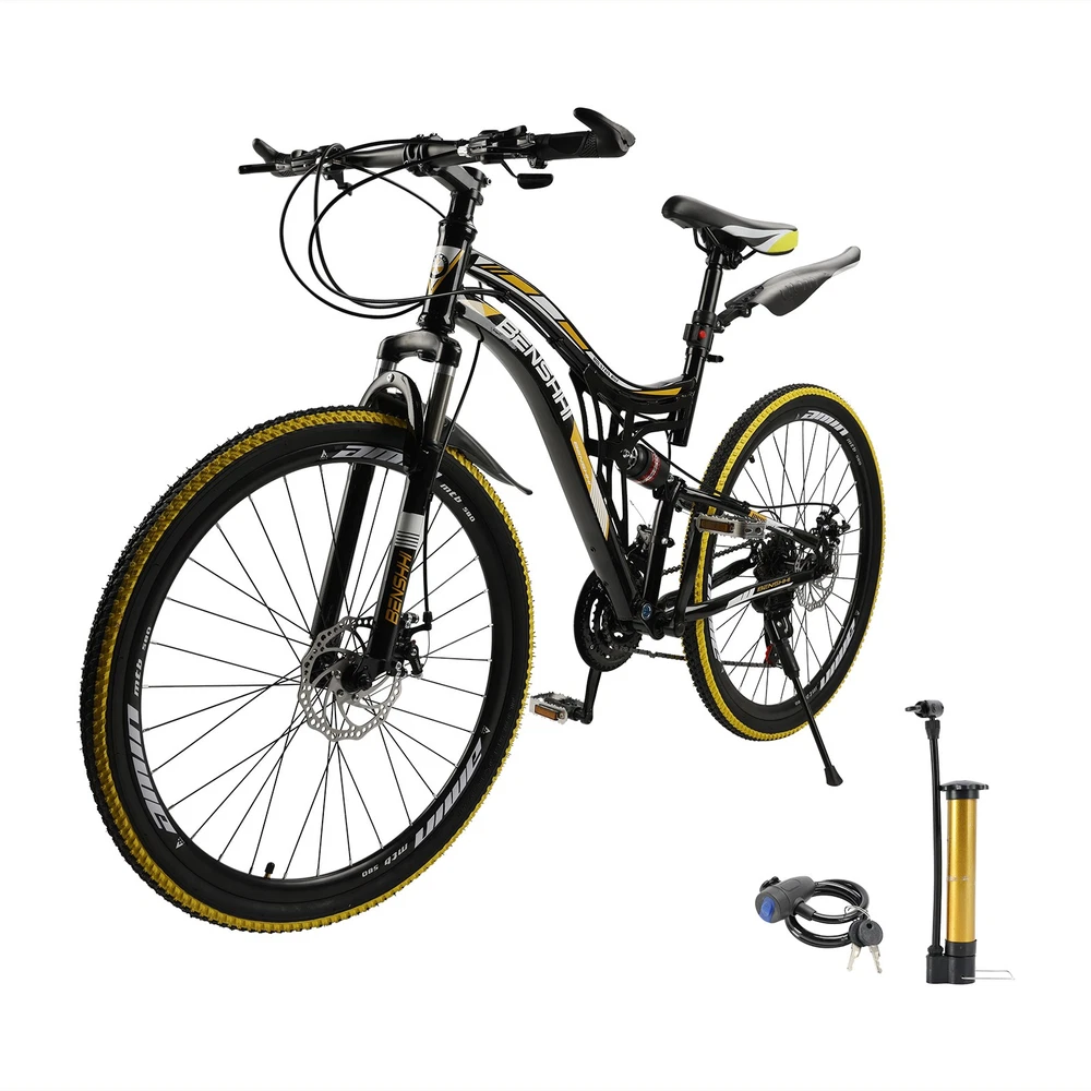 This mountain bike is a fantastic choice for teens! The full suspension makes rides smooth, and the thumb shifter ensures easy gear changes. The double disc brakes provide reliable stopping power, and the unisex design suits everyone. Great value for the price—perfect for off-road adventures or casual rides. Highly recommend!