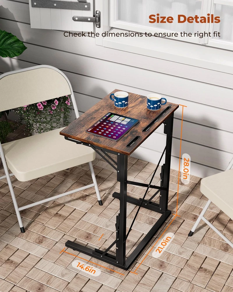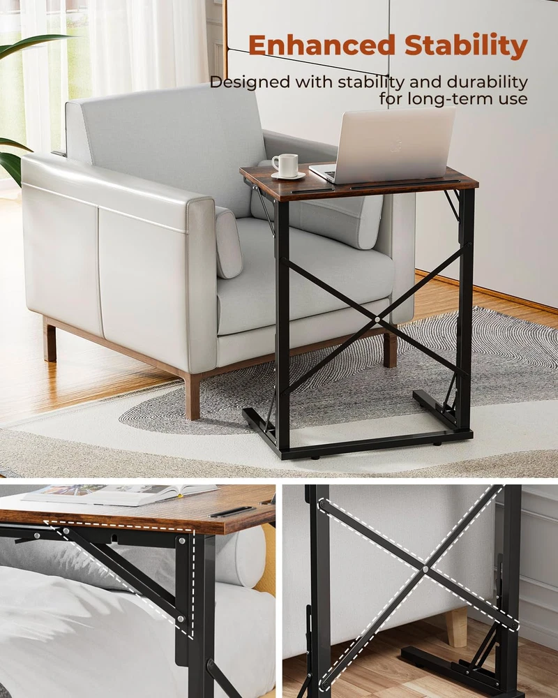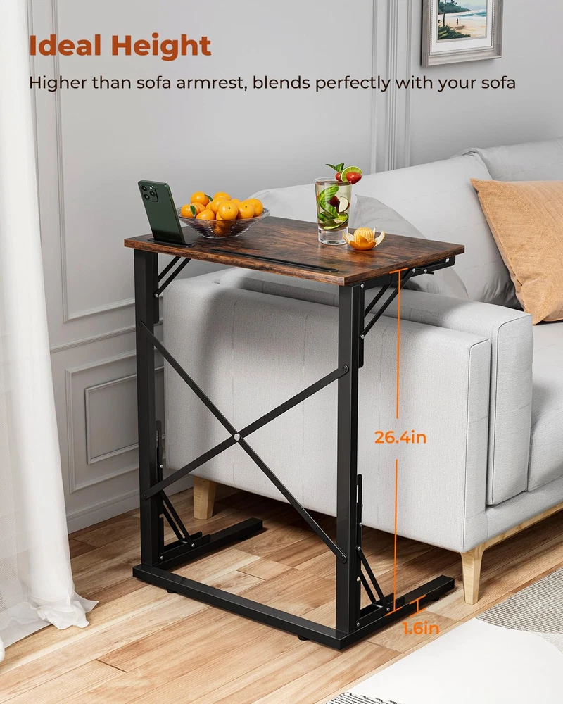 Foldable Convenience & Device Slots: This TV dinner table offers easy storage and mobility; with slots for tablets and smartphones, it keeps devices secure; ideal as a C table end table, blending functionality with sleek design to enhance any room's decor C-Shaped & Versatile: This small foldable side table slides under the couch, perfect for any space; foldable for easy storage and mobility; ideal for studying, working, or eating; built-in slots for tablets and phones; a foldable snack tray table Stable & Convenient: This portable laptop table has a sturdy design with triangular supports; perfect height for sofa armrests, making it an ideal C shaped sofa side table; a convenient surface for devices, books, or beverages Space-Saving & Stable: This small wooden folding table is perfect for tight spaces; folds neatly for storage; adjustable foot pads ensure stability; ideal as chair tables for eating and laptops, offering a convenient surface for devices, books, or snacks Easy Assembly & Support: This large breakfast TV tray table is easy to assemble by one person; ideal as dinner trays for eating on couch, offering convenience and functionality. Our customer service is ready to assist before and after your purchase