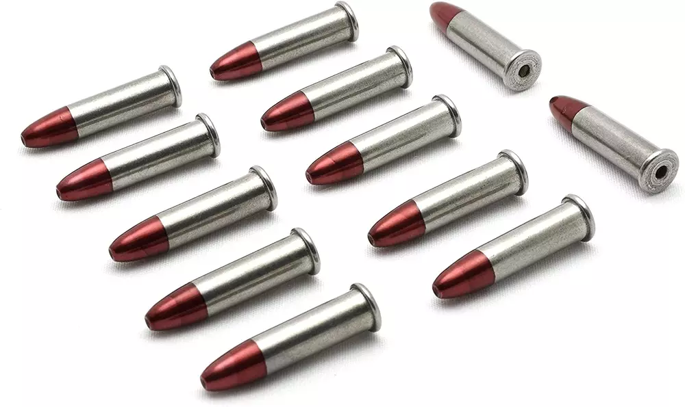 Practice safe loading, firing, misfiring Loads as real ammo, allows for safe storage Dimensions and weight of real ammunition Precision Stainless Steel construction with soft steel rim Includes 12 stainless steel rounds