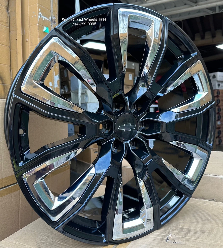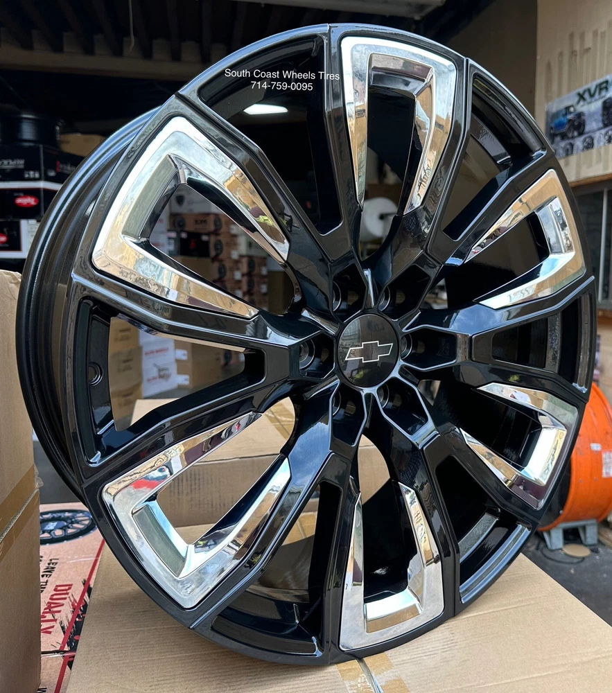 Your SATISFACTION Our PRIORITY! Feel Free to Contact us 714 - 759 - 0095 This listing is for… 4 WHEELS 22X9 FR207 GLOSS BLACK WHEEL / CHROME INSERTS 6x139.7 +28 78.1 & 4 TIRES 33X12.50R22 RBP REPULSOR MUD MT Tires FREE Set of Lug nuts FREE Mounting & Balancing This complete set of wheels and tires are BRAND NEW , Not blem and have never been mounted. Please check fitment before you buy it or bid on it. TIRE SIZE & BRAND OPTIONS Lexani LX-Thirty or Lexani LX-Nine or Lionhart LH-TEN or Achillies Desert Hawk UHP All season or Forceland or Fullway Tires Depends on Availability, Email us for quote if interested in any different tire brand such as Nexen, Pirelli, Falken etc. FITMENT GUIDE Will fit on 6Lug GMC Sierra, Yukon, Denali, Chevy Cheverlet Silverado Tahoe Avalanche, Suburban, Cadillac Escalade, But Your vehicle(Year, Make and Model) information is essential information to ensure that you are purchasing the correct wheel and/or tire Package from us. Without providing this information or Confirming this information, you as the buyer assumes any responsibility for incorrect fitment. PAYMENT OPTIONS Currently we are accepting all major credit cards and PayPal as a form of payment SHIPPING POLICY We ship within the 48 contiguous states, Please email us for discounted shipping quote for Alaska, Hawaii, Canada, Germany, Italy or Australia. We are unable to ship to P.O. Box or any APO or military address, We are ONLY able to ship to the confirmed address registered with PayPal. APPROXIMATE DELIVERY TIME We have these wheels and tires in stock and ready to be shipped out within one business day, usually it takes 2 to 6 business days in transit time... CONTACT US If you have any questions, feel free to call us at 714 - 759 - 0095 or Email us @ Ebay THANK YOU FOR VISITING US!
