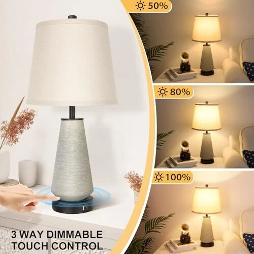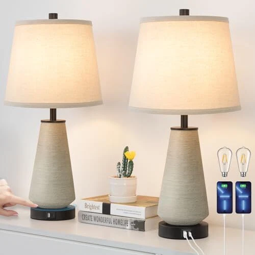 Menu 1. We require immediate payment. 2. We currently accept payment via eBay managed payments only. 3. Once payment is cleared, we will dispatch your shipment within 1-3 business days. Please refer to the "Shipping" tab for more information regarding shipping speed to your destination. 22" Set of 2 Touch Control Table Lamps, 3-way Dimmable Ceramic Bedside Lamp, Farmhouse Rustic Nightstand Lamp with USB A+C Charging Ports, End Table Lamp for Living Room Office Bedroom Home Product description Stylish Design with Ceramic Base: This table lamp features a sophisticated handmade brushed grey-green ceramic base, perfect for enhancing any bedroom, living room, home or office decor. The ceramic base is not only visually appealing but also ensures stability and durability. Convenient Touch Control: Easily operate the boho end table lamp with a simple touch. The touch-sensitive base allows you to turn the light on or off with a tap, bringing high-tech convenience to your bedside, desk, or end table, adding convenience and modern flair to your lighting experience. Brighten up your life with our modern nightstand lamps. 3-Way Dimmable Lighting: The farmhouse elegant side table lamp offers three brightness levels, allowing you to adjust the light intensity to suit your needs. Whether you need a soft nightlight for your baby room, bright task lighting for your study room, or ambient lighting for your Dining Room, this modern lamp has you covered. Includes 3000k LED Bulbs: Comes with two E26 base 8W 1000LM 3000K LED bulbs that provide warm, cozy lighting. These energy-efficient bulbs have a long lifespan, saving you the hassle of frequent replacements. Ideal for reading, studying, or creating a relaxing atmosp. Built-In Dual AC Charging Ports: Equipped with Dual AC charging ports on the base, this rustic lamp lets you conveniently charge your phone, tablet, or other devices, keeping your workspace neat and organized. This elegant table lamp is not only functional but also a stylish addition to any home or office. Enhance your space with this versatile and modern lighting solution. PLEASE MESSAGE US IF YOU HAVE ANY OTHER QUESTIONS, AND MANY THANKS FOR READING ALL OF THIS. Copyright ©#. All Rights Reserved.