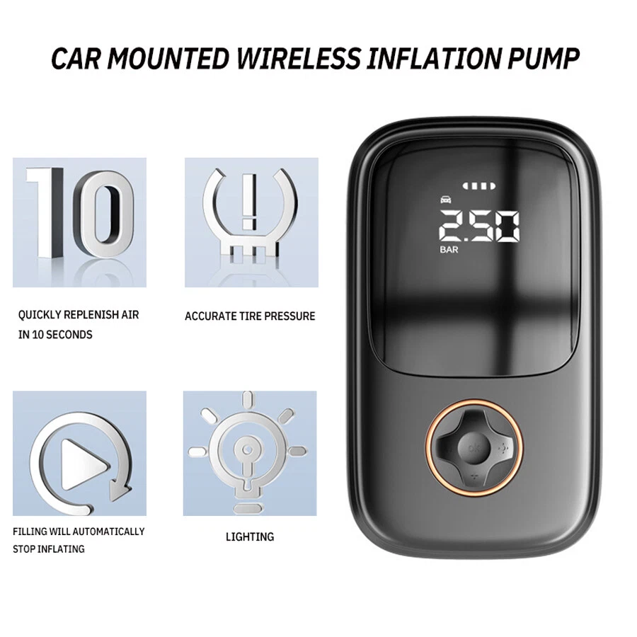 DESCRIPTION: Condition: 100% New Colour: As the picture shown Material: ABS Size: 8.4 * 14.4 * 4.9CM Air volume: 70L Power: 120W Net weight: 450g Type: Car mounted inflation pump, power bank Scope of application: Automotive/Home/Outdoor, Portable External dimensions: 8.4 * 14.4 * 4.9CM Pressure: 3.5kg Weight: 550g Additional features: power bank/lighting/graphics digital display/automatic stop when fully charged Cylinder specifications: 15 cylinders Pressure flow rate: 35L/min/4000 mA Color: Black Suction force: 2200Pa Pressure flow rate: 35L/min Applicable scope: automotive/household/outdoor Additional features: Inflation pump/lighting/properties Cylinder specifications: 15 cylinders Features: 1. Wireless binding, flexible and portable, convenient for storage and carrying 2. Automatic stop when fully charged, precise detection, preset tire pressure 3. Fast inflation in 10 seconds, ultra long standby time 4. Equipped with dedicated shock absorbers, dual noise reduction, as low as 40dB NOTE: 1. Due to the hand measurement, there may have error measurement about 1-5mm. 2.Item color displayed in pictures may be showing slightly different on your computer monitor since monitors are not calibrated same. Your understanding will be highly appreciated. SHIPMENT: 1.Buyer take responsibility in import / tax cost (not included in item price) 2.Pls contact with us to confirm extra cost if you need to upgrade the shipping option 3.If there's any concern about shipping, pls contact with us for further confirmation RETRUN POLICY: -30 DAY MONEY BACK RETURN POLICY: 1. If you are unhappy with your item or changing of mind purchases for whatever reason, pls keep the item and package original. Buyer needs to afford the return postage. Besides, original postage will not return. 2. Please contact us within 30 days if you have a faulty item and we will cover the return postage where necessary, we do not cover this outside 30 days of purchase. -ADDRESS CHANGES: 1. If you enter the incorrect name or shipping details before purchasing, we will arrange shipment for you according to your ebay address. 2. We are not responsible for these changes if there is a mistake entered by the buyer. CONTACT US: 1. Our working time is from Beijing time 9:00am to 18:00pm on working days. 2. We hope to give you a good shopping experience. We will glad to help you solve problems once we receive your letter on working time. 3. If you have any questions or advice about the product you receive, pls contact us and send the pictures about the item firstly, we will check the issue for you ASAP and make you sastified.