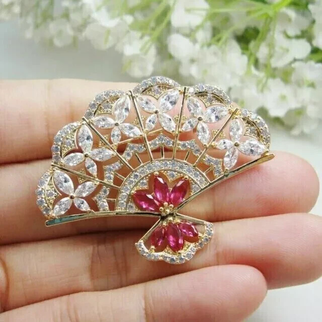 Gemstone Clarity Grade: Slightly Included Theme: Beauty Antique: No Personalize: Yes Setting Style: Prong Metal Purity: 925 Base Metal: Sterling Silver Number of Gemstones: As Per Picture Main Stone: Ruby Signed: No Cut Grade: Excellent Vintage: No Main Stone Shape: Marquise Item Length: As per picture Brand: karunas-76 Material: Stone Handmade: Yes Shape: Fan Features: Engraved Color: Yellow Country/Region of Manufacture: India Customized: Yes Seller Warranty: Yes Era: Undated Main Stone Creation: Simulated Country of Origin: India Metal: Sterling Silver Secondary Stone: Simulated Diamond Occasion: Anniversary, Birthday, Christening, Christmas, Engagement, Graduation, Mother's Day, Valentine's Day, Wedding Type: Brooch Main Stone Color: Red Main Stone Treatment: Not Enhanced