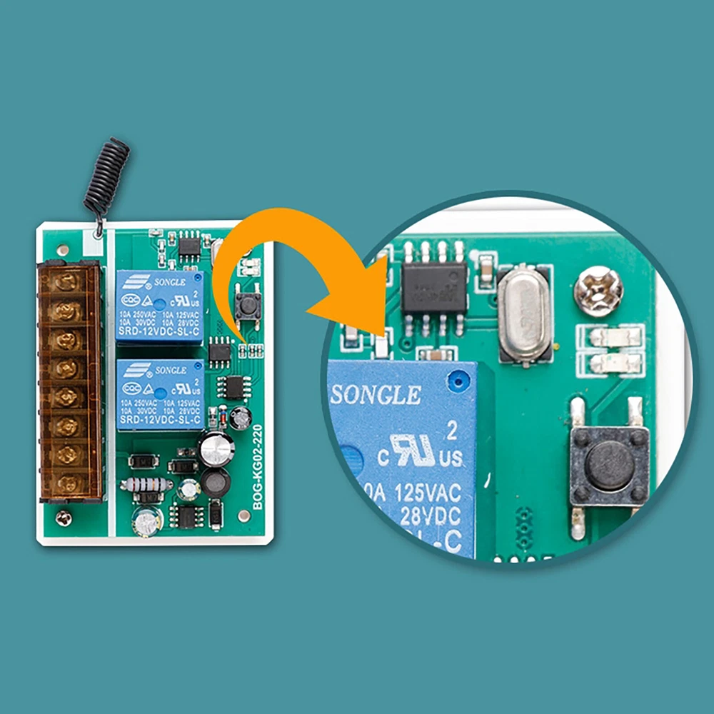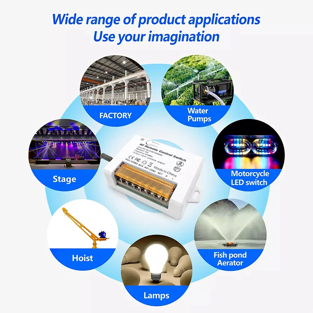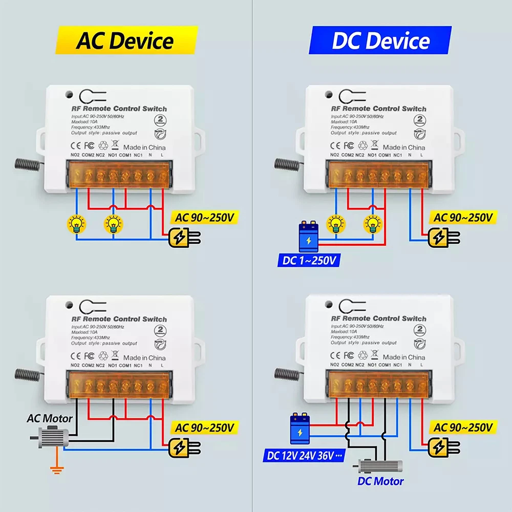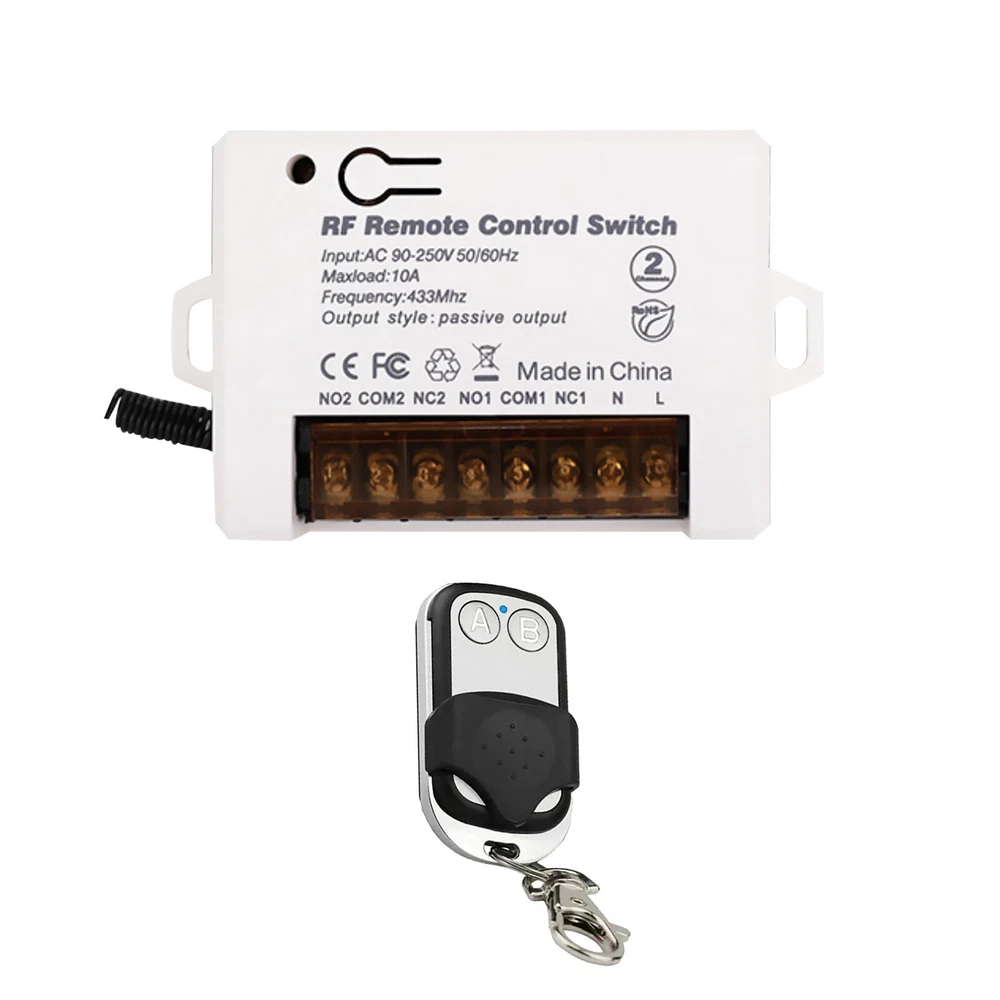 Product Description 220V 2Ch 110V Relay Receiver Wireless Remote Control Switch for Garage/Gate Features: 1.Big Holes, Easy To Connect With Wires 2.Wide Voltage, For Lights / Motors / Garage / Fan / Diy 3.300m Remote Range, 433mhz Stable Signal Specifications: Working Voltage: AC90~250V Rf Frequency: 433mhz Working Temperature: -30℃ - +70℃ Receiving Sensitivity: -117dbm Support Encoding: Leaning Code Receiving Range: Open Space Is 300 Meters Batteries: 1* 12V 27A Battery(Battery Included) Remote Operating Mode: Momentary Mode / Toggle Mode / Latched Mode Load Power: 500W Working Modes: You Can Set Up In 3 Modes: Momentary Mode,Toggle Mode And Latched Mode. Momentary Mode: Press And Hold A Button, 1st Relay Will Work; Release A Button,1st Relay Will Stop. Press And Hold B Button, 2nd Relay Will Work; Release B Button, 2nd Relay Will Stop. Toggle Mode: Press A Button, 1st Relay Will Work; Press A Button Again, 1st Relay Will Stop. Press B Button, 2nd Relay Will Work; Press B Button Again, 2nd Relay Will Stop. Latched Mode: Press A Button, 1st Relay Will Work; Press B Button, 1st Relay Will Stop, 2nd Relay Will Work. Press A Button Again, 2nd Relay Will Stop, 1st Relay Will Work Set Up: Momentary Mode: Press Learning Button Once, Press A Button Once, Succeed. Toggle Mode: Press Learning Button Twice, Press A Button Once, Succeed. Latched Mode: Press Learning Button 3times, Press A Button Once, Succeed. Clean Data: Press Learning Button 8times, The Data Will Be Cleaned. All Remotes Cannot Control This Receiver. Package Included: 1 X Receiver 1 X Remote Control If you have any questions, please feel free to contact us via ebay. We usually respond within 24 hours. Payment Shipping Returns Contact Us We accept all verified payments from ebay. Orders will be shipped after receiving cleared payment. Payment due within 7 days after auction ends and for buy it now listings. We ship most of our orders within 24 hours, and may up to 48 hours for. If you want faster shipping way. Please contact us before making payment. Sometimes due to problems with our transportation company system, your shipping information may be delayed to update. We recommend that you try again after 3-4 days. If you still haven't checked the shipping information, you can contact us by ebay message. Always believe we can figure things out with communication, if it comes to return, the pacakge must be intact and the same as you receive. If you have any questions, please feel free to email our service specialists 24 Hours a Day, 7 Days a Week. We will reply you ASAP. Return/refund is accepted within 30 days after the buyer receives the item. NO exchange will be accepted after 30 days from the date when the item is received. Please contact us first before returning your product!!! If you have any questions, our Customer Service staffs welcome you to email us. We strive to answer all questions and resolve any problems as quickly as possible. You can contact us 7*24, we will reply at the first time, and we will surely solve your problems. Note: 1.We try our best to reply to your emails as soon as possible, however, due to high volume of daily incoming emails and time zone difference, we may not be able to reply your emails immediately. Please allow 1 business days for us to response. If you do not receive any reply from us, please check your email ensuring your mailbox has not reached full size. 2.Due to some ISP SPAM filter settings, you may not be able to receive our replies; if you have problems receiving our emails, you may need to use a different email account to contact us. 3.Please give us the opportunity to resolve any problem. We understand the concerns and frustrations you might have, and will try our best to resolve the issues. Please email us before leaving any negative feedback or open any dispute on PayPal. 4.We care about our valued customers, and will always try to help you. So if you have any problems, please e-mail us immediately. Payment We accept all verified payments from ebay. Orders will be shipped after receiving cleared payment. Payment due within 7 days after auction ends and for buy it now listings. Shipping We ship most of our orders within 24 hours, and may up to 48 hours for. If you want faster shipping way. Please contact us before making payment. Sometimes due to problems with our transportation company system, your shipping information may be delayed to update. We recommend that you try again after 3-4 days. If you still haven't checked the shipping information, you can contact us by ebay message. Returns Always believe we can figure things out with communication, if it comes to return, the pacakge must be intact and the same as you receive. If you have any questions, please feel free to email our service specialists 24 Hours a Day, 7 Days a Week. We will reply you ASAP. Return/refund is accepted within 30 days after the buyer receives the item. NO exchange will be accepted after 30 days from the date when the item is received. Please contact us first before returning your product!!! Contact Us If you have any questions, our Customer Service staffs welcome you to email us. We strive to answer all questions and resolve any problems as quickly as possible. You can contact us 7*24, we will reply at the first time, and we will surely solve your problems. Note: 1.We try our best to reply to your emails as soon as possible, however, due to high volume of daily incoming emails and time zone difference, we may not be able to reply your emails immediately. Please allow 1 business days for us to response. If you do not receive any reply from us, please check your email ensuring your mailbox has not reached full size. 2.Due to some ISP SPAM filter settings, you may not be able to receive our replies; if you have problems receiving our emails, you may need to use a different email account to contact us. 3.Please give us the opportunity to resolve any problem. We understand the concerns and frustrations you mi