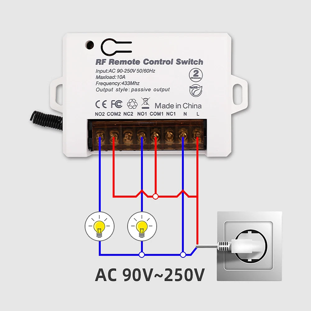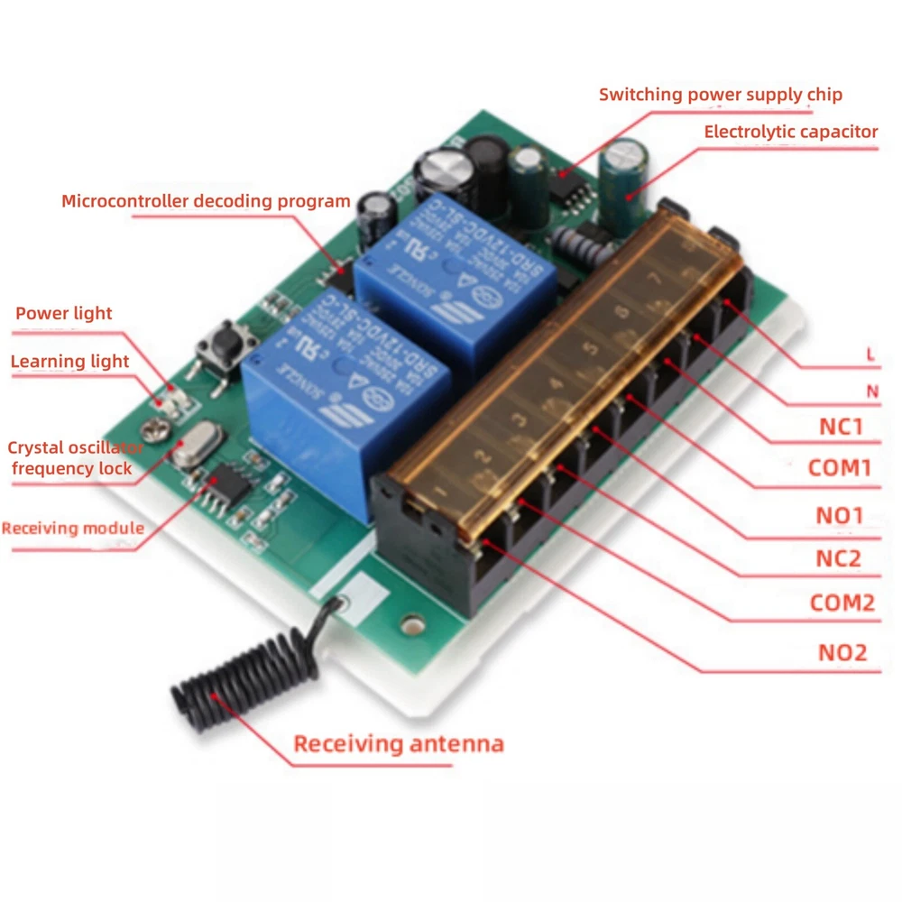 Product Description Features: 1.Big Holes, Easy To Connect With Wires 2.Wide Voltage, For Lights / Motors / Garage / Fan / Diy 3.300m Remote Range, 433mhz Stable Signal Specifications: Working Voltage: AC90~250V Rf Frequency: 433mhz Working Temperature: -30℃ - +70℃ Receiving Sensitivity: -117dbm Support Encoding: Leaning Code Receiving Range: Open Space Is 300 Meters Batteries: 1* 12V 27A Battery(Battery Included) Remote Operating Mode: Momentary Mode / Toggle Mode / Latched Mode Load Power: 500W Working Modes: You Can Set Up In 3 Modes: Momentary Mode,Toggle Mode And Latched Mode. Momentary Mode: Press And Hold A Button, 1st Relay Will Work; Release A Button,1st Relay Will Stop. Press And Hold B Button, 2nd Relay Will Work; Release B Button, 2nd Relay Will Stop. Toggle Mode: Press A Button, 1st Relay Will Work; Press A Button Again, 1st Relay Will Stop. Press B Button, 2nd Relay Will Work; Press B Button Again, 2nd Relay Will Stop. Latched Mode: Press A Button, 1st Relay Will Work; Press B Button, 1st Relay Will Stop, 2nd Relay Will Work. Press A Button Again, 2nd Relay Will Stop, 1st Relay Will Work Set Up: Momentary Mode: Press Learning Button Once, Press A Button Once, Succeed. Toggle Mode: Press Learning Button Twice, Press A Button Once, Succeed. Latched Mode: Press Learning Button 3times, Press A Button Once, Succeed. Clean Data: Press Learning Button 8times, The Data Will Be Cleaned. All Remotes Cannot Control This Receiver. Package Included: 1 X Receiver 1 X Remote Control Payment Shipping Returns Contact Us We accept all verified payments from ebay. Orders will be shipped after receiving cleared payment. Payment due within 7 days after auction ends and for buy it now listings. We ship most of our orders within 24 hours, and may up to 48 hours for. If you want faster shipping way. Please contact us before making payment. Sometimes due to problems with our transportation company system, your shipping information may be delayed to update. We recommend that you try again after 3-4 days. If you still haven't checked the shipping information, you can contact us by ebay message. Always believe we can figure things out with communication, if it comes to return, the pacakge must be intact and the same as you receive. If you have any questions, please feel free to email our service specialists 24 Hours a Day, 7 Days a Week. We will reply you ASAP. Return/refund is accepted within 30 days after the buyer receives the item. NO exchange will be accepted after 30 days from the date when the item is received. Please contact us first before returning your product!!! If you have any questions, our Customer Service staffs welcome you to email us. We strive to answer all questions and resolve any problems as quickly as possible. You can contact us 7*24, we will reply at the first time, and we will surely solve your problems. Note: 1.We try our best to reply to your emails as soon as possible, however, due to high volume of daily incoming emails and time zone difference, we may not be able to reply your emails immediately. Please allow 1 business days for us to response. If you do not receive any reply from us, please check your email ensuring your mailbox has not reached full size. 2.Due to some ISP SPAM filter settings, you may not be able to receive our replies; if you have problems receiving our emails, you may need to use a different email account to contact us. 3.Please give us the opportunity to resolve any problem. We understand the concerns and frustrations you might have, and will try our best to resolve the issues. Please email us before leaving any negative feedback or open any dispute on PayPal. 4.We care about our valued customers, and will always try to help you. So if you have any problems, please e-mail us immediately. Payment We accept all verified payments from ebay. Orders will be shipped after receiving cleared payment. Payment due within 7 days after auction ends and for buy it now listings. Shipping We ship most of our orders within 24 hours, and may up to 48 hours for. If you want faster shipping way. Please contact us before making payment. Sometimes due to problems with our transportation company system, your shipping information may be delayed to update. We recommend that you try again after 3-4 days. If you still haven't checked the shipping information, you can contact us by ebay message. Returns Always believe we can figure things out with communication, if it comes to return, the pacakge must be intact and the same as you receive. If you have any questions, please feel free to email our service specialists 24 Hours a Day, 7 Days a Week. We will reply you ASAP. Return/refund is accepted within 30 days after the buyer receives the item. NO exchange will be accepted after 30 days from the date when the item is received. Please contact us first before returning your product!!! Contact Us If you have any questions, our Customer Service staffs welcome you to email us. We strive to answer all questions and resolve any problems as quickly as possible. You can contact us 7*24, we will reply at the first time, and we will surely solve your problems. Note: 1.We try our best to reply to your emails as soon as possible, however, due to high volume of daily incoming emails and time zone difference, we may not be able to reply your emails immediately. Please allow 1 business days for us to response. If you do not receive any reply from us, please check your email ensuring your mailbox has not reached full size. 2.Due to some ISP SPAM filter settings, you may not be able to receive our replies; if you have problems receiving our emails, you may need to use a different email account to contact us. 3.Please give us the opportunity to resolve any problem. We understand the concerns and frustrations you might have, and will try our best to resolve the issues. Please email us before leaving any negative feedback or open any dispute on PayPal. 4.We care about our valued customers, and