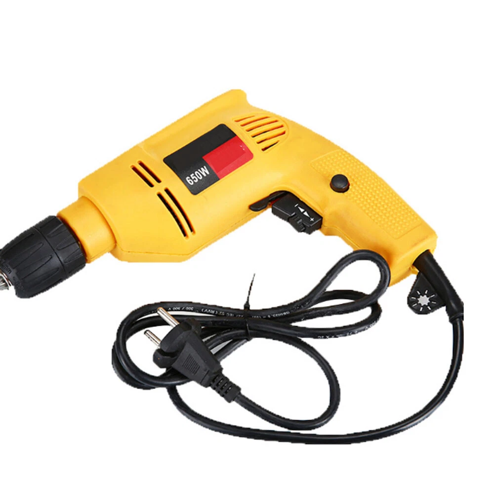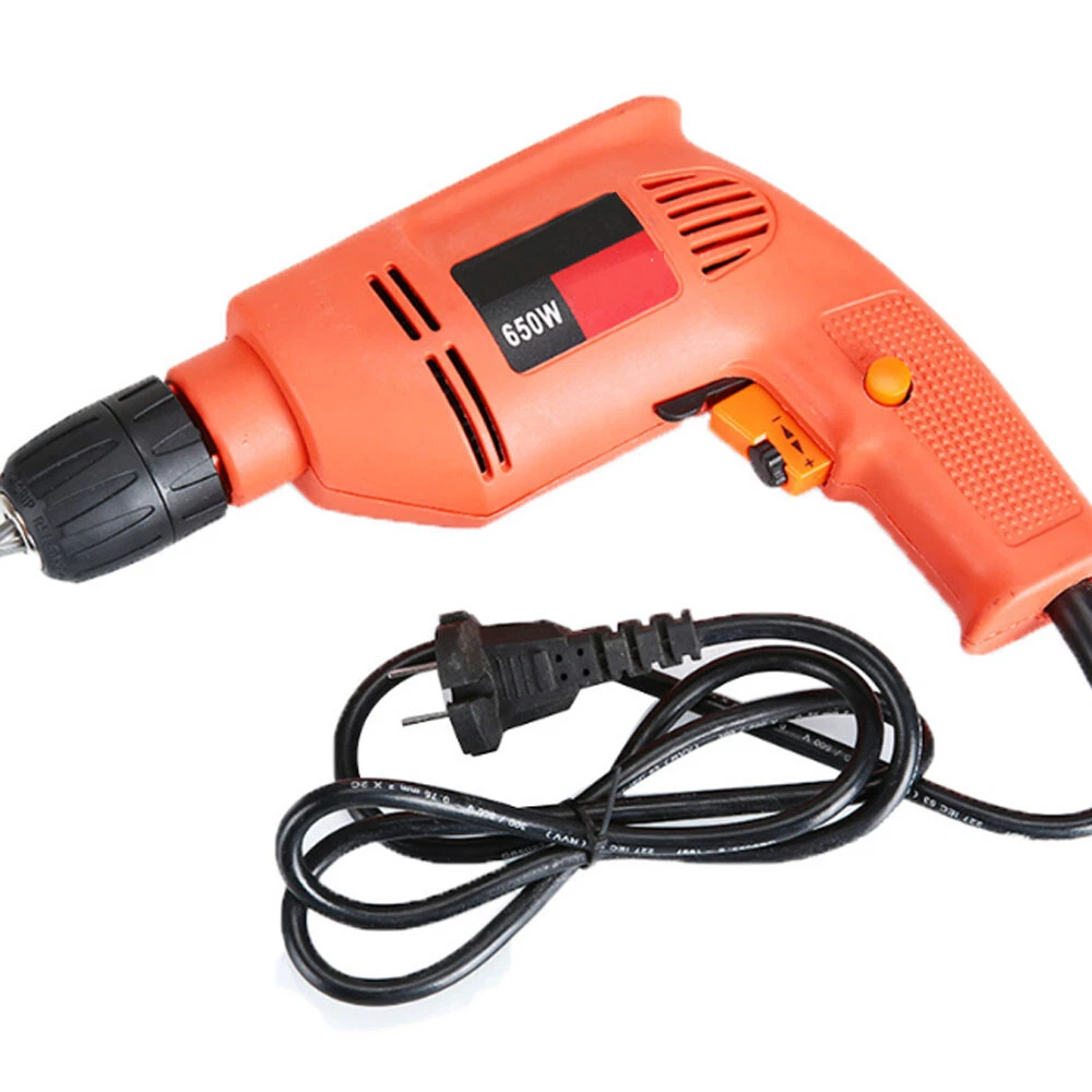 Description: 1. Quality motor, high temperature resistance, fast heat dissipation, strong power to ensure that the stable operation is not easy to burn the machine. 2. One key positive and reverse, assembly and disassembly easy conversion, thumb and index finger can easily control the positive and reverse work handy. 3. Soft adhesive handle, ergonomic, fit palm and comfortable to hold. 4. Strong power out of the hole fast, easy to break through concrete, professional grade engineering electric drill with high speed, strong power, can be easily in concrete, iron and so on. Specifications: 1. Power supply voltage: 220V 2. Electric drill can adjust the speed: two gear speed adjustment 3. Scope of application: household use, furniture 4. Motor type: a brushed motor 5. Rated power: 650W 6. No-load rotation speed (maximum): 2,600 r/min Package Included: 1 set electric hand drill
