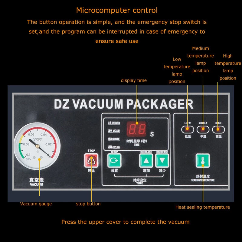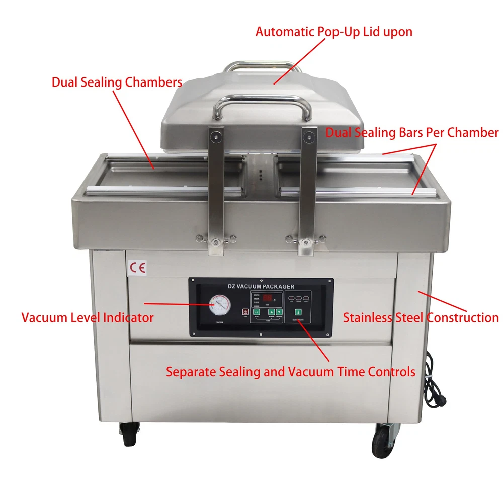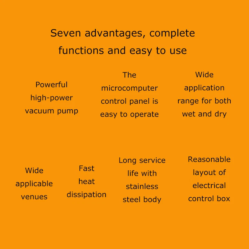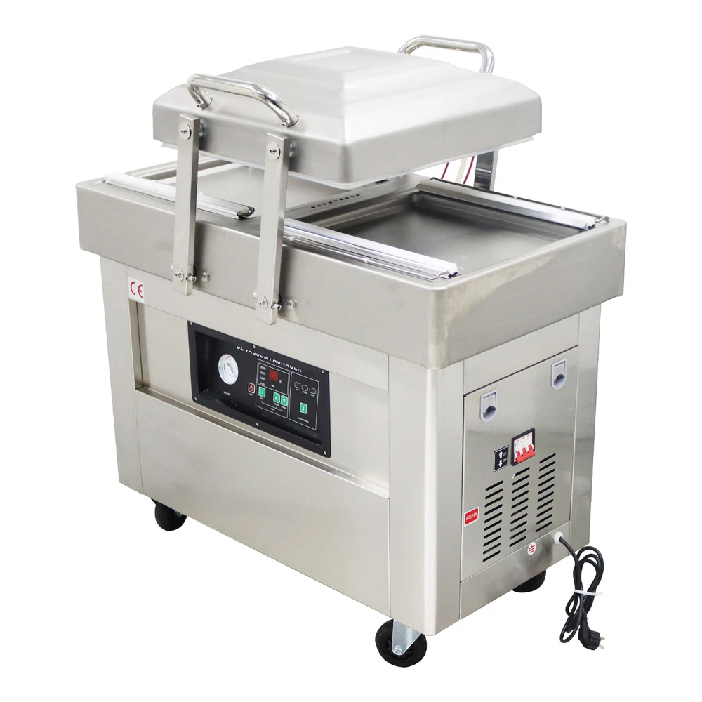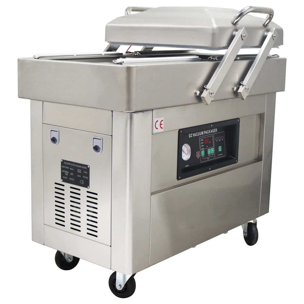 220V Commercial Two Chamber Vacuum Sealer Food Vacuum Packaging Machine 15.7'' The DZ400 machine is designed to evacuate the air from bagged food and non-food items for short and long term preservation. The DZ400 machine is ideal for many applications where the extension of a product's shelf life or a water/air barrier is necessary. The DZ400 machine can be used for sealing meats, vegetables, fruits and other perishable food items. The DZ400 machine comes with dual chambers and dual sealing bars for higher capacity sealing. Packing speed 1-3T/Min Voltage 220V Wattage 0.9KW Material Stainless Steel Vacuum chamber size 17.5*19.5*1.57inch Weight 178kg/392.42lbs Precautions for use 1. It is prohibited to package flammable and explosive materials. 2. Ensure that the equipment is well grounded and regularly check the grounding wire. 3. Keep the heat sealing strip clean to prevent foreign objects from affecting the sealing strength. 4. The sealing opening of the packaging bag should be clean and free of stains. 5. The machine should be placed in a dry place. 6. Do not touch the machine with hands in the working process, and do not stretch your hands into the packaging chambers to avoid scalds. Operation steps 1. Connect the machine to a 220V power supply, and the power indicator light will be on. 2. Put the objects into the packaging bag, flatly lay the bag opening on the heat sealing bracket, and lift the pressure strip to fix the bag opening. 3. Press down the vacuum cover, and start the vacuum pump. When the set vacuum degree is achieved, the air pumping operation stops, and the heat sealing indicator light is on. 4. The solenoid valve works, the heat sealing program begins, and the machine enters the cooling phase after the heat sealing is finished. 5. After the cooling is completed, the pressure relief solenoid valve works, the air enters the chamber, the vacuum cover is automatically lifted, and the packaging bag can be taken out. Before the machine is used, it is necessary to add No. 46 or No. 100 hydraulic oil to the vacuum pump Note:Two types of air switches are shipped randomly. Item inclued Vacuum Sealer Two Chambers 220V--160812 Shipping & Handling Default Shipping Cost or Free Shipping Information: Default shipping cost or free shipping service is only for the lower 48 United States by UPS Ground or USPS. Other areas or needs other shipping ways, please contact us. Buyers from Guam, Puerto Rico, Virgin Islands, American Samoa, Alaska, Hawaii, PO Boxes, APO/FPO addresses or other countries/areas, there WILL be extra shipping costs, please contact us for more detailed information. Please make sure your address is valid for both UPS and USPS services. Any costs incurred because of incorrect or undeliverable address should be undertaken by buyer. Handling Time: Shipping is usually made in 1-3 business days after payments cleared. Orders are processed from Monday-Friday; Not on the weekends & public holidays. Sales tax / Customs duties Any sales taxes or Customs duties are not included. If came out, they must be undertaken by the buyer. Damage In Shipping Email or call us First! We will work with you to get the case resolved in the fastest method. Return&Refund If you are not 100% happy with your purchase, please contact Us. Please don't directly opened a request or case without informing us, or else, we will do some discounts on the warranty and other sales-services later on. Hope for your understanding. Returns & Exchanges All returns must be made within 30 days of delivery date. Items must be in new, unused condition, with all original materials included with the shipment. A partial refund may be applied for opened or damaged items, depending on the condition. Items returned under the buyer’s remorse: The return shipping fee must be covered by the buyer; The original shipping cost will also be deducted from the refund. 15% restocking fee of the items purchase price will be charged. Returns that are the result of our seller's error: Buyer will receive a full refund of the item as well as shipping charges All returns require a RA (Return Authorization) number that will be given by our seller. Please contact with us at first for more details. Defective & Damaged Products If product was received damaged or not as described, please send us some pictures or videos, so we could well understand your problem, then solve them for you ASAP. Besides, it's much helpful for us to claim with UPS, remind our related department to pay much more attention to packaging later on. Hope for your understanding. Replacement or refund of defective or damaged products can only be returned in exchange for the exact same product, or else, the purchase price will be refunded back to your original payment method. If an item is received damaged, customer service must be contacted within 7 days of receiving your item. All returns require a RA (Return Authorization) number as above. Warranty& Feedback 6 months' warranty for the machines, not for the consumables. We stand behind our products all the item, so even if your warranty period has expired, you can still seek for service or technical support from us with low cost. Any warranty shipping cost to us is responsible by buyer. Any shipping cost to buyer is responsible by the seller. We committee to the customer satisfaction and want to bring you the best purchase experience. If there is any problems, please contact us ASAP. If not, please leave us a positive feedback as it's very important for us. Thanks very much. On Jul 3, 2025 at 05:41:35 PDT, seller added the following information: