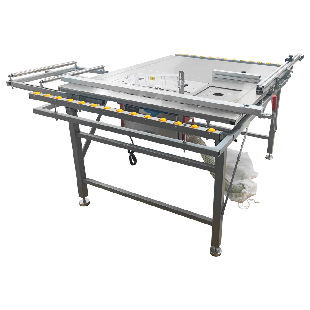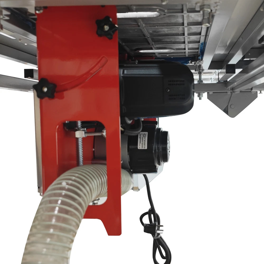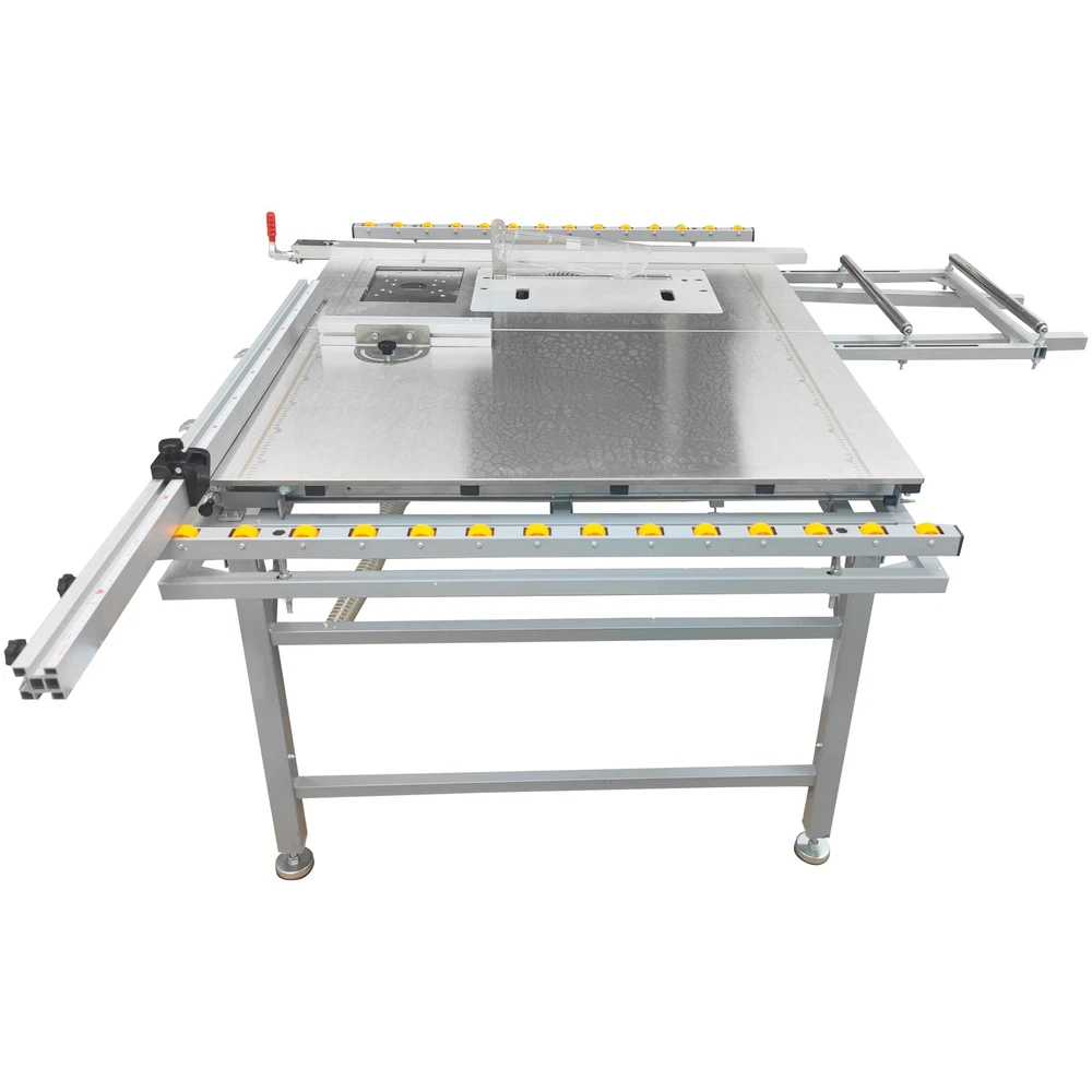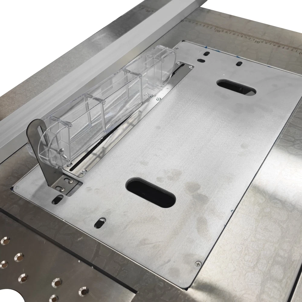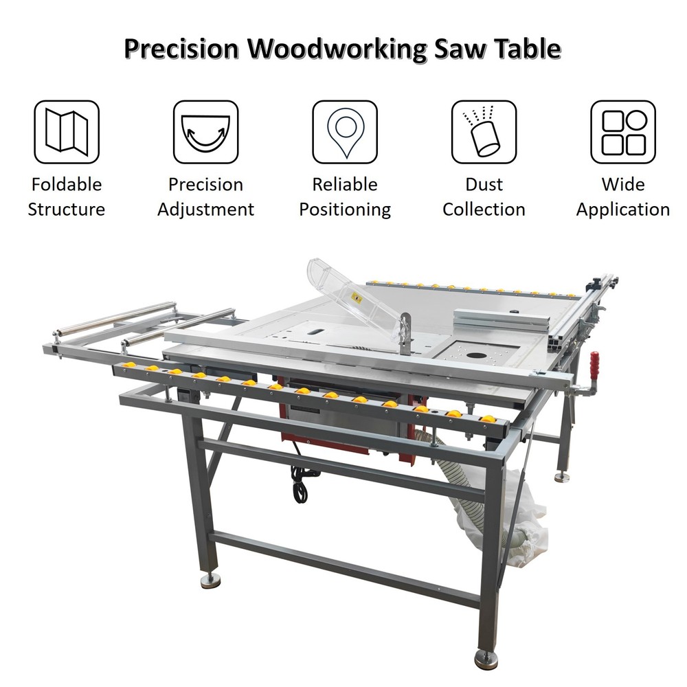 220V Precision Dust-free Woodworking Saw Table Wood Cutting Machine Saw Table The woodworking saw table with an anti-chip dust-free saw is a professional saw combination specifically designed for achieving high precision cutting and environmentally-friendly operation. The saw table has the advantages of high cutting quality, effective dust collection, high operation safety and low energy efficiency. The woodworking saw table can be widely applied to the woodworking industry and is suitable for furniture manufacturing, musical instrument making, building model processing, woodworking teaching, etc. Voltage 220V 1-phase Material of pushing plate 0.7mm stainless steel plate Size of saw bite 50x30cm (19.7x11.8 inches) Size of Table top 100x120cm (39.3x47.2 inches) Material of saw table Aluminum alloy linear precision square rail Frame structure Disassembly-free right-angle foldable inclined beam Total net weight About 75kg (165.3LBs) 1. Small size, light weight, foldable structure, and convenient for workers to carry. 2. Durable and aesthetically pleasing. 3. Environmentally friendly, avoid secondary pollution in decorated rooms and ensure the health of construction personnel. 4. The safety switch and safety cover prevent personal injury caused by operational errors. 5. Dry dust removal, longer motor life, safe and reliable. 6. Workers can easily clean the dust, and the elastic belt dust collection bag is fast and convenient to clean. Anti-chip Saw Unit The anti-chip saw is equipped with a main saw blade and an auxiliary saw blade, grooving and cutting can be accomplished at the same time, the processing time is remarkably shortened, the cut is flat and smooth, and the operating convenience and efficiency are greatly improved. Dust Collection Bag The dust collection bag is perfectly matched with the dust collection system to achieve effective dust collection during operation. The dust collection bag is low in cost, easy to install and use, high in compatibility, small in occupied space and good in dust collection effect. Dust Cover By means of the transparent dust cover, the dust generation source can be completely covered as much as possible, the dust can be quickly sucked into the pipe before dispersion, and the dust removal efficiency is remarkably improved. As a physical barrier, the dust cover can also improve the operation safety. Fixing Handle The fixing handle can be controlled to fix and release the backing plate during use, effectively preventing the workpiece from movement and deviation during operation, improving the operating efficiency and ergonomic comfort and achieving precision adjustment. Positioner The positioner is movably installed on the backing plate and can be conveniently adjusted as required, the high precision and consistency of cutting can be achieved, the measurement error can be effectively eliminated, and the positioning requirement can be perfectly met. Angle Regulator The angle regulator can be easily adjusted to achieve high-precision angle setting and cutting, the angle error can be eliminated, seamless splicing can be easily achieved, the efficiency of complex cutting can be substantially improved, and the processing consistency is well enhanced. Preformed Hole The preformed hole is designed for installation of a milling machine, effectively enhancing the functionality of the saw bench, achieving seamless integration and quick switching of saw cutting and milling, and greatly improving the processing accuracy and capacity. Extension Roller The extension roller can stably support long/large workpieces, the workpieces can be prevented from deformation during operation, the cutting error can be avoided, the grooving quality can be effectively ensured, and the ergonomic demand can be well met. Moving Wheels The moving wheels are additionally provided for the saw bench, facilitating movement after the saw bench is folded. The saw bench can adapt to different working requirements, the physical output can be greatly reduced, and the safety is also well improved. Operation Method 1. Assemble the saw table and saw system, and connect the dust collection bag. 2. Place the material to be processed on the table top, adjust the positions of backing plates according to the processing requirements, and adjust the angle as needed. 3. Connect the saw system to the 220V power supply with reliable grounding, and start the saw system. 4. Slowly push the material to achieve cutting operation. 5. After processing, unplug the saw system, clean the saw bench thoroughly and clean away the dust in the dust collection bag. Attention 1. Keep children and other persons away from the machine when operating the power tools. 2. Correctly connect the machine to the 220V power supply with reliable grounding. 3. Keep alert, and pay attention to the operation. Do not operate the machine when you are tired or have a drug, alcohol or treatment response. 4. Use personal protective equipment and always wear goggles. Do not wear loose clothes or accessories. 5. Before adjustment, replacement, repair and storage, be sure to turn off the switch and pull out the plug. 6. Do not put hands into the machine. Do not touch the moving parts during use. Item Number Dedicated Dust-free Sub Saw Table Wood Cutting Machine Saw Table 220V--033168 Shipping & Handling Default Shipping Cost or Free Shipping Information: Default shipping cost or free shipping service is only for the lower 48 United States by UPS Ground or USPS. Other areas or needs other shipping ways, please contact us. Buyers from Guam, Puerto Rico, Virgin Islands, American Samoa, Alaska, Hawaii, PO Boxes, APO/FPO addresses or other countries/areas, there WILL be extra shipping costs, please contact us for more detailed information. Please make sure your address is valid for both UPS and USPS services. Any costs incurred because of incorrect or undeliverable address should be undertaken by buyer. Handling Time: Shipping is usually made in 1-3 bus