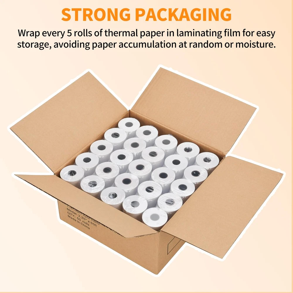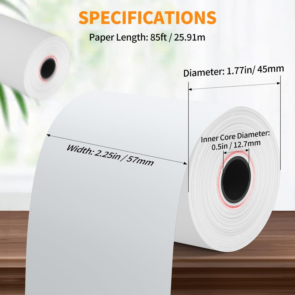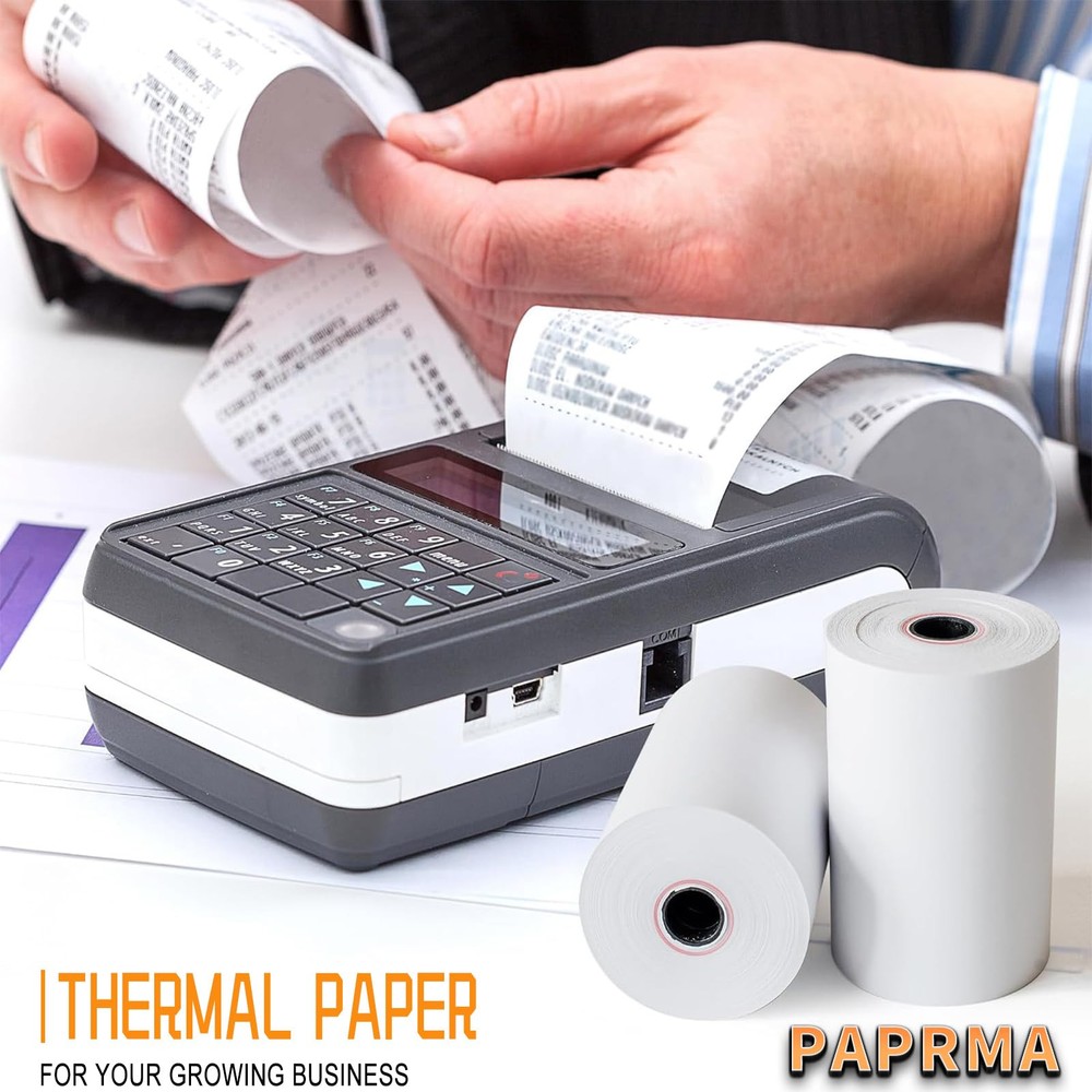 【Thermal Paper】2 1/4 inch width, 85 feet length. Credit card paper rolls thermal 2 1/4 x 50 rolls. 🔥【Easy to Use】Each cash register paper roll has a red warning line at the end, indicating that it needs to be replaced as soon as possible. No more paper falling off. Premium quality, print smoothly and clearly, no paper jams, no fading, 5+ year image life. 🔥【Sturdy Package】2 1/4'' x 85ft Thermal paper rolls are packed in Five-layers of corrugated cartons to prevent damage. Each receipt roll is wrapped in plastic wrap for easy storage, avoiding paper build-up and moisture. Neat and sturdy packaging ensures you receive your item in perfect condition. 🔥【Widely Used】Thermal receipt paper roll fits all 57mm credit card terminals, square terminal credit card machine, Clover mini, First Data FD50 FD55 FD130 T4220 T4230, Verifone VX510 VX570 VX610 VX810 VX820, Hypercom ICE Series T7P-T T4205/4210/4220/4230, Optimum Series M2100/4230/4240 T2100/4205/4210/4200, Casio CE-T100 PCR-T465 PCR-T2000 TE-2000/3000/4500/7000/8500, and etc. 🔥【】If you have any questions about our products, you can contact us at any time. We will provide friendly technical support, before and after-sales service to try the best to help every customer.