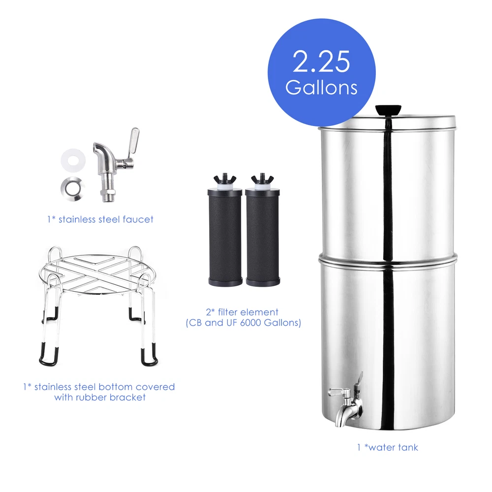 Store category Sign Up Now ! You may also like Product Description Bullet Points: Large Family Hydration Solution: With a 2.25-gallon capacity ensuring clean, well-maintained water, this stainless steel water filter delivers drinking water safety and cleaner, better-tasting water, ideal for family use Excellent Filtration Performance: Designed with excellent 304 stainless steel shell, our water filter combines fine craftsmanship and durability to improve the taste of your home drinking water, elevating it to new levels of flavor and refreshment Advanced Filtration: Our stainless steel water filter uses safe materials and an 8-stage composite filtration system to efficiently remove chlorine and reduce pollutants, providing clean and safe drinking water for you and your family Effortlessly Filter Water: Boasting an upper and lower container design with 2 filters, spigot, and a stand, this stainless steel water filter simplifies the filtration process and installation. No more struggling with complicated setup or difficult operating, this filter is designed to make your life easier Energy-saving Design: Our stainless steel water filter provides an energy-saving and cost-effective design that requires no electricity. With its suitability for both indoor and outdoor use, it is an economical choice for households and individuals looking to a sustainable solution to clean drinking water This stylish and durable stainless steel water filter pitcher has a 2.25-gallon capacity, making it perfect for large families. It can comprehensively reduce pollutants found in water, ensuring pure, clean drinking water. The energy-saving design simplifies the installation process, making it easy to set up and use. Specifications: Product Name: Stainless Steel Water Filter Material: Stainless Steel Applicable Temperature: 32°F -90°F/0-32.2°C Flows Rate: 4 Gallons/Hour Filtration Life: 6000 Gallons Capacity: 2.25 Gallons Packing List: 1x water tank 2x filter element (CB and UF 6000 Gallons) 1x stainless steel faucet 1x stainless steel bottom covered with rubber bracket Payment Delivery details Terms of sales About us Feedback & DSRs Payment Before you palce an order, please kindly make sure that you have a paypal account. We accept PAYPAL payment only. Payment should be completed within 2 days after auction closed, or unpaid dispute will be filed for an closing auction. An unpaid case will be filled after 4 days. Delivery details We ship to your eBay address. Each package will be shipped to US by UPS Regular Parcel with tracking number. Please check your shipping address carefully before checkout, it can't be changed if order completed. All items will be shipped within 1-2 business day upon receipt of payment.Orders placed on weekend will be shipped within 3 days. If you do not receive your item in 7-10 business days.please contact us immediately for further assistance. We will be responsible for any damages or losses incurred in the shipping process. About us We maintain high standards of excellence FIVE STAR and strive for 100% customer satisfaction! Positive Feedback is very important to us. We hope that you contact us immediately Before you give us neutral or negative feedback, so that we can satisfactorily address your concerns. We promise to offer the lowest price and high quality produce. Our working time: From Monday to Friday(9:30 am to 18:00pm), we don't working on holidays ,hope you can understand and know that , thank you. Please always talk to us via ebay Message. We appreciate your business and look forward to growing our e-Bay sales with satisfied customers. Feedback Contact us If you have any questions, please feel free to contact with us by ebay Message during our business hours ( 9:30a.m. to 5:30 p.m.), or email us through eBay, we will try our best to help you to resolve it. For any presale or after-sale questions,please do feel free to email us! Due to the time difference, each email will be replied within 1 working day,and weekend will be delayed a bit. Feedback