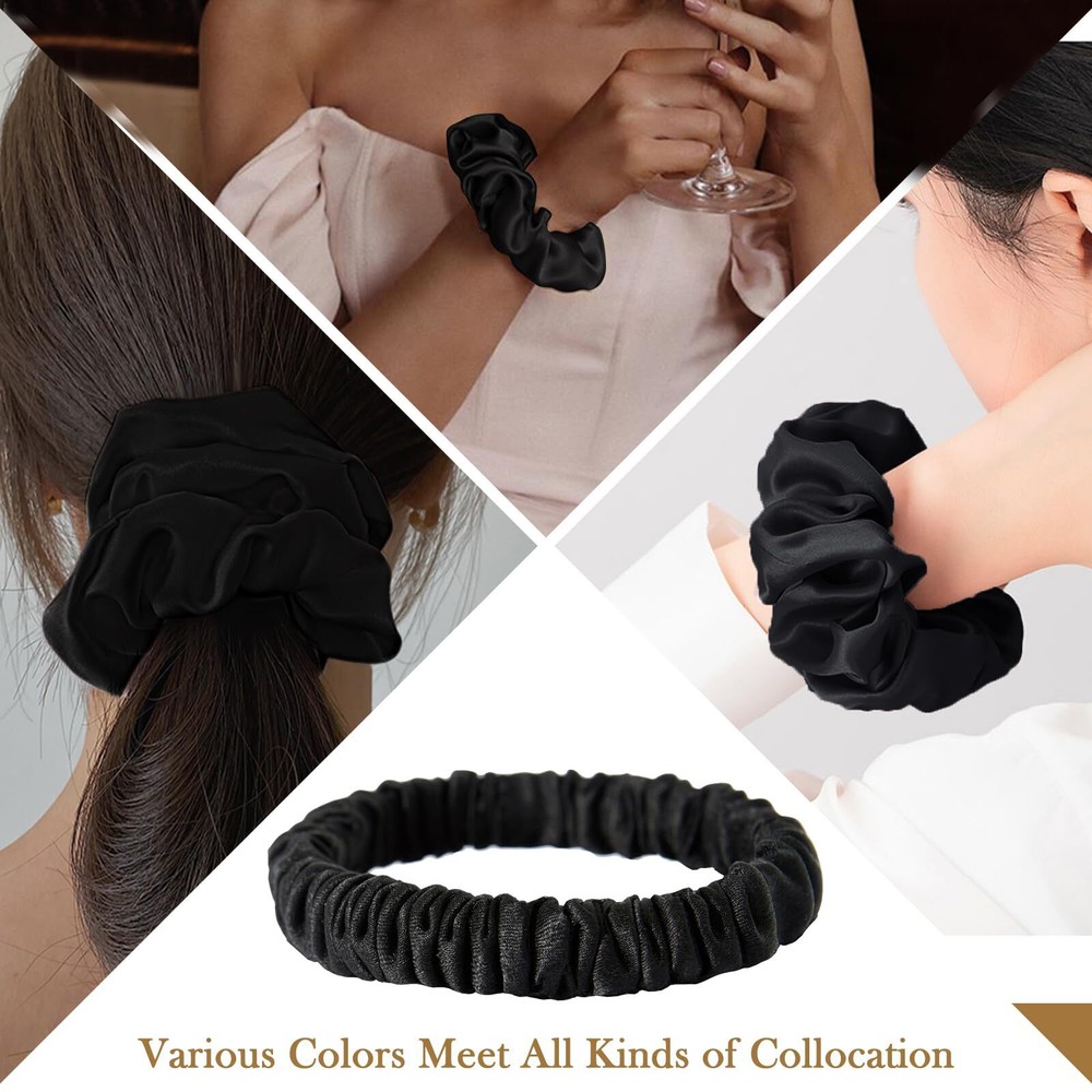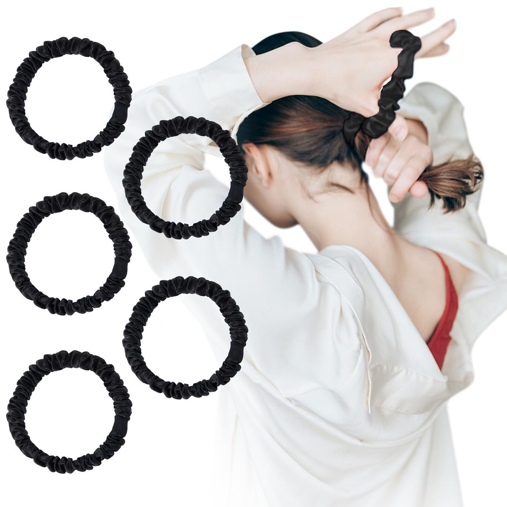 These silk scrunchies are a game-changer for my hair! Super soft, gentle, and keeps my hair tangle-free—no more breakage or painful marks. The elastic holds well without being too tight, and the quality feels luxurious. Perfect for all-day wear! Love having 5 in black—stylish and practical. A must-have for anyone who cares about hair health.