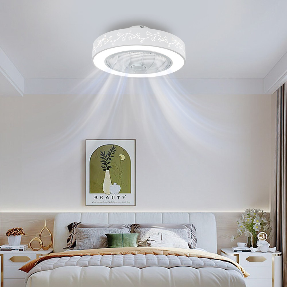 22" Ultra-thin LED Ceiling Fan Light Remote Control Flush Mount Ceiling Fan Lamp Description This ceiling fan light will bring a cool breeze and soft light to your home, making your room more cozy and warm. It comes with six wind speeds, which can bring you a comfortable and controllable wind. The infinitely dimmable function meets your different lighting needs. The remote and App control methods provide you with a high-quality and convenient life. Key Features Build to Last: Made of high-quality iron, ABS, and PVC materials with the matt paint process, this product is resistant to corrosion, rust, and abrasion and has a long service life. Stylish Appearance: The round lampshade with flower patterns brings this product a beautiful appearance, and such an eye-catching outlook will add a touch of elegance to your room and show your good taste to your guests. Dimmable Light: The product comes with three color temperature adjustments (3000K, 4200K, 6500K) and step-less control of the light brightness, which can create the atmosphere you need. Excellent Fan Performance: The product comes with an air guide wheel function to spread the wind evenly throughout the room. In addition, you can adjust the six wind speeds and the reversible function to meet your needs. Thoughtful Design: The 2-hour timer function allows you to fall asleep with a cool breeze. The memory function adds even more convenience by saving you the time of setting the ceiling fan light each time you turn it on. Smart Control: The product allows you to easily control and adjust the fan and light modes via remote control and APP, adding to your life extra convenience. High Safety: The fan blades are hidden inside a round cover, which can avoid accidents caused by getting caught in the blades, making it much safer than traditional fans. Easy to Clean: The smooth surface and simple structure allow you to remove the dust on the surface of this light with a towel. Ideal Gift: With practical function and a beautiful appearance, it can be an ideal housewarming gift for your friends, families, and colleagues. Details Copper Motor: The copper motor is sturdy and durable, and will provide the fan with strong power and a low noise(about 40db) during running. Rounded Edges: The burr-free edges can effectively protect your hands and skin from being scratched during installation or cleaning. Application It is suitable for rooms with 161.46-269ft² areas such as living rooms, bedrooms, kitchens, dining rooms, entrances, hallways, foyers, doorways, basements, restaurants, cafes, stores, children's rooms, and nurseries. Specifications Color: White Material: Iron, ABS, PVC Process: Matt Paint Motor Type: Copper Motor Mount Type: Ceiling Mounted Light Source: COB Voltage: 110V Efficiency: E Fan Speed Gears: 6 Time Setting: 2H Motor Power: 15W Motor Speed: 950rpm Noise: About 40dB Brightness Adjustable Range: 60LM Three Adjustable Color Temperature: 3000K, 4200K, 6500K Illumination Area: 15-25㎡/161.46-269ft² Suitable Room Height: 2.6m/8.53ft Battery Type: 2*AAA Batteries(Not Included) Remote Control Distance: 5-10m/16.4-32.8ft Product Size(D*H): 55*22cm/21.65*8.66inch Packaging Size: 52*52*25cm/20.47*20.47*9.84inch Gross Weight: 4kg/8.82lbs Net Weight: 3kg/6.61 Package Included 1*Ceiling Fan Light 1*Remote Control Other Accessories for Installation Notes Please check the size carefully before ordering. The remote control does not include batteries, so you need to prepare 2 AAA batteries yourself. For a safe and secure installation, please make sure that all wires are connected and all screws are tightened into the ceiling. When unpacking, be careful not to pull with the wires as a bad connection may result. Please do not turn on the power until fully assembled. Please conduct a power test before installation. We recommend installation by professionals. Please do not install it next to the air conditioner or heater, which will affect the service life of the product. Please wear electric insulation gloves (not included) and avoid scratching the surface of the product and the electric wire when installing. Please use this item within the applicable voltage range and clean it regularly. Please wipe with a soft cloth, it is not suitable to clean with cleaning agents. Please allow the slight color difference caused by the shooting light and 1-3cm error due to manual measurement, and make sure you do not mind before you order. Payment Delivery details Terms of sales About us Contact us Payment We accept ebay payment 。 Fees such as import duties, taxes are not included in the item price or shipping costs. These charges are the buyer's responsibility. Delivery details Shipping: 2-9 working days to: USA Terms of sales We maintain high standards of excellence and strive for hundred percent customer satisfaction. Feedback is very important to us. We hope that you contact us immediately before you give neutral or negative feedback, so that we can address your concerns. It is impossible to address issues if we do not know about them! About us Your satis faction is our ultimate goal. We work hard to earn your trust and future business. Our certified technicians have tested each item before shipping. The unit comes with 1 year limited warranty on all manufacturing defects. a) If you receive a defective item, you may return it or ask for a discount. Please contact us within 14 days after you receive the package. b) What you returned must be intact and in its original packaging as re? u. Customer is responsible for shipping costs of the returned item. c) We will cover the cost of shipping back t with the shipping rate indicated in the registration page. We will send you a new unit or refund the full payment you paid. Thank you. Contact us Business Hour Business Hour: Monday To Friday: 8:30 AM to 5:00 PM (Beijing China time) Due to time zones, our reply to your questions may not be immediately. But within above working time, we will reply your email within 24 ho