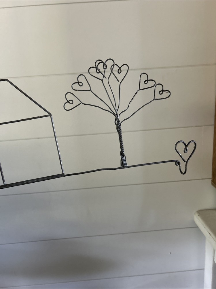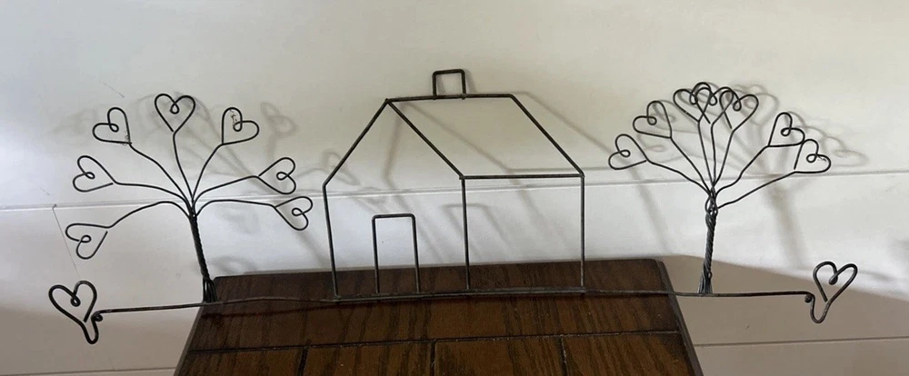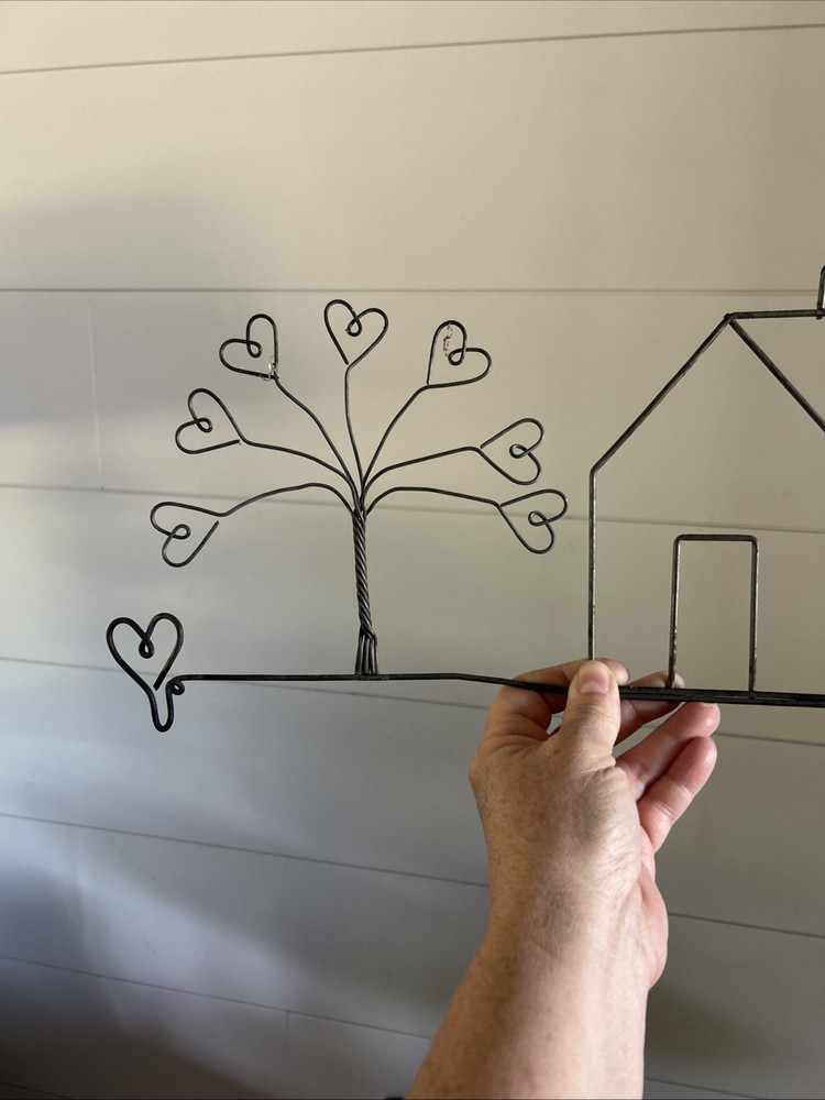 This 23.5" Wire Art Wall Decor features a black farmhouse style design with hearts and trees theme. Made of wire material, it is perfect for adding a decorative touch to any room. The wall-mounted piece can hold a dowel rod and stands at a height of 7 inches. Add a touch of artistry to your home with this unique and stylish wire art wall decor.
