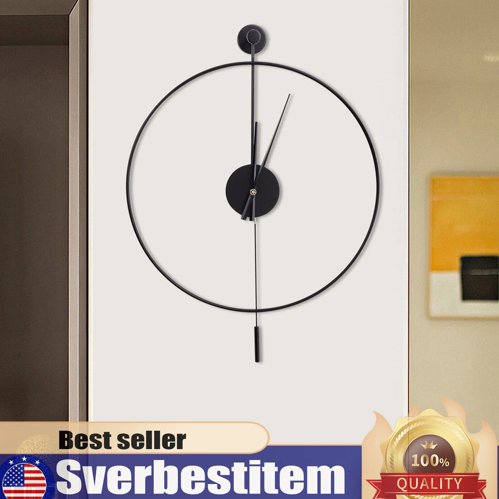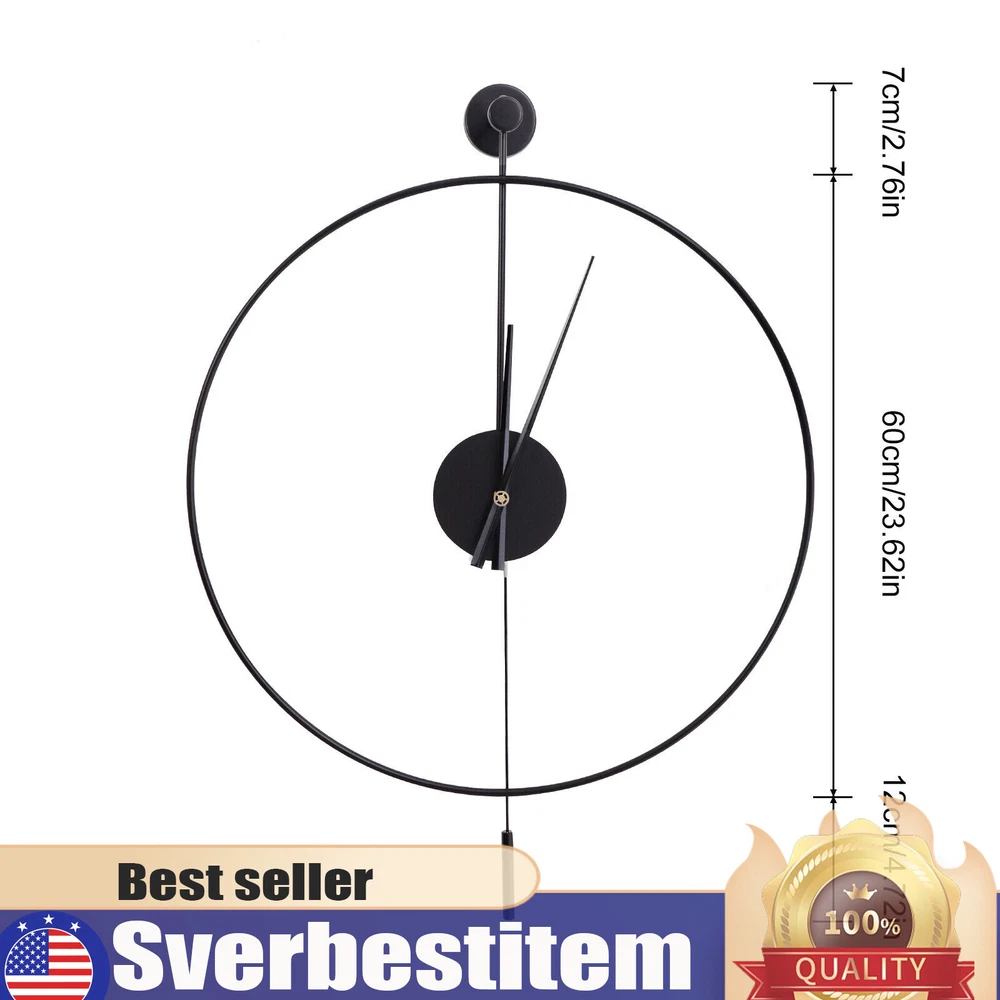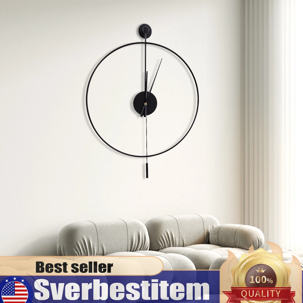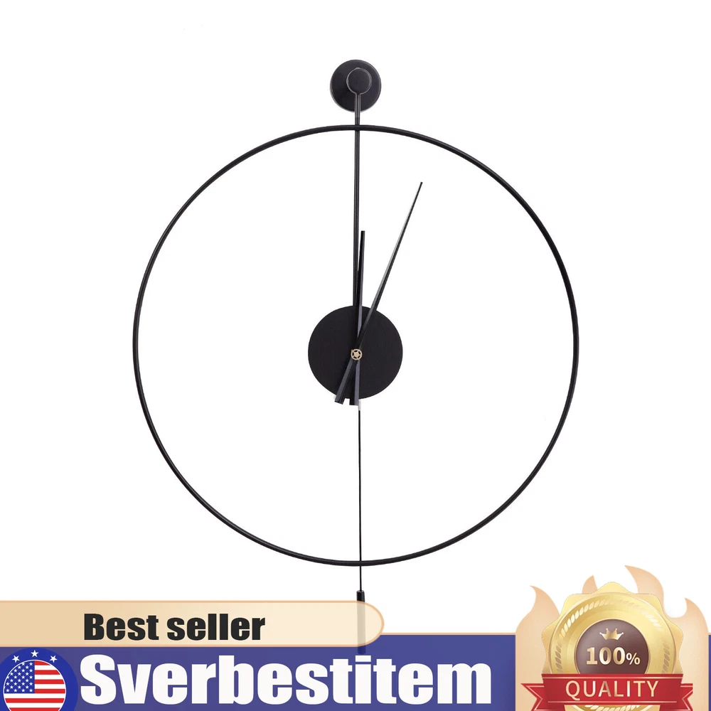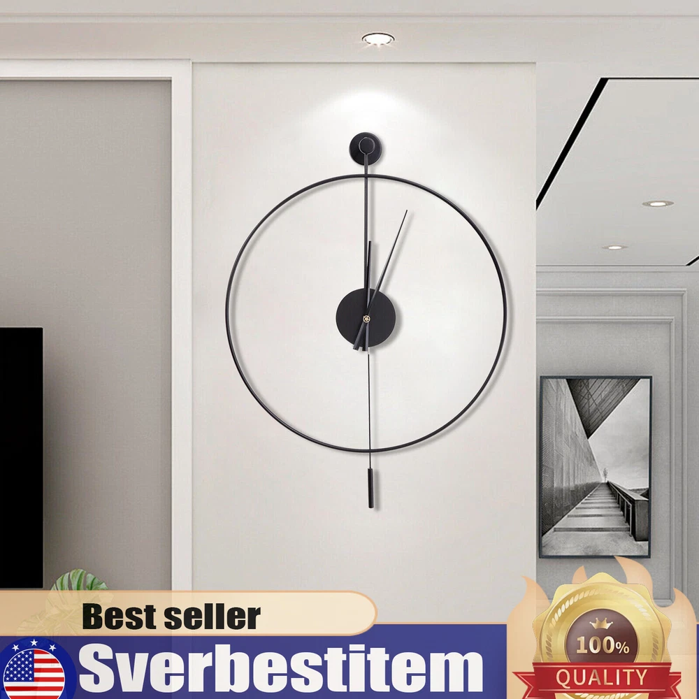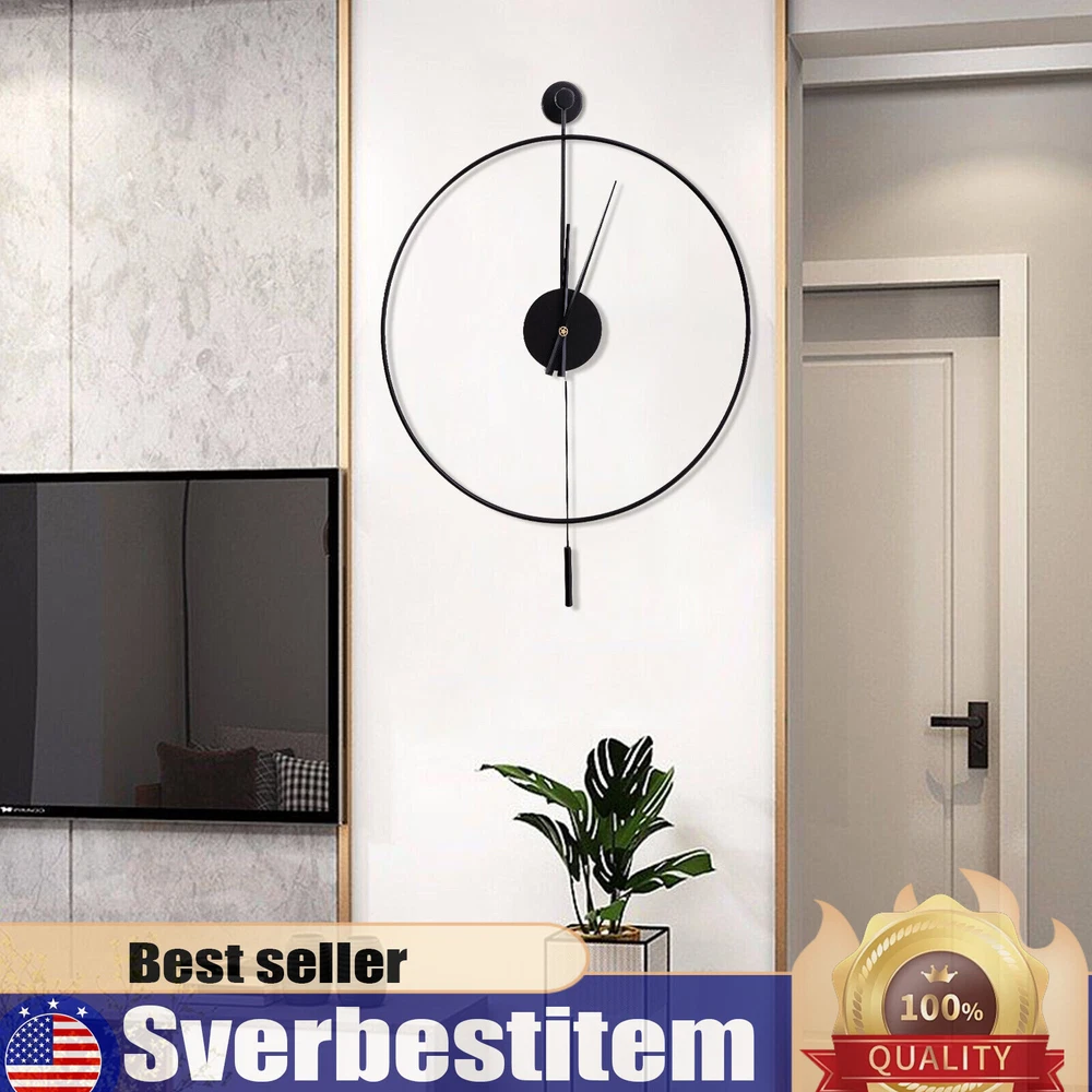 23.6'' Minimalist Wall Clock Round Home Clock Silent Large Modern Wall Art Decor Classical Large Decorative Wall Clock with Pendulum, Modern Non-Ticking Silent Metal Wall Clocks for Living Room, Bedroom, Study, Office, 23.6" (Black) Description Are you frustrated with the old wall clock at home that keeps ticking? Do you want a quiet, stylish, and durable wall clock? With its high-quality silent movement and metal hands, this wall clock allows you to enjoy every second of silent dreaming. If you are tired of boring walls or want to have more fun in life, then this unique clock will be your ideal choice! Application This wall clock is suitable for the living room, hallway, office, study, bedroom, dining room, hall, exhibition hall, and other occasions. It is also an ideal gift choice for your friends or your family. Installation 1. Determine the position of the non-marking nails. 2. Fix the non-marking nails with a hammer. 3. Align the hooks and hang the wall clock. 4. Complete the installation. Specification Material: Iron Pointer Material: Aluminum Color: Black Style: Modern Shape: Round Surface Treatment: Baking Paint Power Source: Battery Powered Number of Batteries Required: 1*AA Battery(Not Included) Mounting Type: Wall Mount Operation Mode: Silent Quartz Movement Base Diameter: 7cm/2.76in Dial Diameter: 60cm/23.6in Packing Size: 63*7.3*64cm/24.8*2.87*25.19in Net Weight: 1.2kg/2.64lbs Gross Weight: 1.4kg/3.08lbs Package Included 1* Wall Clock 1* Base 1* Pendulum 1* Non-marking Nail 2* Long Screws Key Features High-quality Materials: This wall clock is made of high-quality iron, which is wear-resistant and durable, ensuring a longer service life. Baking Paint Process: The metal surface is baked lacquered to give it a brilliant and colorful appearance and prevent it from fading. It is also anti-corrosive and rust-proof, prolonging its service life. Low Noise: The clock features a silent quartz movement that runs smoothly and without harsh ticking sounds. It will keep your family free from noise and ensure a good and comfortable night's sleep. Accurate Timekeeping: It is equipped with a high-quality silent quartz movement that runs steadily to guarantee accurate timekeeping, giving you a better user experience. Unique Design: The hollow design of this wall clock highlights a mysterious, elegant and minimalist style. This wall clock can match many modern style home decorations and it can add a distinctive touch to your home. Great Gift Choice : This exquisite wall clock is an ideal gift for parents, friends, teachers, leaders and relatives. It will be the most practical and memorable gift they will ever receive. Time Witness: The wall clock records every second of the warm moments you spend with your family. It is the witness of your good memories. Easy to Clean: It is finished with a baked-on lacquer which gives it a smooth, flat surface for easy cleaning. You can easily wipe off dust and stains with a damp rag. Easy to Install: There are reserved a hanging slot on the back of the base for easy installation. You only need a few simple steps to complete the installation. Excellent After-sales Service: We aim to provide quality products and services. If you have any problems, please feel free to contact us, and we will reply and solve the problem for you as soon as possible. Details Dial Without Numbers: The dial of this wall clock does not have numbers, making the wall clock more simple and generous overall. Metal Pointers: In contrast to plastic pointers, metal pointers are not only stylish and beautiful but also durable and resistant to breakage. Unique Pendulum: The pendulum design on the wall clock is a decorative element and also adds a touch of energy to a quiet space. Notes Please do not use too many alkaline power batteries, which affect the life of the movement and sometimes even the accuracy of the timekeeping. Please note that the package does not include a AA battery, so you need to purchase them separately. Please allow the slight color difference caused by the shooting light and 1-3 cm error due to manual measurement, and make sure you do not mind before ordering. Payment Delivery details Terms of sales About us Contact us Payment We accept ebay payment 。 Fees such as import duties, taxes are not included in the item price or shipping costs. These charges are the buyer's responsibility. Delivery details Shipping: 2-9 working days to: USA Terms of sales We maintain high standards of excellence and strive for hundred percent customer satisfaction. Feedback is very important to us. We hope that you contact us immediately before you give neutral or negative feedback, so that we can address your concerns. It is impossible to address issues if we do not know about them! About us Your satis faction is our ultimate goal. We work hard to earn your trust and future business. Our certified technicians have tested each item before shipping. The unit comes with 1 year limited warranty on all manufacturing defects. a) If you receive a defective item, you may return it or ask for a discount. Please contact us within 14 days after you receive the package. b) What you returned must be intact and in its original packaging as re? u. Customer is responsible for shipping costs of the returned item. c) We will cover the cost of shipping back t with the shipping rate indicated in the registration page. We will send you a new unit or refund the full payment you paid. Thank you. Contact us Business Hour Business Hour: Monday To Friday: 8:30 AM to 5:00 PM (Beijing China time) Due to time zones, our reply to your questions may not be immediately. But within above working time, we will reply your email within 24 hours. If it's non-workdays, please kindly be patient and wait till Monday. Please contact us with ebay message. Please feel free to contact us if you have any questions. Monday To Friday: 8:30 AM to 5:00 PM (Beijing China time) Due to time zones, our reply to your questions may not be imme
