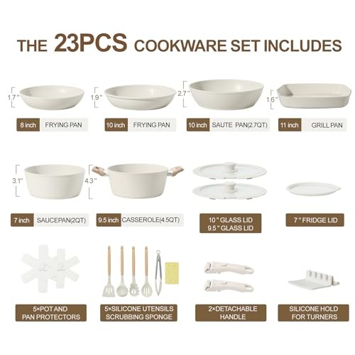 Return Policy Fast Delivery Trusted seller 23PCS Ceramic Nonstick Cookware Set, Nonstick Detachable Handle Ceramic Cookware, Induction Kitchen Cooking Set with Removable Handle,include Frying Pans & Saucepans Oven Safe, Stackable Set Product Description 1. High-Performance Nonstick Coating: Non-stick performance, PFOS/PFOA free, our cookware ensures your daily cooking is always safer and healthier. 2. Secure Removable Handle: Support up to 22 pounds, the handle is heavy duty tested, fit for removable handle set pots and pans, no need to worry about wobbly handles. 3. Easy Cleaning & Wide Compatibility: Just a cloth and rinse it with water, less water wasted.recommend hand wash,it is really easy to clean. with extended bottom design. Our nonstick cookware can work on all cooktops, including induction. 4. Stackable and Compact: Save up to 75% more space with stackable pots and pans set and detachable handles, allowing for storage in cabinets or RVs. 5. 23PCS Complete Set: 8 Inch 10 Inch Frying Pan ,10.5 Inch Grill Pan , 1.6” Qt 7” SaucePan with Fridge Lid, 10” Saute Pan with Lid, 4.3Qt 9.5” Casserole with Lid, 2 x Detachable Handle , 5 x Pot and Pan Protectors,4 x Silicone Turner and Soup Ladle,1x Tongs, 1 x silicone holder for turners,1 x scrubbing sponge Shipping Returns Payment Shipping Shipping is FREE to all addresses other than APO/PO boxes in the lower 48 states. All our stock ships from US-based warehouses. Shipped via USPS or UPS (depending on location and package weight) Unless stated otherwise, all orders will ship within 24-72 hours of your payment being processed. Check our feedback to see the great reviews of FAST shipping we offer. Returns Seller does not accept returns Payment We currently accept payment via eBay managed payments only. Once payment is cleared, we will dispatch your shipment within 1-3 business days. Please refer to the "Shipping" tab for more information regarding shipping speed to your destination.