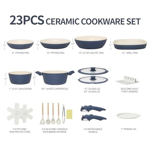 Return Policy Fast Delivery Trusted seller 23pcs Ceramic Pots and Pans Set, Nonstick Detachable Handle Cookware, Induction Kitchen Cooking Set with Removable Handle,include Frying Pans & Saucepans Oven Safe(Blue) Product Description 1. High-Performance Nonstick Coating: Non-stick performance, PFOS/PFOA free, our cookware ensures your daily cooking is always safer and healthier. 2. Secure Removable Handle: Support up to 22 pounds, the handle is heavy duty tested, fit for removable handle set pots and pans, no need to worry about wobbly handles. 3. Easy Cleaning & Wide Compatibility: Just a cloth and rinse it with water, less water wasted.recommend hand wash,it is really easy to clean. with extended bottom design. Our nonstick cookware can work on all cooktops, including induction. 4. Stackable and Compact: Save up to 75% more space with stackable pots and pans set and detachable handles, allowing for storage in cabinets or RVs. 5. 23PCS Complete Set: 8 Inch 10 Inch Frying Pan, 11 Inch Grill Pan , 1.6” Qt 7” SaucePan with Fridge Lid, 10” Saute Pan with Lid, 4.3Qt 9.5” Casserole with Lid, 2 x Detachable Handle , 5 x Pot and Pan Protectors,4 x Silicone Turner and Soup Ladle,1x Tongs, 1 x silicone holder for turners,1 x scrubbing sponge Shipping Returns Payment Shipping Shipping is FREE to all addresses other than APO/PO boxes in the lower 48 states. All our stock ships from US-based warehouses. Shipped via USPS or UPS (depending on location and package weight) Unless stated otherwise, all orders will ship within 24-72 hours of your payment being processed. Check our feedback to see the great reviews of FAST shipping we offer. Returns Seller does not accept returns Payment We currently accept payment via eBay managed payments only. Once payment is cleared, we will dispatch your shipment within 1-3 business days. Please refer to the "Shipping" tab for more information regarding shipping speed to your destination.