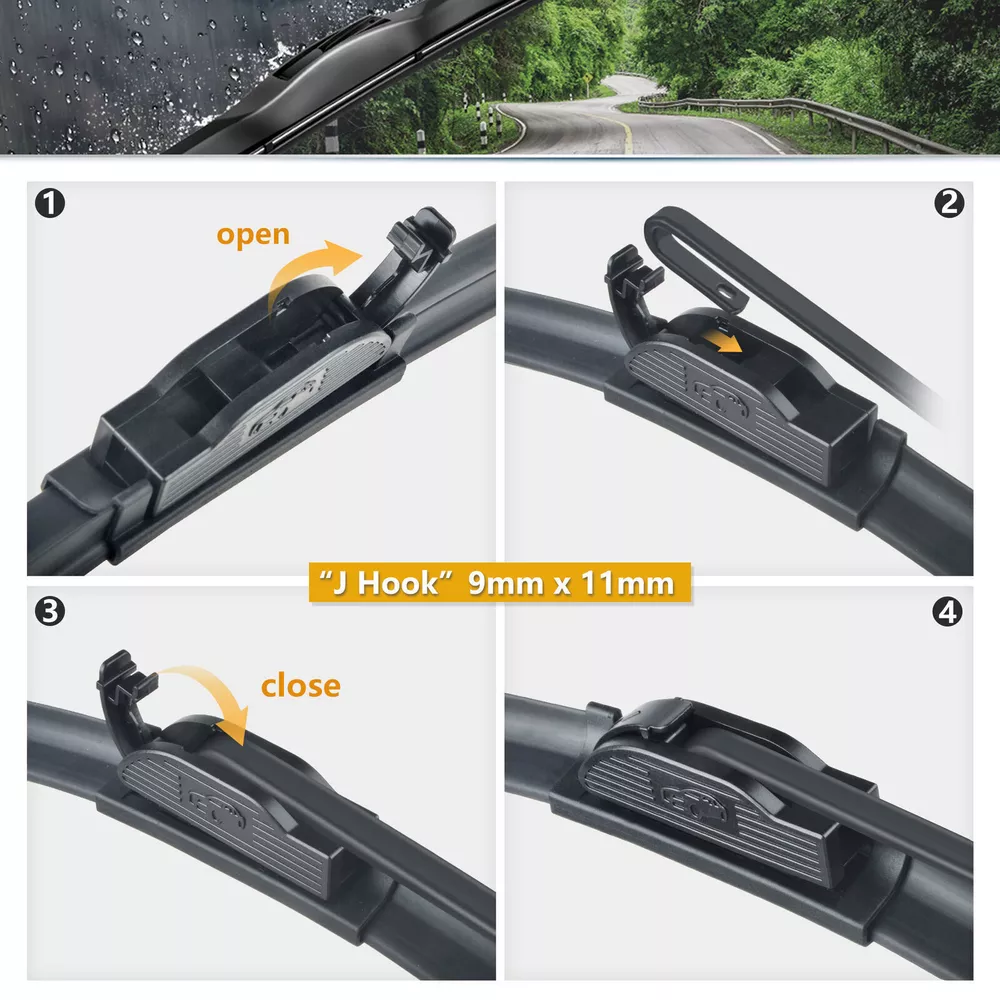 These wiper blades are fantastic! The aerodynamic design keeps them firmly in place even at high speeds, ensuring a streak-free wipe every time. The perfect curvature reduces wind resistance, and the flat, wide structure provides excellent coverage. Installation was a breeze, and they fit perfectly. Great quality at a competitive price—highly recommend for all-season use!