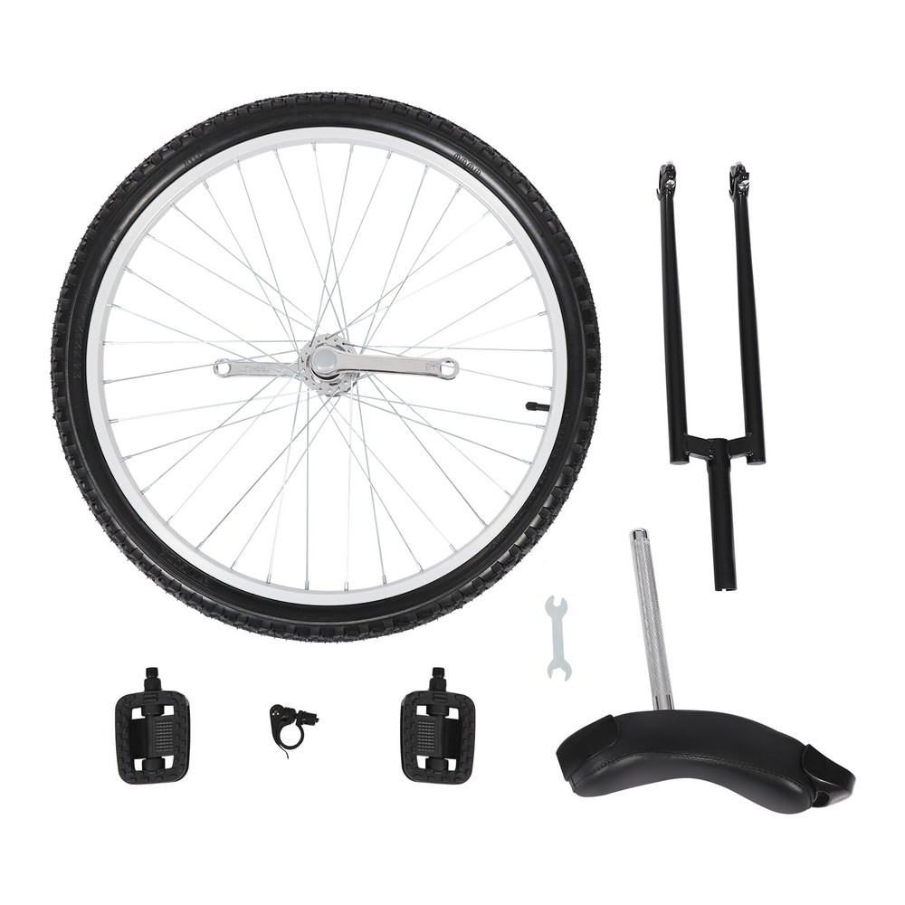 24 In Unicycle Adjustable Height Ride Bike Unisex Adult Steel Frame Bicycle Description This 24-inch unicycle will provide you with a unique fitness experience, enhancing your physical fitness while improving your riding balance. The grips on the front and back of the seat and the lightweight body make it easy to carry, allowing you to maneuver through crowded city streets or on park trails, bringing you a different travel experience. It is not only a transportation tool but also a partner to show your own style and challenging spirit. Key Features Strong and Durable: The high-quality plastic, manganese steel, and aluminum alloy are corrosion-resistant , deformation-resistant , and rust-resistant , ensuring a stable and reliable riding experience. Adjustable Design: The clamp on the seat post allows you to easily adjust the product's height from 36 to 40in, making this product suitable for people of different heights (more than 5.74ft). Stable Riding: The tire with protruding points and non-slip pedals can enhance friction, effectively increasing stability and safety while riding. Strong Load Bearing: The aluminum alloy rim and manganese steel frame provide the product with a sturdy structure to withstand 154 lbs so that you can use it with more confidence. Comfortable Riding Experience: The soft seat cushion with a curved shape adopts an ergonomic design to fit your buttocks and bring you a comfortable riding experience. Thoughtful Design: You can grab the handles at the front and rear of the seat to ensure good stability during the riding process. Clean with Ease: Its smooth surface and simple structure allow you to easily clean the product with a damp cloth (not included). Keep Health: Practicing riding the unicycle will give you a stronger workout, improve your feeling of balance, promote cerebellar development, drive brain development, enhance cardiopulmonary circulation, and keep you fit. Ideal Gift: Its stylish appearance and practical function make it an ideal birthday and Christmas gift for your friends, families, and colleagues. Guaranteed Customer Service: We aim to provide quality products and services. If you have problems, please feel free to contact us. We will reply and solve the problem for you as soon as possible. Details Knurled Seatpost: The seatpost features spiral knurling technology, which prevents the seatpost from rotating erratically and provides excellent anti-slip performance. Bur-free Edges: They are smooth to the touch and can protect your hands from getting scratched. Application It is suitable for office workers, students, cycling enthusiasts, and other people for daily fitness exercise, cycling, balance training, talent performance, etc. Specification Color: Black Material: Manganese Steel, Aluminum Alloy, Plastic, Rubber Process: Painting Saddle Length: 23cm/9.06in Wheel Diameter: 60.96cm /24in Maximum Load Bearing Capacity: 70kg/154lbs Suitable Height: > 1.75m/5.74ft Height from Saddle to Pedals: 43.18-83.82cm/17-33in Product Height: 91.44-101.6cm/36-40in Seatpost Length: About 23cm/9.06in Suitable Age: 7-60 Years Old Mount Type: Free Standing Assembly Required: Yes Package Size: 57*18*60cm/22.44*7.09*23.62in Gross Weight: 5.4kg/11.9lbs Package Included 1* Unicycle Frame 1* Unicycle Saddle 1* Wheel 2* Pedals Other Accessories for Assembly Notes Please check the size carefully before ordering. The pedal must be tightened before riding. Please note that your legs should be almost straight when you sit on the unicycle and place one foot on the lowest position of the pedals. Please insert the frame to the appropriate depth for your height and then tighten it to ensure a safe ride. It is recommended to wear a helmet, wrist guards, and elbow pads (not included) to ensure safe riding. For safety reasons, novice riders should ride under the guidance or accompaniment of an instructor. It is better to choose an open, grassy, fenced area with firm and level dirt for training. Please allow the slight color difference caused by the shooting light and 1-3cm error due to manual measurement, and make sure you do not mind before ordering. Payment Delivery details Terms of sales About us Contact us Payment We accept ebay payment 。 Fees such as import duties, taxes are not included in the item price or shipping costs. These charges are the buyer's responsibility. Delivery details Shipping: 2-9 working days to: USA Terms of sales We maintain high standards of excellence and strive for hundred percent customer satisfaction. Feedback is very important to us. We hope that you contact us immediately before you give neutral or negative feedback, so that we can address your concerns. It is impossible to address issues if we do not know about them! About us Your satis faction is our ultimate goal. We work hard to earn your trust and future business. Our certified technicians have tested each item before shipping. The unit comes with 1 year limited warranty on all manufacturing defects. a) If you receive a defective item, you may return it or ask for a discount. Please contact us within 14 days after you receive the package. b) What you returned must be intact and in its original packaging as re? u. Customer is responsible for shipping costs of the returned item. c) We will cover the cost of shipping back t with the shipping rate indicated in the registration page. We will send you a new unit or refund the full payment you paid. Thank you. Contact us Business Hour Business Hour: Monday To Friday: 8:30 AM to 5:00 PM (Beijing China time) Due to time zones, our reply to your questions may not be immediately. But within above working time, we will reply your email within 24 hours. If it's non-workdays, please kindly be patient and wait till Monday. Please contact us with ebay message. Please feel free to contact us if you have any questions. Monday To Friday: 8:30 AM to 5:00 PM (Beijing China time) Due to time zones, our reply to your questions may not be immediately. But within abo