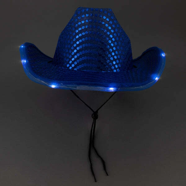 Party Glowz Blue Cowgirl Light-Up Cowboy Hat - 3 Mode LED Western Hat Premium Hats - Same Day Free Shipping Light up your next party or event with the Party Glowz Blue Cowgirl Light-Up Cowboy Hat! Featuring vibrant blue LED lights and 3 different modes, this fun and stylish hat is perfect for any western-themed occasion or night out. Comfortable and eye-catching, it’s a must-have accessory for cowgirls who want to shine! Add a fun and vibrant twist to your outfit with this dazzling Pink LED Flashing Cowboy Hat! Designed for the life of the party, this hat features a stylish color adorned with sparkling sequins and illuminated with bright, white LEDs. Whether you're dressing up for Halloween, a country-themed party, or any celebration that needs some extra flair, this cowgirl hat is sure to grab attention and light up the room. With its easy-to-use LED light feature, you'll stand out in the dark, creating a fun, eye-catching glow wherever you go. Perfect for all ages and occasions, it's a must-have accessory to bring your cowgirl or cowboy costume to the next level! Key Features: Vibrant Color: Bold and fun design that’s sure to make you the center of attention. Sequin Detailing: Sparkling sequins add an extra touch of glam for a dazzling look. White LED Lights: Integrated white LED lights flash to create a mesmerizing glow effect, perfect for nighttime wear. Battery Powered: Powered by easy-to-replace batteries (included), no cords or wires required for hassle-free wear. Perfect for All Occasions: Ideal for Halloween, costume parties, country fairs, music festivals, and more. Adjustable Fit: One-size-fits-most with an adjustable inner band for comfort and secure fit. Durable & Lightweight: Made with lightweight materials for easy all-night wear and durability. Why You’ll Love It: Light up your Halloween costume or party look with this sparkling cowgirl hat. Show off your fun and festive side with the LED flashing feature. A fantastic gift for party lovers, country music fans, or anyone who loves a good costume accessory. Stand out at concerts, festivals, or themed parties with this attention-grabbing headpiece. This Blue LED Flashing Cowboy Hat is the ultimate accessory to add a little extra sparkle to your event. Get yours today and shine bright wherever you go! Product Specification Product Name LED Light Up Flashing Sequin Blue Cowboy Hat - Pack of 24 Hats SKU Party Glowz-230003756810-Pack-Of-24 Brand Party Glowz Product Category BULK COWBOY HATS, GREEN LED LIGHT UP COWBOY HATS, IREDESCENT SPACE METALLIC COWBOY HATS, LED LIGHT UP FASHION & COSTUME ACCESSORIES, LED LIGHT UP HATS PARTY COWBOY HATS, St. Patrick's Day Party Supplies & Decorations Package Description 24 Hats Per Pack Color Blue