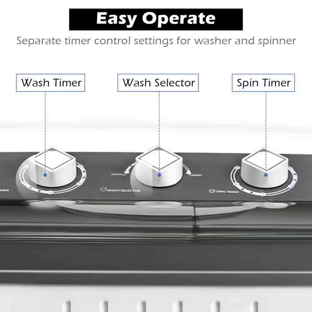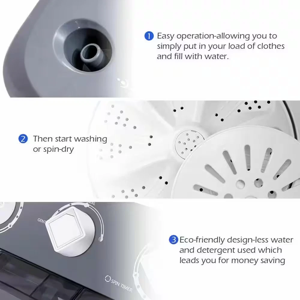 Fast Shipping On All Items 30 Days Money Guarantee Customer Support Excellent Service 100% Satisfaction Satisfaction Guaranteed 2.4 Cu. Ft. Portable Top Load Washing Machine Compact Twin Tub 20 Lbs. Capacity Washer Spinner in Grey Specification Agitator/Impeller Type Agitator Amperage (A) 1.2 A Appliance Category Washer Appliance Series Not Applicable Appliance Type Washer & Dryer Combo Color/Finish Grey Color/Finish Family Gray Control Type Electronic Door Material ABS Plastic Energy Consumption (kWh/year) 0.3 Energy Efficiency Tier Rating Not CEE rated Hardware Color/Finish Black Hardware Color/Finish Family Black Included No Additional Items Included Maximum Spin Speed (RPM) 1300 Number of Rinse Cycles 1 Number of Rinse Temperatures 54 Number of Wash Cycles 1 Number of Wash Speeds 3 Number of Wash Temperatures 54 Product Weight (lb) 29.3 lb Returnable Non-Returnable Steam Function No Steam Voltage (volts) 120 Wash Cycles Normal Washer Dispensers Not Available Washer Features No Additional Features Washer Tub/Drum Material Plastic Drum Certifications and Listings UL Certified Manufacturer Warranty 30days Capacity - Washer (cu ft) 1.6 Height With Lid Open 90 Degrees (In) 41 Product Depth (in) 15 in Product Height (in) 28.5 in Product Width (in) 25 in 25.0 inches x 15.0 inches x 28.5 inches. Weight: 29.3 lb Item Description Features a weight capacity of 12 pounds per wash Made from ABS and PE for prolonged use Includes handles on both sides to enable easy portability Still frustrated with so much laundry to do each day. Our mini washing machine will put an end to it. Our portable and versatile twin tub washing machine is ideal for caravans, student flats and small accommodation where space is limited. 2-tubs, one for washing and the other for spin drying, can fit well in your daily clothes washing. Our washing machine will be your great helper in your busy life. About us We offer the best prices around on high quality products. Our E-store includes media such as books, movies, music and games while offering electronics, toys, sporting apparel, clothing, tools, general home, garden items and more. Shipping We are always working hard to ensure your package arrives as soon as possible. Please understand that some factors like weather, high postal traffic, and the performance of shipping companies are outside of our control. We offer free shipping to the lower 48 states and ship within 2-3 business days of payment, usually sooner. We do not accept P.O. Boxes. Please provide a physical address. For shipping outside of the continental USA, we only use eBay's Global Shipping Program.The item is shipped to KY and then sent to the rest of the world. International customers are responsible for all duties and taxes. Continue to check out to calculate costs for shipping the item to your country. Messages regarding eBay's Global Shipping Program MUST be directed at eBay EXCLUSIVELY. Returns We offer a 30-Day Return Policy on items in which you are not completely satisfied with. You have the option of a full-refund or an exchange of the item. No returns are available on items shipped outside of the USA Satisfaction We try over very best to make sure every customer is completely satisfied. If there's a problem, message us! We're happy to help. Payment Options Shop With Confidence