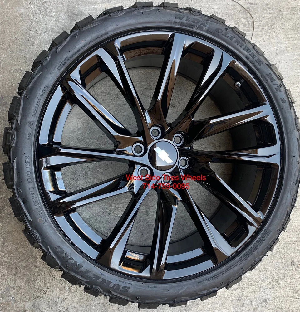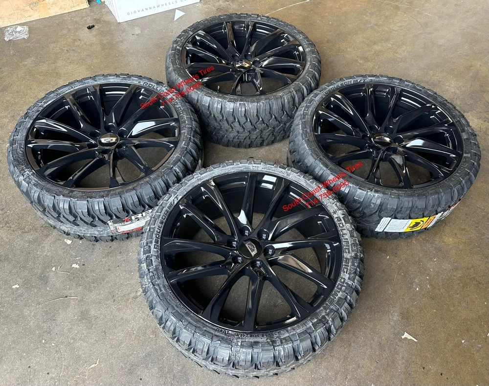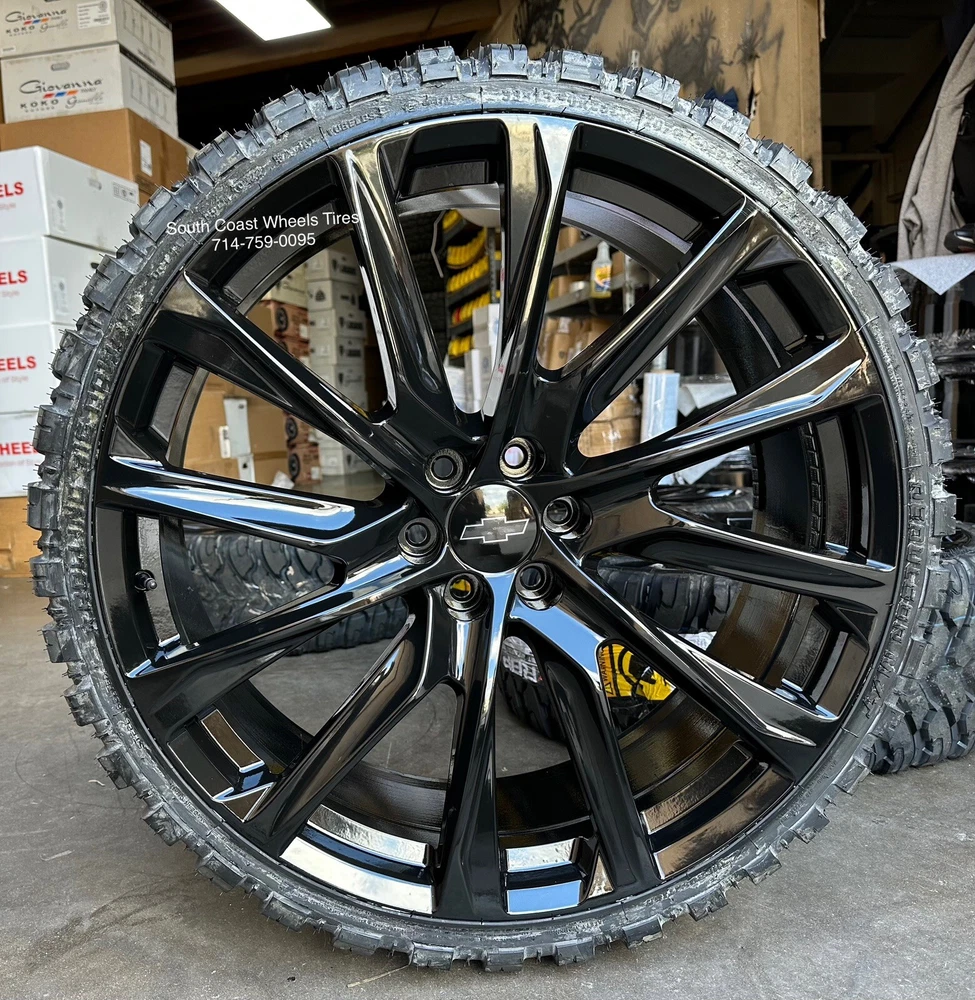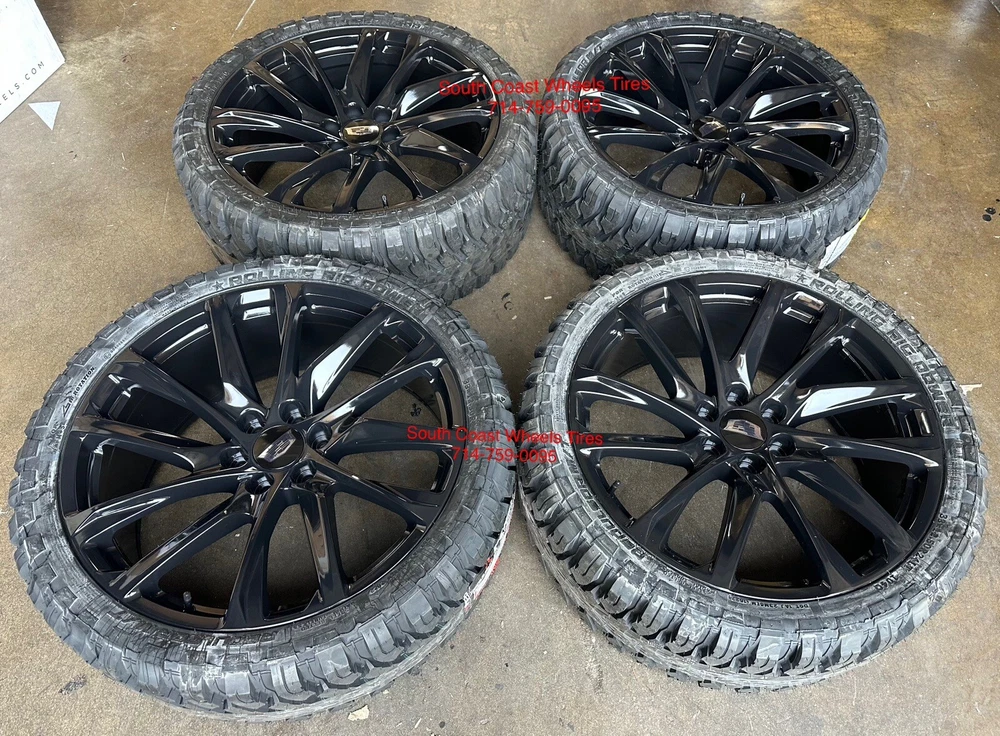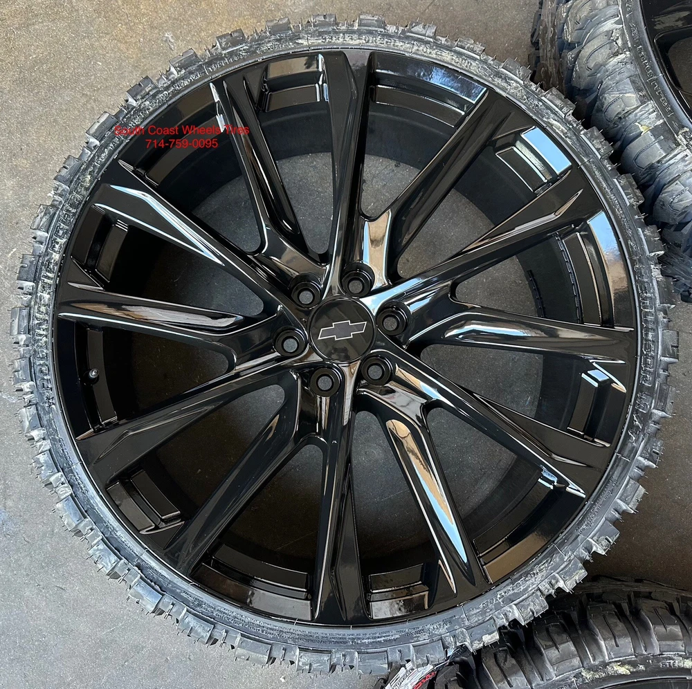 Your SATISFACTION Our PRIORITY! Feel Free to Contact us 714 - 759 - 0095 This listing is for… 4 WHEELS 24X10 R1193 GLOSS BLACK (ESCALADE PLATINUM) 6x139.7 +25 78.1 & 4 TIRES 33X12.50R24 RBP REPULSOR MUD MT Tire FREE Set of Lug nuts FREE Mounting & Balancing 4 TPMS SENSORS CAN BE ADD FOR $120/- MORE This complete set of wheels and tires are BRAND NEW , Not blem and have never been mounted. Please check fitment before you buy it or bid on it. TIRE SIZE & BRAND OPTIONS Lexani LX-Thirty or Lexani LX-Nine or Lionhart LH-TEN or Achillies Desert Hawk UHP All season or Forceland or Fullway Tires Depends on Availability, Email us for quote if interested in any different tire brand such as Nexen, Pirelli, Falken etc. FITMENT GUIDE Will fit on 6Lug GMC Sierra, Yukon, Denali, Chevy Cheverlet Silverado Tahoe Avalanche, Suburban, Cadillac Escalade, But Your vehicle(Year, Make and Model) information is essential information to ensure that you are purchasing the correct wheel and/or tire Package from us. Without providing this information or Confirming this information, you as the buyer assumes any responsibility for incorrect fitment. PAYMENT OPTIONS Currently we are accepting all major credit cards and PayPal as a form of payment SHIPPING POLICY We ship within the 48 contiguous states, Please email us for discounted shipping quote for Alaska, Hawaii, Canada, Germany, Italy or Australia. We are unable to ship to P.O. Box or any APO or military address, We are ONLY able to ship to the confirmed address registered with PayPal. APPROXIMATE DELIVERY TIME We have these wheels and tires in stock and ready to be shipped out within one business day, usually it takes 2 to 6 business days in transit time... CONTACT US If you have any questions, feel free to call us at 714 - 759 - 0095 or Email us @ Ebay THANK YOU FOR VISITING US!