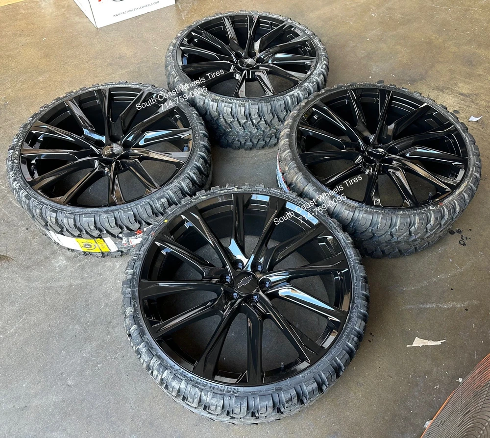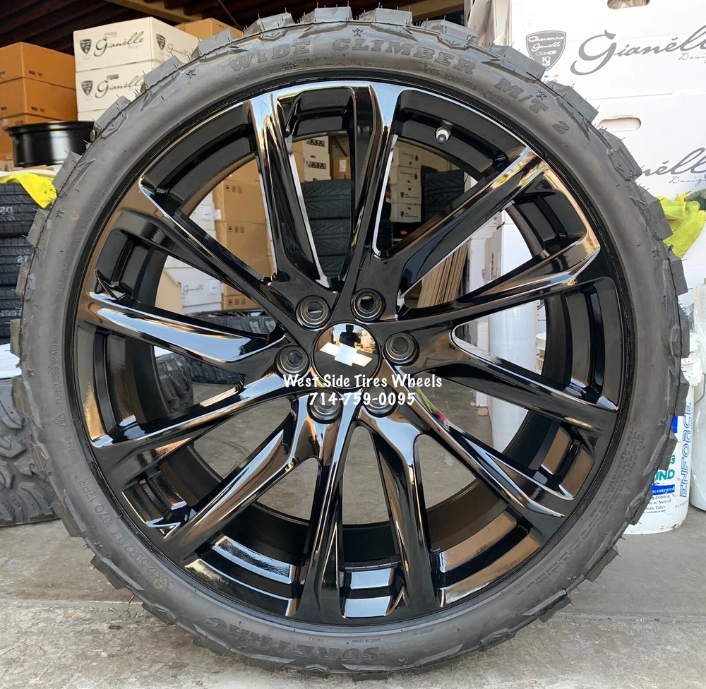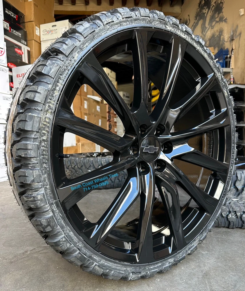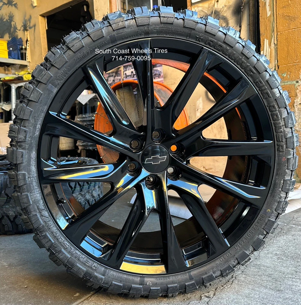 Your SATISFACTION Our PRIORITY! Feel Free to Contact us 714 - 759 - 0095 This listing is for… 4 WHEELS 24X10 R1193 GLOSS BLACK (ESCALADE PLATINUM) 6x139.7 +25 78.1 & 4 TIRES 33X12.50R24 RBP REPULSOR MUD MT Tire FREE Set of Lug nuts FREE Mounting & Balancing 4 TPMS SENSORS CAN BE ADD FOR $120/- MORE This complete set of wheels and tires are BRAND NEW , Not blem and have never been mounted. Please check fitment before you buy it or bid on it. TIRE SIZE & BRAND OPTIONS Lexani LX-Thirty or Lexani LX-Nine or Lionhart LH-TEN or Achillies Desert Hawk UHP All season or Forceland or Fullway Tires Depends on Availability, Email us for quote if interested in any different tire brand such as Nexen, Pirelli, Falken etc. FITMENT GUIDE Will fit on 6Lug GMC Sierra, Yukon, Denali, Chevy Cheverlet Silverado Tahoe Avalanche, Suburban, Cadillac Escalade, But Your vehicle(Year, Make and Model) information is essential information to ensure that you are purchasing the correct wheel and/or tire Package from us. Without providing this information or Confirming this information, you as the buyer assumes any responsibility for incorrect fitment. PAYMENT OPTIONS Currently we are accepting all major credit cards and PayPal as a form of payment SHIPPING POLICY We ship within the 48 contiguous states, Please email us for discounted shipping quote for Alaska, Hawaii, Canada, Germany, Italy or Australia. We are unable to ship to P.O. Box or any APO or military address, We are ONLY able to ship to the confirmed address registered with PayPal. APPROXIMATE DELIVERY TIME We have these wheels and tires in stock and ready to be shipped out within one business day, usually it takes 2 to 6 business days in transit time... CONTACT US If you have any questions, feel free to call us at 714 - 759 - 0095 or Email us @ Ebay THANK YOU FOR VISITING US!