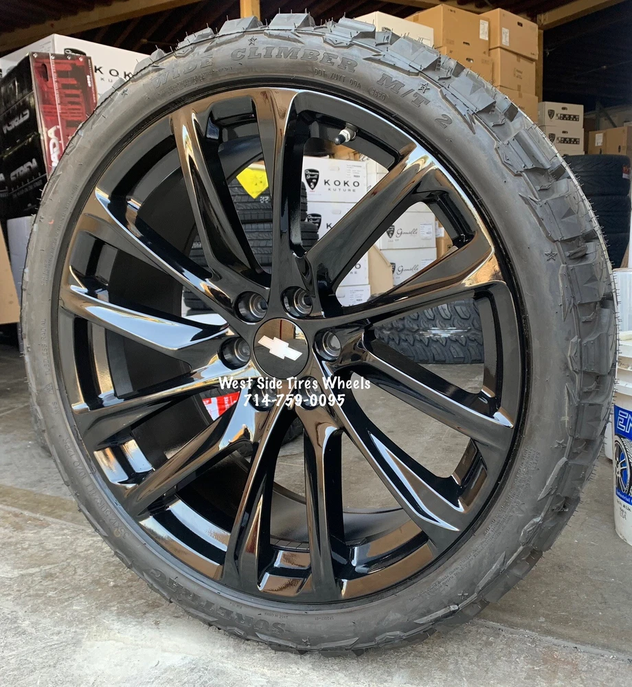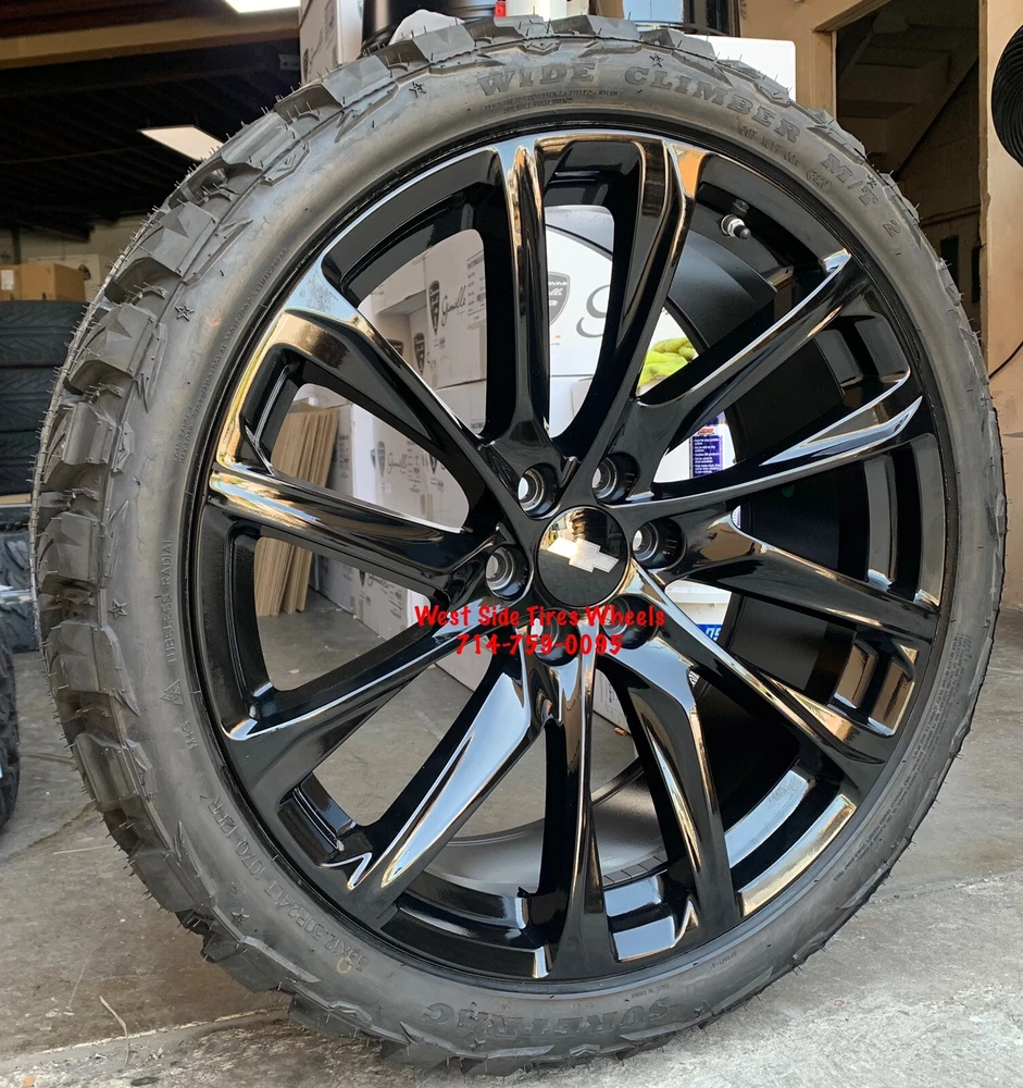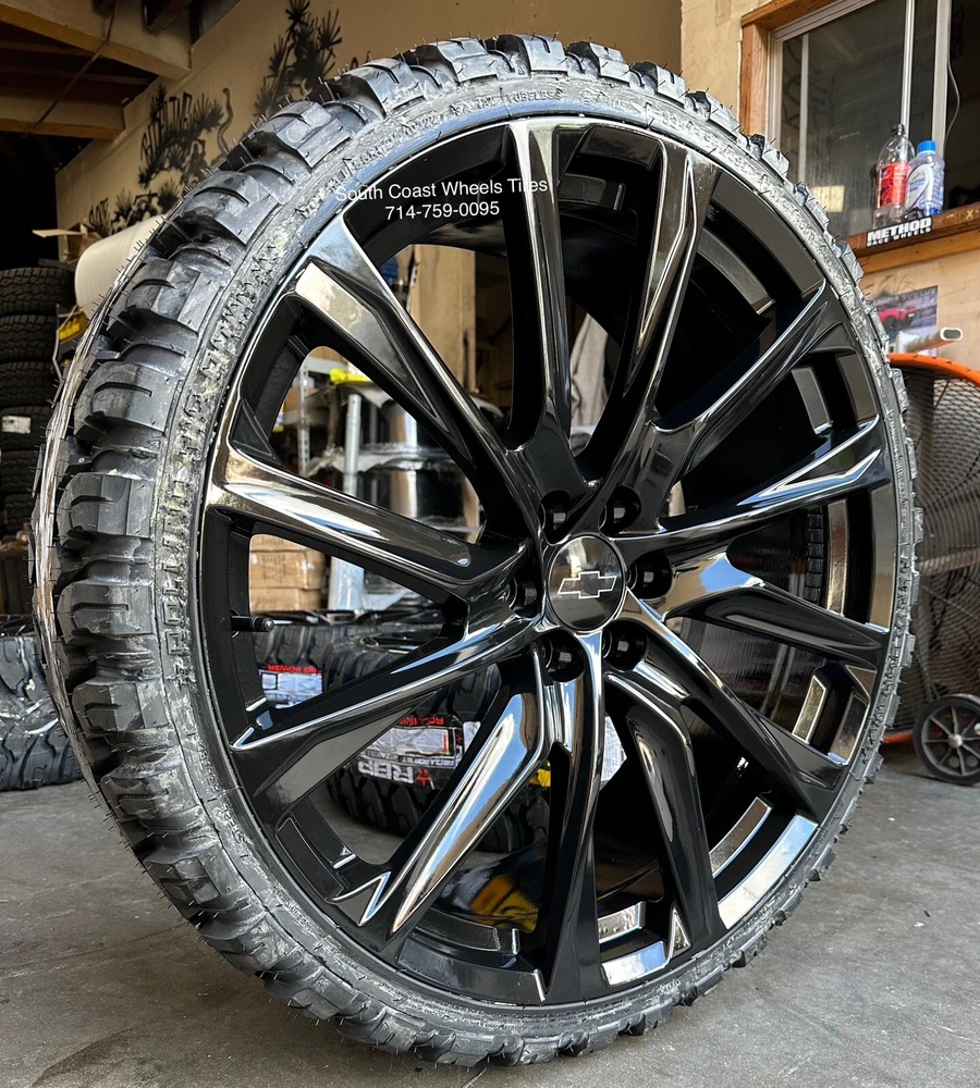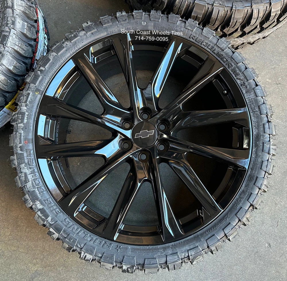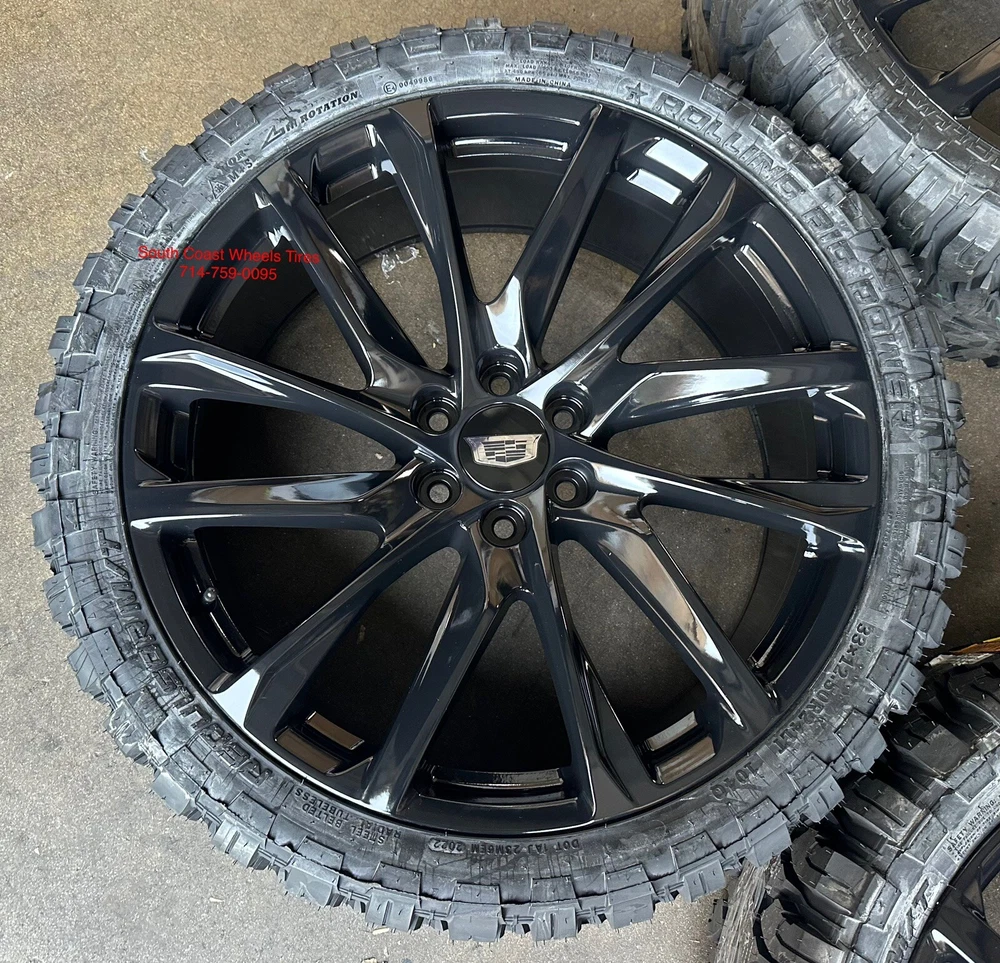 Your SATISFACTION Our PRIORITY! Feel Free to Contact us 714 - 759 - 0095 This listing is for… 4 WHEELS 24X10 R1193 GLOSS BLACK (ESCALADE PLATINUM) 6x139.7 +25 78.1 & 4 TIRES 33X12.50R24 RBP REPULSOR MUD MT Tire FREE Set of Lug nuts FREE Mounting & Balancing 4 TPMS SENSORS CAN BE ADD FOR $120/- MORE This complete set of wheels and tires are BRAND NEW , Not blem and have never been mounted. Please check fitment before you buy it or bid on it. TIRE SIZE & BRAND OPTIONS Lexani LX-Thirty or Lexani LX-Nine or Lionhart LH-TEN or Achillies Desert Hawk UHP All season or Forceland or Fullway Tires Depends on Availability, Email us for quote if interested in any different tire brand such as Nexen, Pirelli, Falken etc. FITMENT GUIDE Will fit on 6Lug GMC Sierra, Yukon, Denali, Chevy Cheverlet Silverado Tahoe Avalanche, Suburban, Cadillac Escalade, But Your vehicle(Year, Make and Model) information is essential information to ensure that you are purchasing the correct wheel and/or tire Package from us. Without providing this information or Confirming this information, you as the buyer assumes any responsibility for incorrect fitment. PAYMENT OPTIONS Currently we are accepting all major credit cards and PayPal as a form of payment SHIPPING POLICY We ship within the 48 contiguous states, Please email us for discounted shipping quote for Alaska, Hawaii, Canada, Germany, Italy or Australia. We are unable to ship to P.O. Box or any APO or military address, We are ONLY able to ship to the confirmed address registered with PayPal. APPROXIMATE DELIVERY TIME We have these wheels and tires in stock and ready to be shipped out within one business day, usually it takes 2 to 6 business days in transit time... CONTACT US If you have any questions, feel free to call us at 714 - 759 - 0095 or Email us @ Ebay THANK YOU FOR VISITING US!
