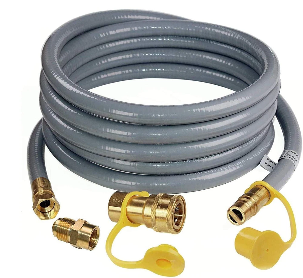 For Natural Gas NG Appliances: Compatible with Weber Genesis E-435, 38400001 Genesis S-435, Summit E-470, S-670, and 7270001 Summit S-470. Also fits Weber Spirit S-315, E-310, Spirit II E-310, Genesis S-325S, EX-325S, E-325S, E-335, S-335, Smart SX-325S, Smart EX-335, SX-335, EPX-335, SPX-435, and Weber 57067001 Q3200 (requires 3/8" female x 1/2" male flare adapter). Additionally, it’s ideal for Charbroil dual-fuel grills, patio heaters, pizza ovens, and more For Modified-LPG Appliances: Suitable for propane appliances that have been modified to adjust the BTU output to the correct level (conversion kit required). 24 ft NG Hose: Perfect for short-distance gas supply from fixed gas sources to appliances with a capacity of 89,000 BTU/H. Ensure you measure the distance between the gas appliance and the gas source, leaving extra space for appliance movement before purchasing. Sturdy and Safe: Constructed from premium rubber and solid brass, the natural gas line offers enhanced wear resistance and a secure, tight connection. Product Detail: 24 foot 1/2" ID gas hose (1/2" Male Quick Connect Plug x 1/2" Female Flare), 1/2" quick connector (1/2" Female NPT x 1/2" Female Quick Connect).
