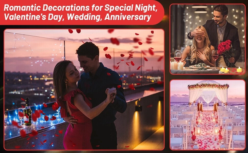 Free eBay listing template designed by dewiso.com 24 LED Candles +2000pcs Rose Petals Set for - Weddings, Parties, Valentine's Day About this item Romantic Ambiance Creator: This set includes 2000 vibrant blue silk rose petals and 24 heart-shaped LED candles, perfect for creating a warm and romantic atmosphere for special occasions like weddings, anniversaries, or date nights. Convenient and Easy to Use: The LED candles come pre-loaded with batteries and feature a simple on/off switch, allowing for hassle-free setup and use. The batteries are easily replaceable when needed. Realistic and Long-Lasting: The rose petals are made of high-quality silk, ensuring they remain vibrant and lifelike without fading or withering over time. The LED candles provide a safe and realistic flameless glow, eliminating the need for real candles. Versatile Decor Options: With a generous quantity of petals and candles, you can create stunning romantic displays on tables, floors, aisles, or anywhere you desire to set the mood for a memorable occasion. Product information Technical Details Base Material - Plastic Shade material - Silk Bulb Base - GU10 Lamp type - Mood light Switch Type - Slide Style - Romantic Color - 3 color (Warm white, Red, Blue) Light Source Type - LED Recommended uses for product - Decoration Connectivity Technology - USB Bulb Shape Size - ED17 Control Method - Touch Efficiency - Above average Voltage - 36 V Contact us We can be contacted at any time through eBay messages if you have any questions, comments or product requests. We will respond to you within 24 hours and do our best to help you out! We encourage our customers to contact us with any questions or concerns! We'd like to be sure you are completely satisfied with your purchase. Payment We accept PayPal, PayPal Credit, Visa, Mastercard, American Express, Discover, Google Pay and Apple Pay. Immediate Payment is required! Shipping We provide FAST, FREE SHIPPING to the Continental 48 US States. We do not ship to Alaska, Hawaii, APO/FPO, PO Boxes, or any US Protectorates. PLEASE PROVIDE A PHYSICAL ADDRESS. Your order will be processed within the alloted time frame. Most items ship out with 1-2 Business Days after payment is recevied. Please not that some orders may be shipped in multiple packages. Return If you have any problem with product we can accept return within 30 days after purchase. If you want to return product, you can contact with us. Best_store-T is the best! Thanks for shopping!
