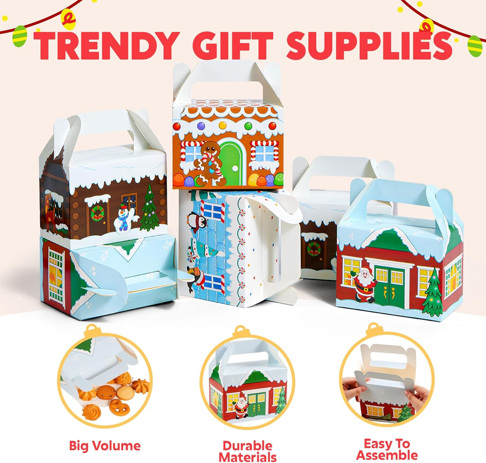 Store New Arrivals Add to Favorite View Feedback Contact Fast deliveries to the customer's home Quality customer service John Make the customers happy! 24 PCS 3D Christmas House Cardboard Treat Boxes for Holiday Xmas Goody Gift, Goodie Paper Boxes, School Classroom Party Favor Supplies, 4 Designs Candy Treat Cardboard Cookie Boxes Description Christmas House Cardboard Treat Boxes includes 24 Assorted Christmas Design Gift Cardboard Cookies Boxes with a Handle Feature When Box Up. 4 Designs in Santa’s Workshop, Gingerbread Candy House, and Snowman. High Quality: Permanent Ink; Thick and Sturdy; Reusable. Easy Assemble. Super Value Pack for present Wrapping. Perfect for Christmas Decoration, present Wrapping, Christmas Treaty Boxes, present Decoration, present Box Extra-Special, Decorating Parties, Weddings, Christmas Trees, Classrooms, Party Favors, Cookie and Candy Boxes, Art & Craft and more. Each Christmas present Box Measures: 6” x 3 ½” x 6” when Fully Constructed. Product description Item model number I4-WTKA-1NQM Style Contemporary Capacity 108 Cubic Inches Number of Items 24 Closure Type Snap Pattern Christmas Batteries Included? No Is Microwaveable No Unit Count 24.0 Count Batteries Required? No Product Dimensions 6"L x 3.5"W x 6"H Material Cardboard Item Form Box Container Shape Rectangular Manufacturer Inc Item Package Quantity 1 Set Name Santa’s Workshop, Gingerbread Candy House, Snowman Is Dishwasher Safe No Number Of Pieces 24 Item Weight 1.36 pounds Material Feature Reusable, Durable Special Features Durable, Handles Special Feature Durable, Handles Part Number I4-WTKA-1NQM Color Blue, Orange, Brown, Red Is Discontinued By Manufacturer No Global Trade Identification Number 00812355034216 Included Components 24 Assorted Christmas Design Gift Boxes Product Care Instructions Hand Wash Only Size 24 Count (Pack of 1) ABOUT US We offer the best prices around on high quality products. Our E-store includes media such as books, movies, music and games while offering electronics, toys, sporting apparel, clothing, tools, general home, garden items and more. SHIPPING We are always working hard to ensure your package arrives as soon as possible. Please understand that some factors like weather, high postal traffic, and the performance of shipping companies are outside of our control. We offer free shipping to the lower 48 states and ship within 2 business days of payment, usually sooner. We do not accept P.O. Boxes. Please provide a physical address. For shipping outside of the continental USA, we only use eBay's Global Shipping Program. The item is shipped to KY and then sent to the rest of the world. International customers are responsible for all duties and taxes. Continue to 'check out' to calculate costs for shipping the item to your country. Messages regarding eBay's Global Shipping Program MUST be directed at eBay EXCLUSIVELY. RETURNS We offer a 30-Day Return Policy on items in which you are not completely satisfied with. You have the option of a full-refund or an exchange of the item. No returns are available on items shipped outside of the USA PAYMENT We accept PayPal. CONTACT US This page content is yet to come Please ad us to your favorite seller and visit again later Thank You CUSTOMER SATISFACTION We try our very best to make sure every customer is completely satisfied. If there's a problem, message us! We're happy to help. WE ACCEPT