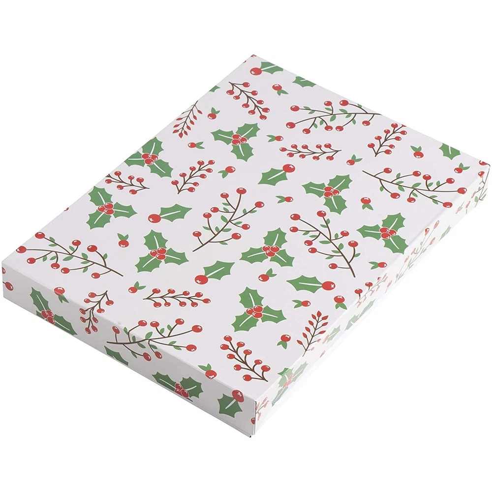 AccStation Use these uniquely designed gift boxes for Christmas presents and leave the stress of gift wrapping behind. With this 24-pack of Xmas gift boxes, you can easily wrap various sizes of gifts, including shirts, books, and scarves. Our boxes each come with a lid that can be easily reinforced using stickers, tape, or ribbon (not included). Choose from 3 different sizes and 4 designs to make this Christmas an unforgettable experience. Each large gift box measures 17 x 11 x 2.5 inches, the medium gift box measures 14.25 x 9.5 x 2 Inches, and the small present box measures 10.75 x 7.75 x 1.25 inches. Use the Christmas wrapping boxes as fake presents for a festive look under your tree all month long! 24 Pack Christmas Boxes for Gifts with Lids for Presents in 4 Designs, 3 Sizes Christmas Gift Boxes for Presents: Welcome Xmas morning with this set of 10 boxes for wrapping gifts featuring colorful and festive designs 3 Assorted Sizes: Simply place hard-to-wrap presents inside these Christmas boxes with lids; there is no need for wrapping paper, tape, or scissors 4 Fun Designs: Each of our present boxes with lids includes 4 festive holiday designs that include candy canes, Merry Christmas, Christmas trees, and mistletoes Dimensions: Our Christmas gift boxes with lids come in three sizes: large measuring 17 x 11 x 2.5 inches; medium measuring 14.25 x 9.5 x 2 inches; and small measuring 10.75 x 7.75 x 1.25 inches Comes With: In this bulk gift box set you will receive 8 large boxes, 8 medium boxes and 8 small boxes all with assorted holiday designs This product can expose you to chemicals including nope, which is known to the State of California to cause cancer and birth defects or other reproductive harm.