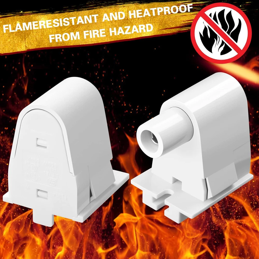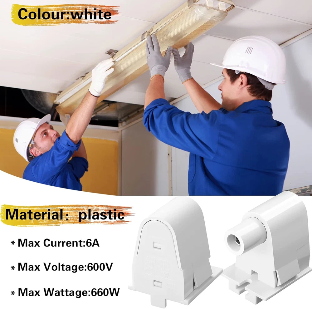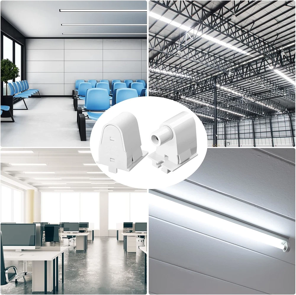 Applicable Ranges: the maximum wattage of the fluorescent tombstone is 660W and the maximum voltage reaches 600V, which can adapt to different kinds of T8, T10, and T12 single pin fluorescent tubes Stable and Reliable: the single bulb light fixture is made of PBT material, flame resistant, heat resistant, wearproof, and safe to use, which will not cause flame hazard, so you can use it with confidence Easily Snapping in: these fluorescent lampholder can directly connect to 18 gauge power wires, applying for both dual end power and single end power tubes; You can easily snap the tube into the mouth and complete the installation Proper for Fluorescent and LED Bulbs: the fluorescent lamp holder is suitable for FA8 single pin light tubes and 8 ft single pin LED bulbs, an efficient and nicely matching lamp replacement part for your broken lamp holders A Large Number of Quantities: the package includes 24 pairs tombstone base holder socket connectors for T8, T10, T12 single pin fluorescent tubes, sufficient quantity to meet your needs on retrofitting and replacements