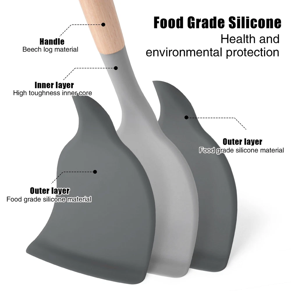 【Kitchen Utensil Set】- The silicone kitchen utensils set is made of food grade silicone and has no odor.Before the first use, we recommend soaking the tableware for half an hour and exposing it to the air for about 3 hours before the odor will disappear 【Cookware Health】- Silicone cooking utensils can withstand high temperatures of 446 ° F/230 ° C. Don't worry about food sticking to your cooking utensils. Silicone tips can protect your pot from scratches or dents on the surface of the cooking utensils. Extend the service life of all kitchen pans. They are scratch resistant, not as easy to melt as plastic and rubber tableware, nor as non stick pots that can harm you like metal kitchenware 【24Pcs Kitchen Utensils to Use】- This silicone tableware set can fully meet your kitchen needs, including a deep soup spoon, solid spoon, flexible spatula, circular spatula, spaghetti server, measuring cup and spoon, and more. Both cooking and baking tools are available. You will have all the basic cooking tools you need in your kitchen 【Large Kitchen Utensils Set】- integrated stainless steel core, seamless, easy to clean, enhances durability and toughness, helps maintain its shape and flexibility, and ensures no warping. Please note that due to the wear and tear on wooden handles caused by dishwashing, these silicone kitchen utensils used for non stick pots are not suitable for dishwashing with a dishwasher 【High Quality Service】- If you have any questions about the utensils set, please feel free to contact our customer service, and we are always at your service. We are committed to providing fast and supportive assistance to address any questions or concerns you may have. Please feel free to contact us through the Amazon buyer page. We will listen carefully and respond promptly within 12 hours