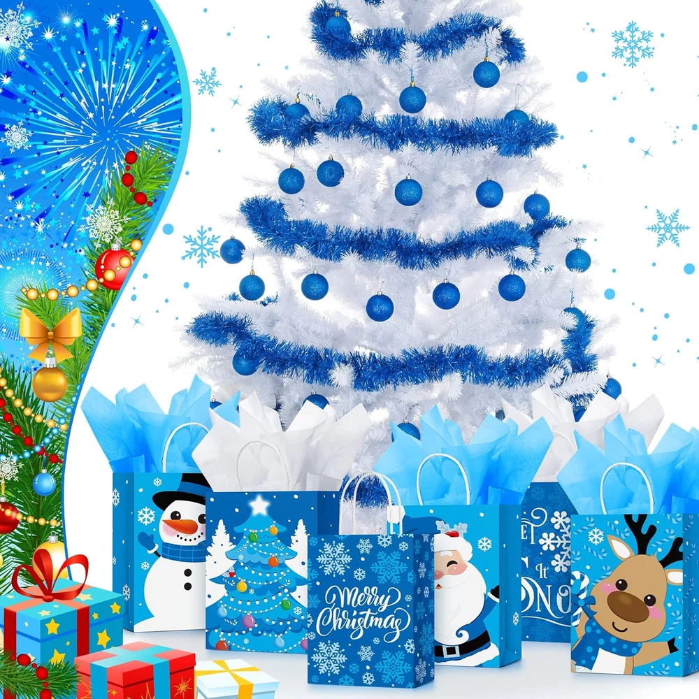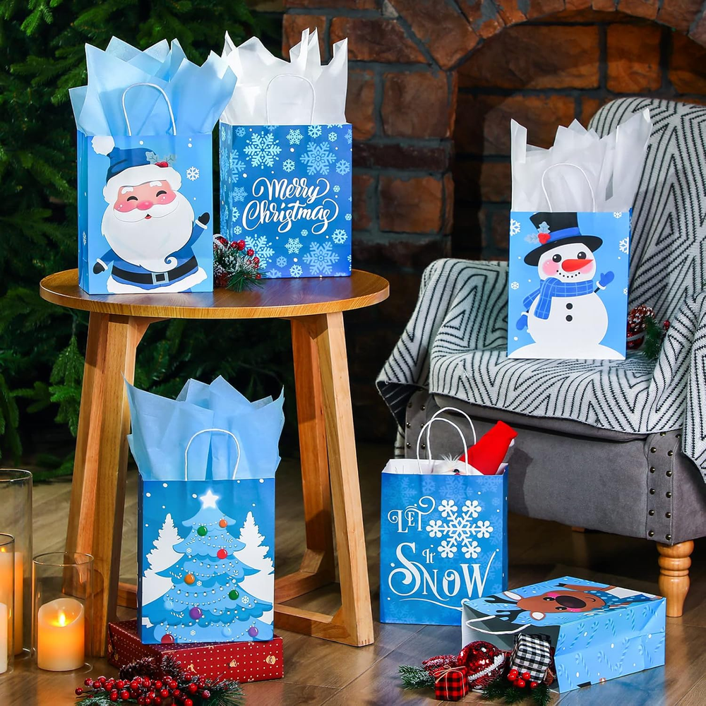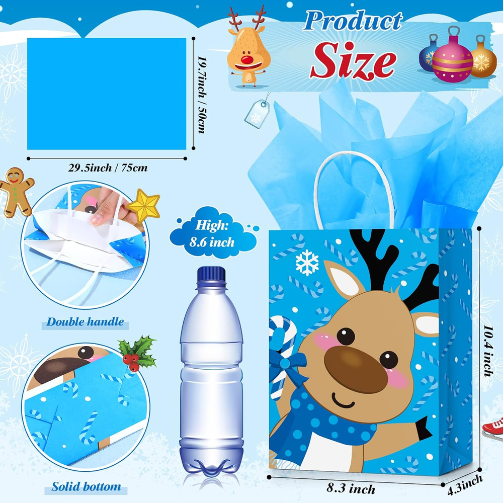 24 Christmas Gift Bags Bulk with Handles & 60 Holiday Gift Tags Set