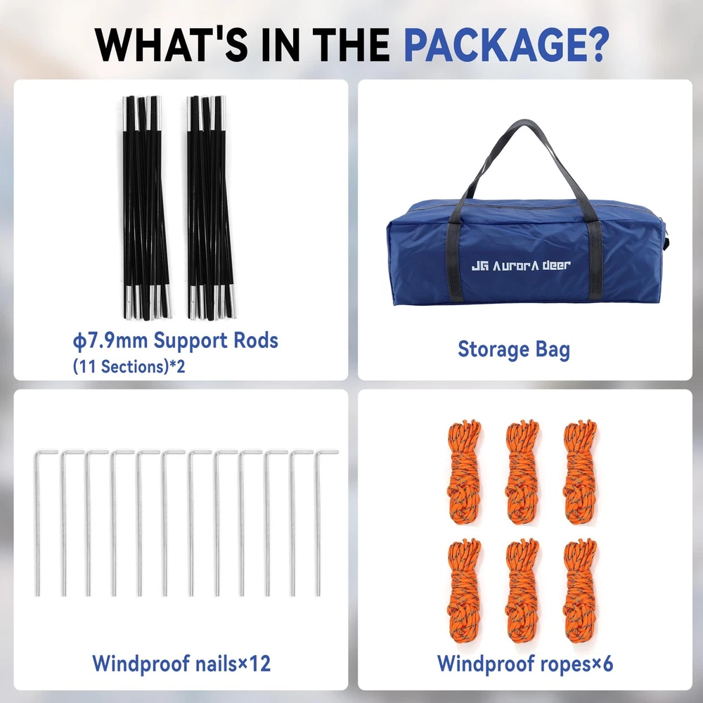 person Tent Waterproof & Windproof Family Tent Camping Tents Backpacking Tent for Portable Camping with Carry Bag LIGHTWEIGHT AND PORTABLE:Portable & Lightweight 3.-4 Person Tent: The backpacking tent is only 4.85 lb, Size:94.481*82.67*51.18 inches, Ideal tent for camping, backpacking, hiking, beaching, fishing, and weekend music festivals Durable and Portable:TentThe Windows and Door equipped with high-quality zippers can be closed tightly, which provides stronger resistance to harsh weather. Sturdy fiberglass poles combined with a wind-stable construction to ensure stability. SMART VENTILATION SYSTEM:The structural design of the camping tent allows air to circulate smoothly, ensuring a cool and pleasant environment inside the tent. QUICK AND EASY SETUP: Featuring an intelligent design, this 4-person tent can be set up in just 5 minutes. Ideal for both first-time campers and seasoned enthusiasts, its quick installation saves time and energy, enhancing your outdoor experience AFTER SALE SERVICE: 【IJG AURORA DEER 】The camping tent offers you a risk - free shopping experience. If you have any questions about the tent, please contact us. We will provide you with a satisfactory solution as soon as possible.