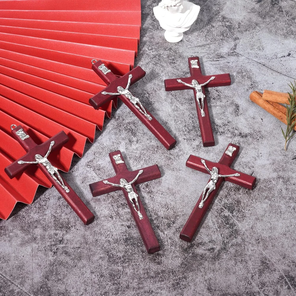You will get 24 pieces of beautiful small crucifix wall cross wooden cross The cross for wall decor is made of solid wood with clear grain, smooth to the touch, burr-free and durable The wooden wall hanging cross is about 4.7 inches long, 2.7 inches wide, 0.4 inches thick, 18 grams light weight, small size and easy to carry The top of the crucifix wall cross has a keyhole hook for easy installation, you can display him in the living room, bedroom, entryway, doorway, table, or on your child's bed Unique crucifix cross wall decor gift for any occasion such as baptism, confirmation, first communion, baby shower, Easter, Mother's Day, Christmas, church decoration Product Description Wishing you stay with God's love is the vision of SHAOQINLIN Displaying a cross that has meaning in a place where you will see it in the morning or during prayer time gives you strength and support against negativity. Having a wall cross in every home is a beautiful landscaping. About Our Crucifix Wall Cross: Cross specifications: Material: Wood + Metal Size: 4.7*2.7*0.4 inch (L*W*H) Color: Wine Red + Silver Style: Classic Cross Design Note: This item includes sharp parts, please keep away from children. Pure manual measurement, please allow slight errors, thank you. Due to the difference of the monitor, there may be color difference between the color of the picture and the actual object, please understand. Why choose our wall crosses ? Elegant design Adequate quantity Easy to carry Giftable Home decor The top ring of the cross is easy to hang on the wall or make into a cross necklace to carry around. With wide application, wood cross suitable for study room, bedroom, office, school. The holy decoration is Best Gift for Grandma, Coworkers, Return Gift, Wedding Anniversary Gift, Christmas Gift, Thanksgiving Gift, Birthday Gift, Holiday Gifts, Mother's Day Gifts. We are committed to providing high-quality products and bringing comfort and pleasure to customers. If you have any questions or issues regarding the holy cross please reach out through Amazon.